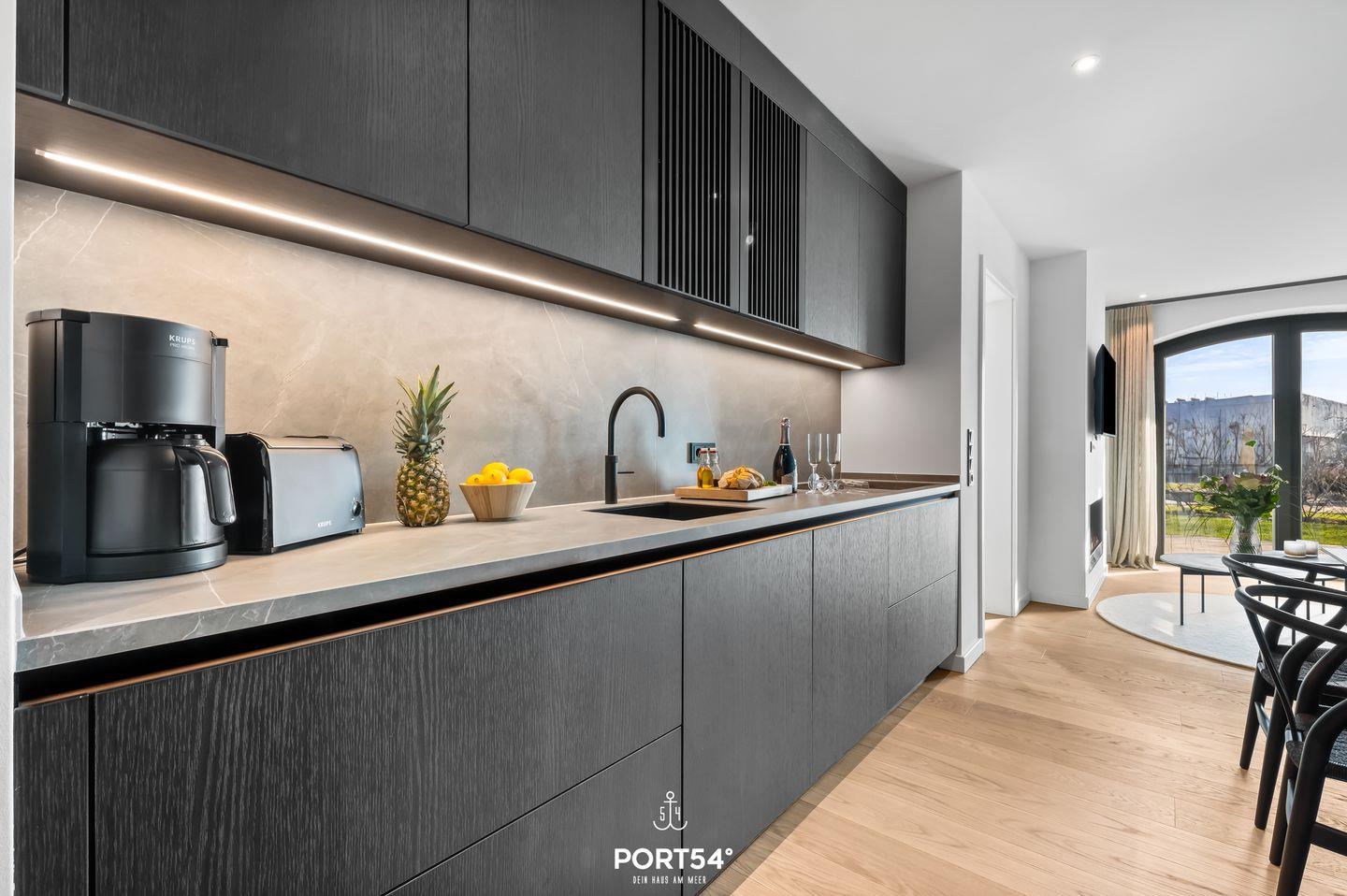 Die offene SieMatic-Küche ist mit allem ausgestattet, was du für einen gelungenen Urlaub benötigst: von der hochwertigen Induktionskochplatte über den Elektrobackofen bis hin zur Spülmaschine. Hier zauberst du im Handumdrehen köstliche Mahlzeiten, die du am Esstisch im angrenzenden Essbereich mit deiner Familie oder Freunden genießen kannst. Die Küche ist außerdem mit einem Quooker ausgestattet, damit lässt sich problemlos heißes Wasser sowie Sprudelwasser erzeugen. Das Wohnzimmer ist der perfekte Ort zur Entspannung – hier kannst du die Wohnlichkeit des Ethanol-Kamins und den Komfort des Sofas erleben. Die modernen Schlafzimmer bieten dir mit ihren 180x200 cm großen Doppelbetten optimalen Schlafkomfort.