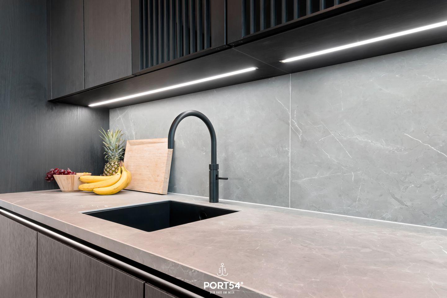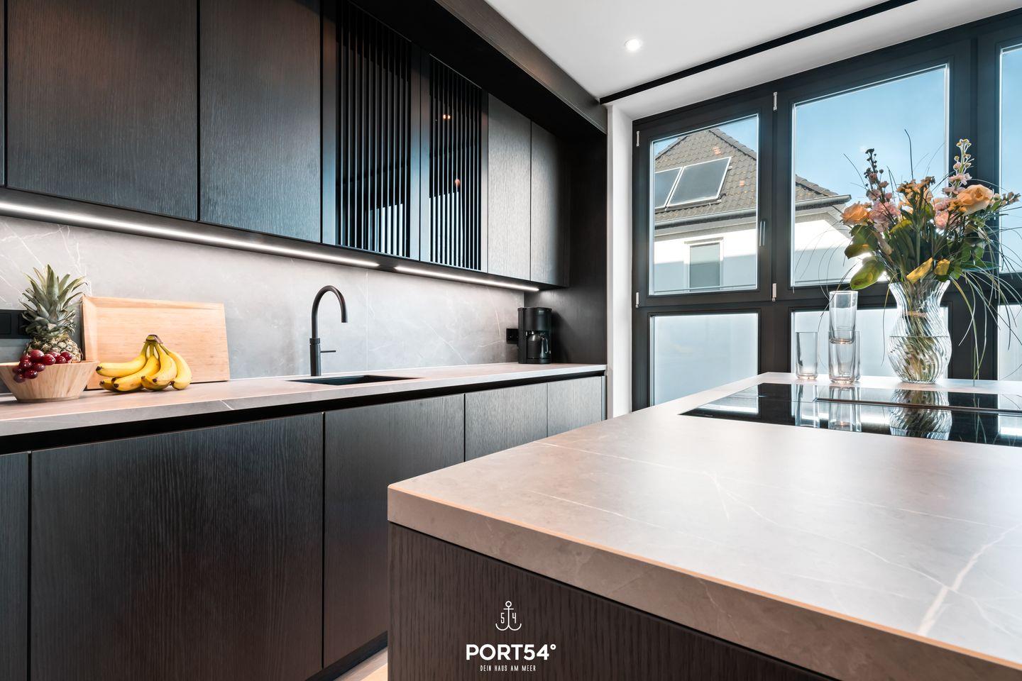 Die individuelle Ausstattung der Suite sorgt für höchsten Komfort und eine angenehme Wohlfühlatmosphäre. Mit zwei stilvoll eingerichteten Schlafzimmern mit je einem Doppelboxspringbett der Marke Schramm (Bettgröße 180x200 cm) und zwei modernen Badezimmern findest du genügend Raum zum Entspannen und Erholen. Die offene SieMatic-Küche ist mit hochwertigen Geräten ausgestattet, darunter ein Induktionsherd, ein Elektro-Backofen, eine Spülmaschine und ein Quooker, der problemlos heißes Wasser sowie Sprudelwasser erzeugen kann. Hier kannst du gemeinsam köstliche Mahlzeiten zubereiten und im einladenden Essbereich genießen.