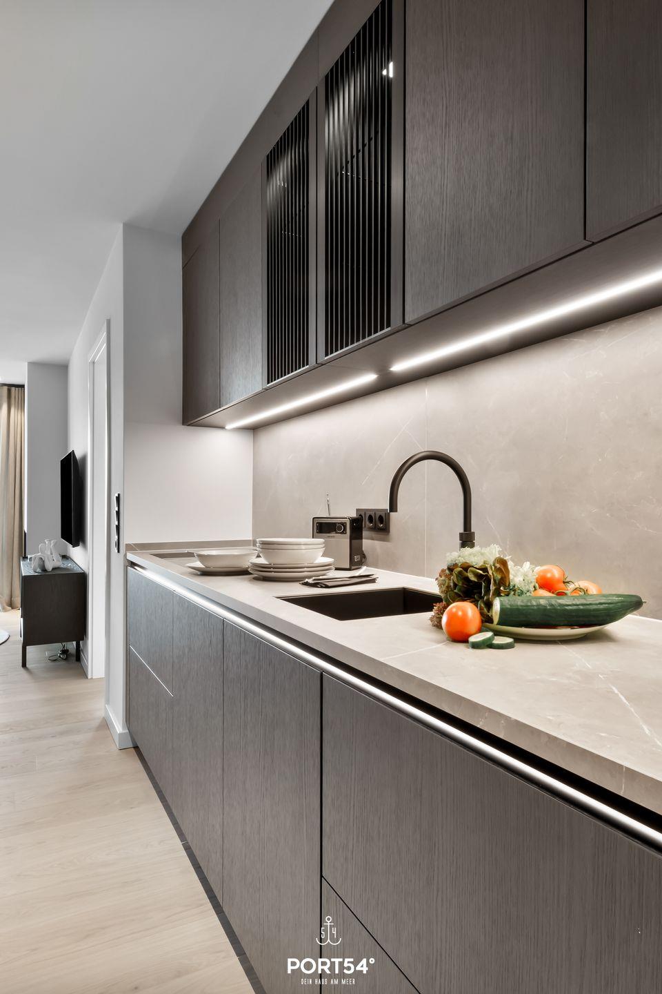 Die Ferienwohnung befindet sich im ersten Stock und ist bequem über einen Aufzug erreichbar. Ein großzügiger Wohnraum mit einer offenen Küche lädt dazu ein, kulinarische Köstlichkeiten zuzubereiten und gesellige Abende zu verbringen. Die hochmodernen Küchengeräte, einschließlich einer Spülmaschine, Elektrobackofen und einem Quooker, mit dem du problemlos heißes Wasser und Sprudelwasser erzeugen kannst, lassen keine Wünsche offen und ermöglichen es dir, dich wie zu Hause zu fühlen. Der Esstisch bietet genügend Platz, um gemeinsam zu speisen und schöne Erinnerungen zu schaffen.