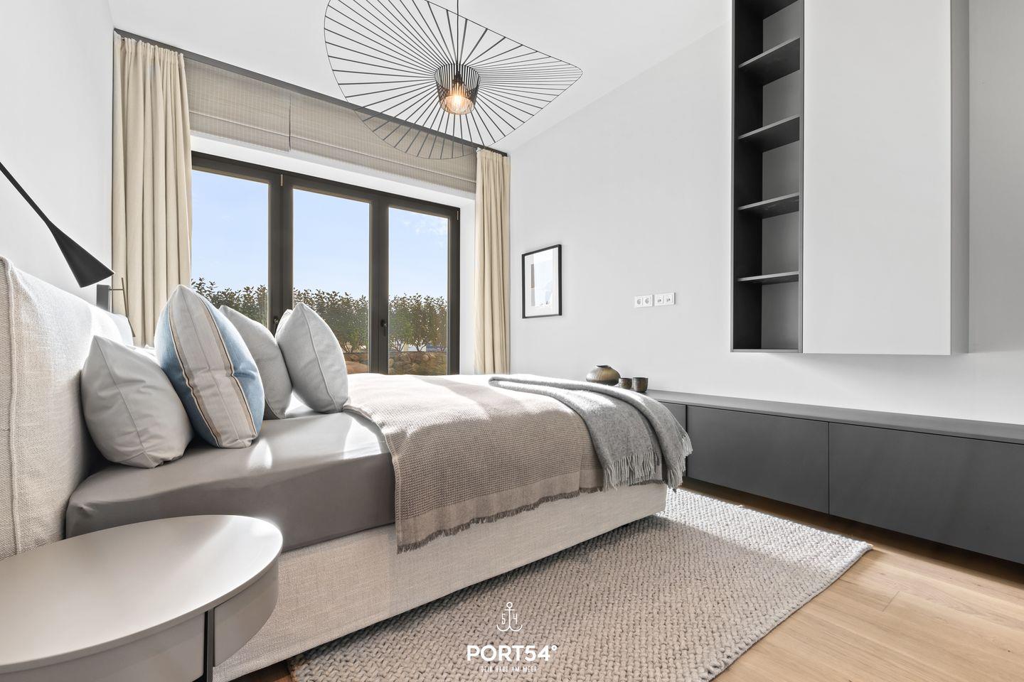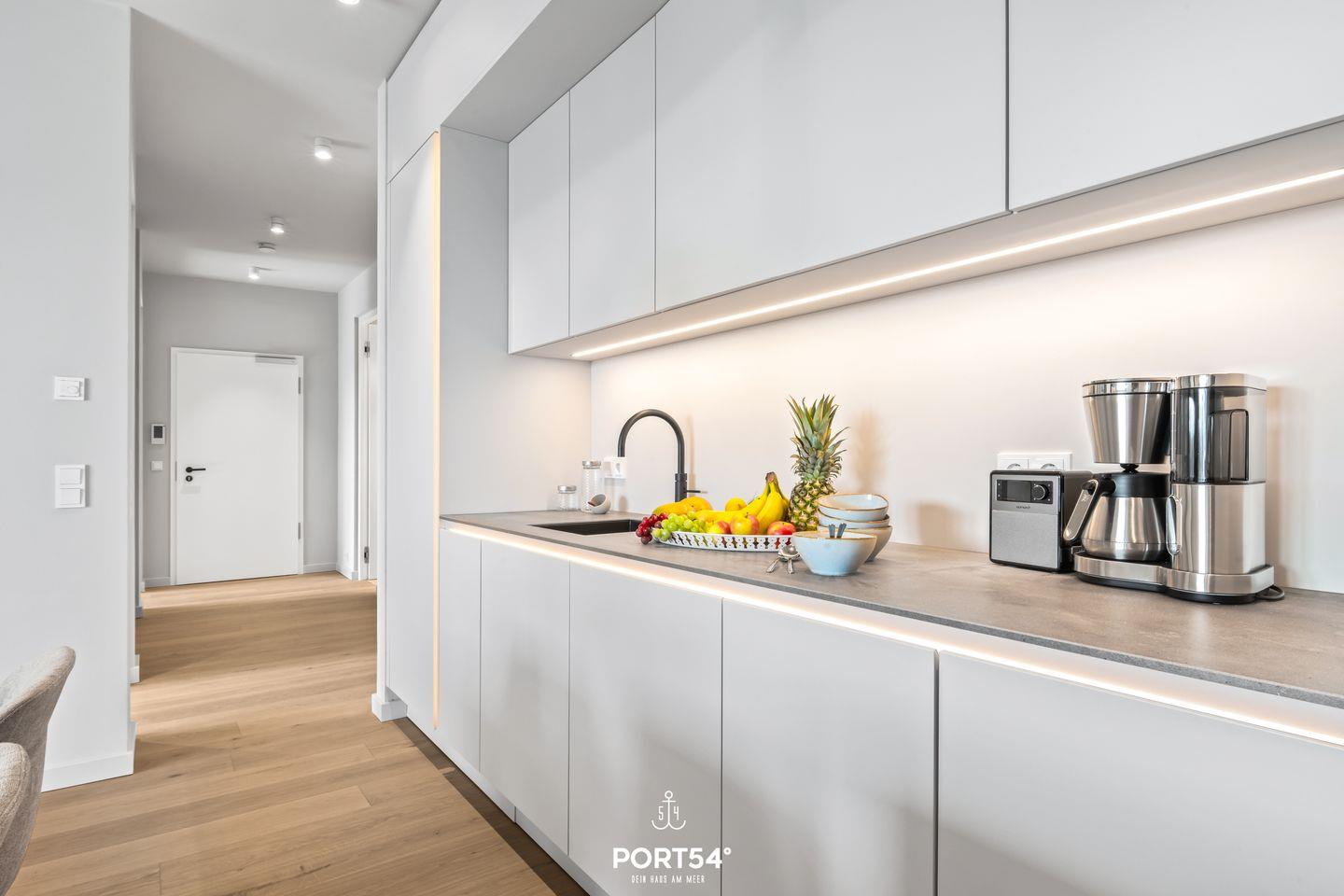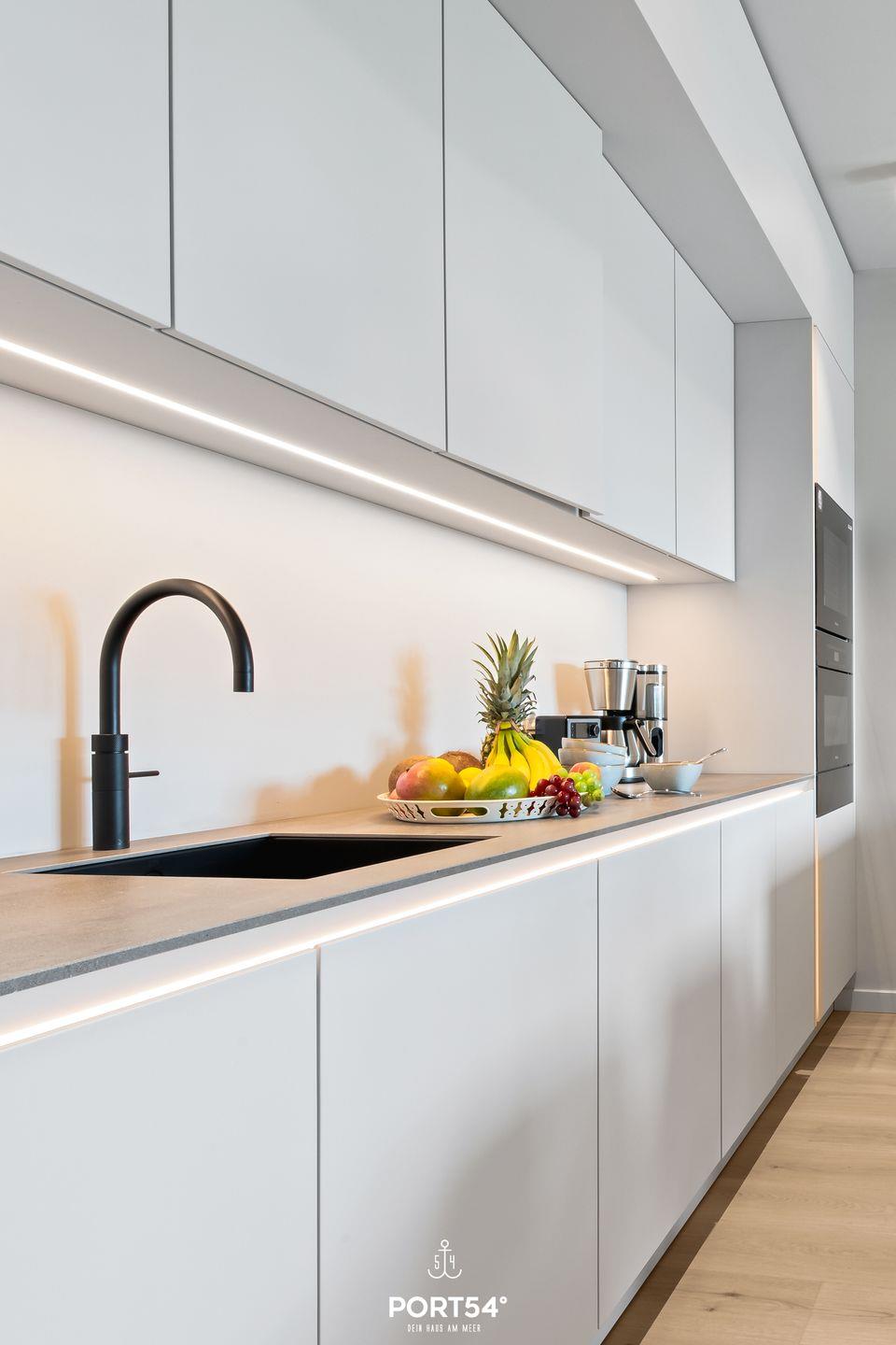 Die Wohnung verfügt über zwei gemütliche Schlafzimmer, die mit viel Liebe zum Detail eingerichtet sind, um dir einen erholsamen Schlaf in jeweils einem gemütlichen Boxspringbett der Marke Schramm (180x200cm) zu garantieren. Der offene Wohnbereich lädt zum Verweilen und Entspannen ein, ausgestattet mit einem komfortablen Sofa und einem Tisch für gemeinsame Essens- oder Spielemomente. Die offene SieMatic-Küche ist modern eingerichtet und bietet alles, was das Herz begehrt – von einer Induktionsplatte bis hin zu einer Spülmaschine, damit du alle Annehmlichkeiten des alltäglichen Lebens genießen kannst. Außerdem findest du in der Küche einen Quooker, der es dir ermöglicht, problemlos heißes Wasser sowie Sprudelwasser zu erzeugen.