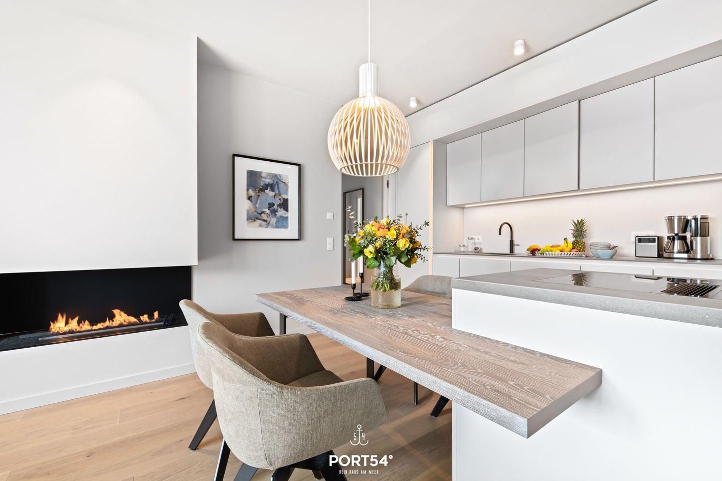 Ein Highlight der Marina Suite ist die bodengleiche Dusche mit integriertem Infrarotpaneel. Diese ist perfekt, um nach einem aufregenden Tag an der frischen Luft zu entspannen und sich zu regenerieren. Der offene Ethanol-Kamin sorgt für eine warme und gemütliche Atmosphäre, die besonders in den kühleren Monaten das Herz höher schlagen lässt. Für dein gesamtes Wohlbefinden steht dir kostenloses WLAN zur Verfügung, sodass du jederzeit mit der Außenwelt verbunden bleiben kannst. Zudem gibt es einen Smart TV, um Entspannung nach einem Tag voller Erlebnisse zu bieten.
