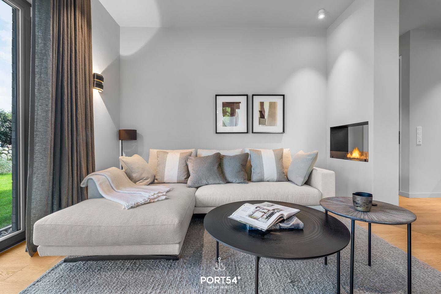 Herzstück der Wohnung ist der offene Wohnbereich, der hell und einladend ist. Die moderne Küche von SieMatic ist mit einem Induktionsherd, Backofen, Wärmeschublade und einem Geschirrspüler voll ausgestattet. Außerdem findest du in der Küche einen Quooker, mit dem sich problemlos heißes Wasser sowie Sprudelwasser erzeugen lassen. Für gemütliche Abende steht dir ein bequemer Sofabereich zur Verfügung, um die Zeit gemeinsam zu verbringen oder einen Film auf dem Smart-TV zu genießen.