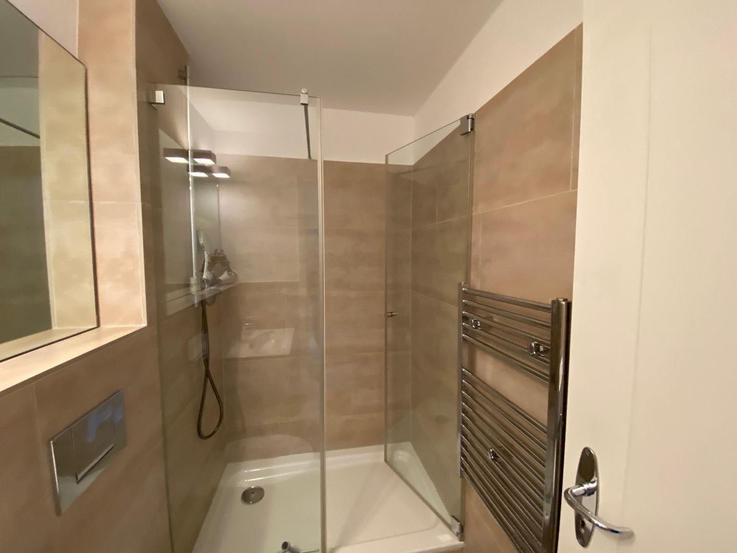Der Schlafbereich sorgt für eine wohnliche Atmosphäre. Das Badezimmer ist mit einer Dusche, WC, Waschbecken sowie einem Haartrockner ausgestattet.
