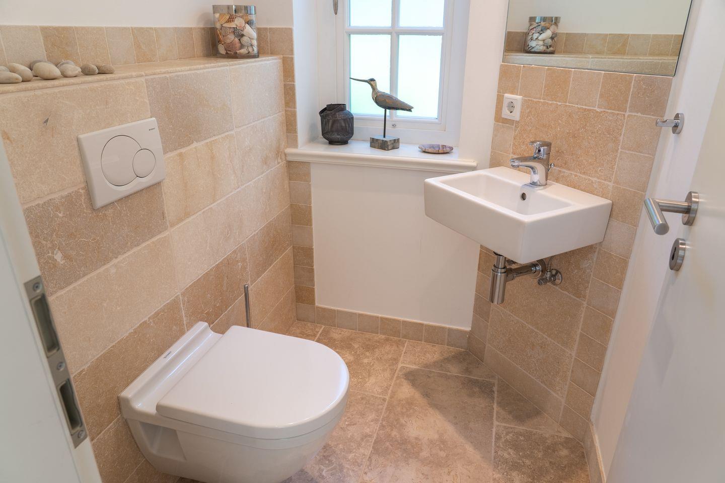 Über die gesamte Unterkunft verteilen sich drei Schlafzimmer, davon eines speziell für Kinder. Die Schlafzimmer bieten jeweils Sichtschutz an allen Fenstern für Privatsphäre und Ruhe. Zwei moderne Badezimmer mit bodengleichen Duschen, Waschbecken, Kosmetikspiegeln und Fenstern unterstreichen den komfortablen Anspruch des Hauses. Zusätzlich gibt es ein Gäste-WC. Ein Haartrockner ist vorhanden und sorgt für praktische Alltagshilfe.