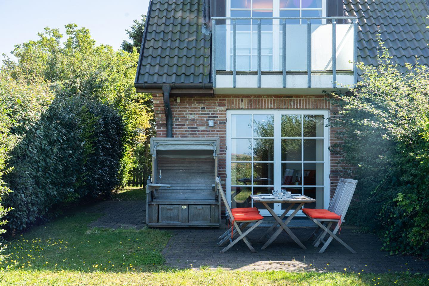 Der private Garten mit Liegewiese lädt zum Sonnen und Relaxen ein. Bequeme Gartenmöbel und ein eigener Strandkorb bieten zusätzliche Aufenthaltsqualität. Die großzügige Terrasse verspricht ungestörte Stunden im Freien, sei es beim Frühstück, Lesen oder einem entspannten Ausklang des Tages. ein Privatparkplatz am Haus sorgt für stressfreies Ankommen und kurze Wege zum Fahrzeug.