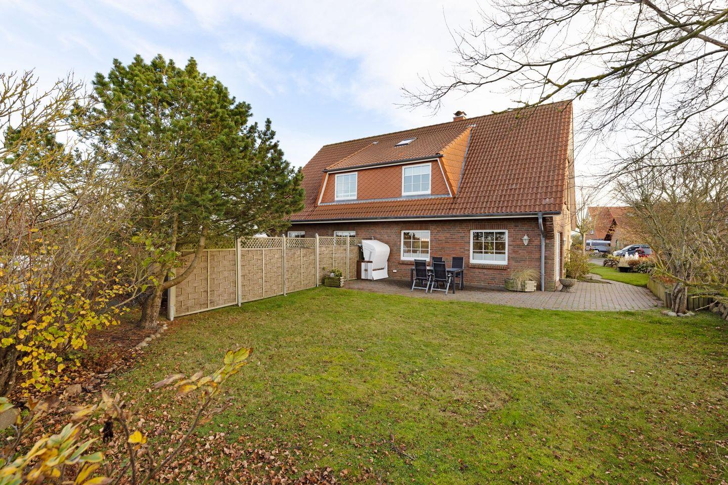 Der Außenbereich lädt zum Verweilen ein: Auf der West-Terrasse und im Garten können Sie die frische Nordseeluft genießen und in den Tag hineinleben. Gartenmöbel stehen Ihnen saisonal zur Verfügung und bieten den perfekten Rahmen für entspannte Stunden im Freien.