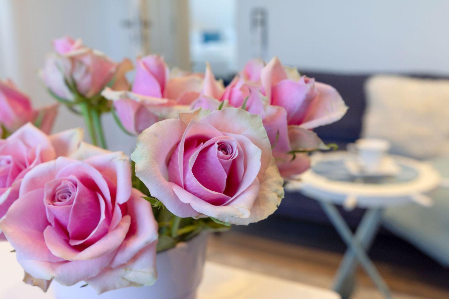Der Wohnbereich überzeugt durch seine helle, einladende Gestaltung und bildet das Herzstück des Appartements. Hier können Sie entspannte Stunden verbringen und den Blick in die Natur genießen. Die angrenzende Küche ist voll ausgestattet und lässt keine Wünsche offen: Neben einer Nespresso-Maschine stehen Ihnen ein Geschirrspüler sowie alle wichtigen Geräte und Utensilien zum Kochen und Backen zur Verfügung.