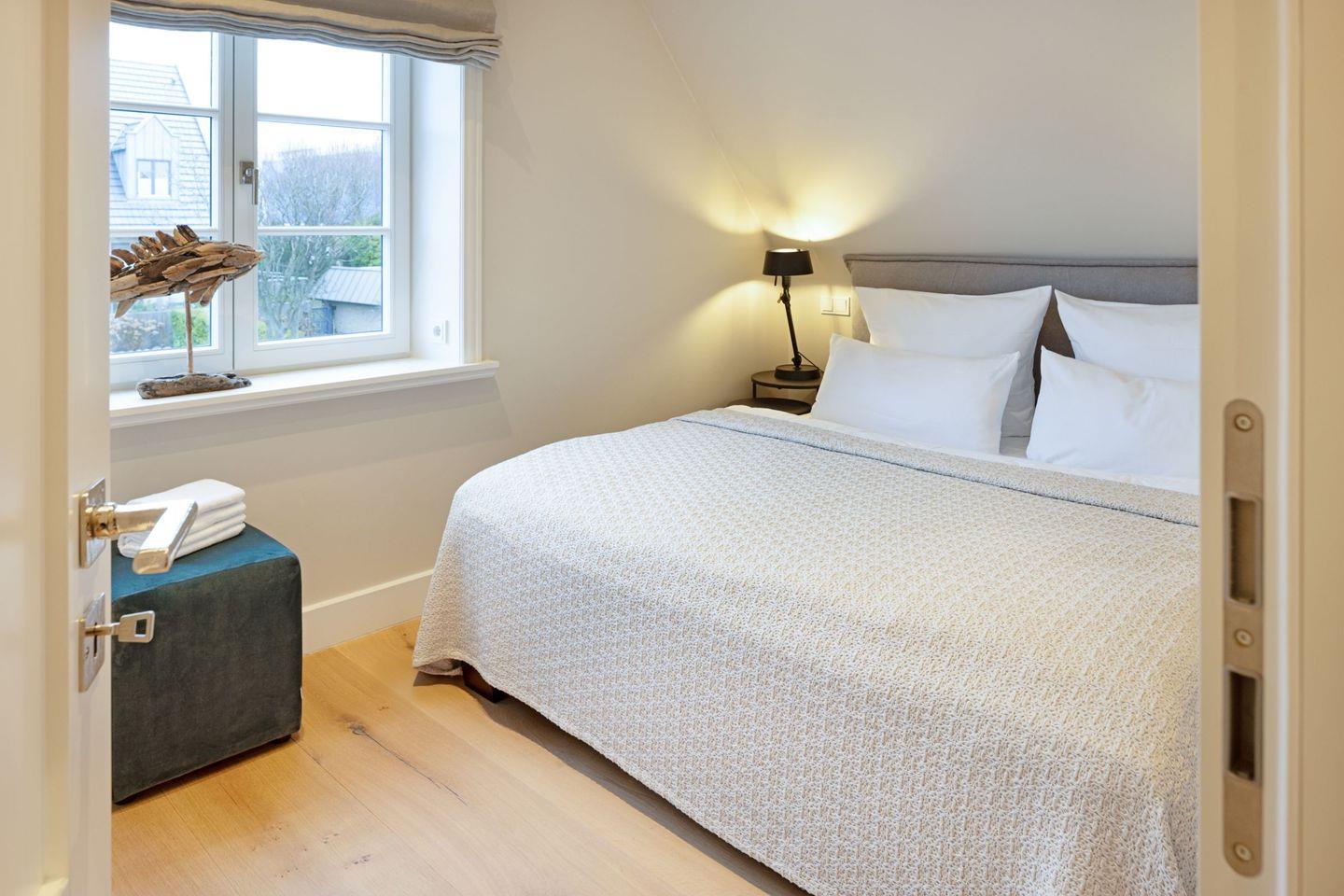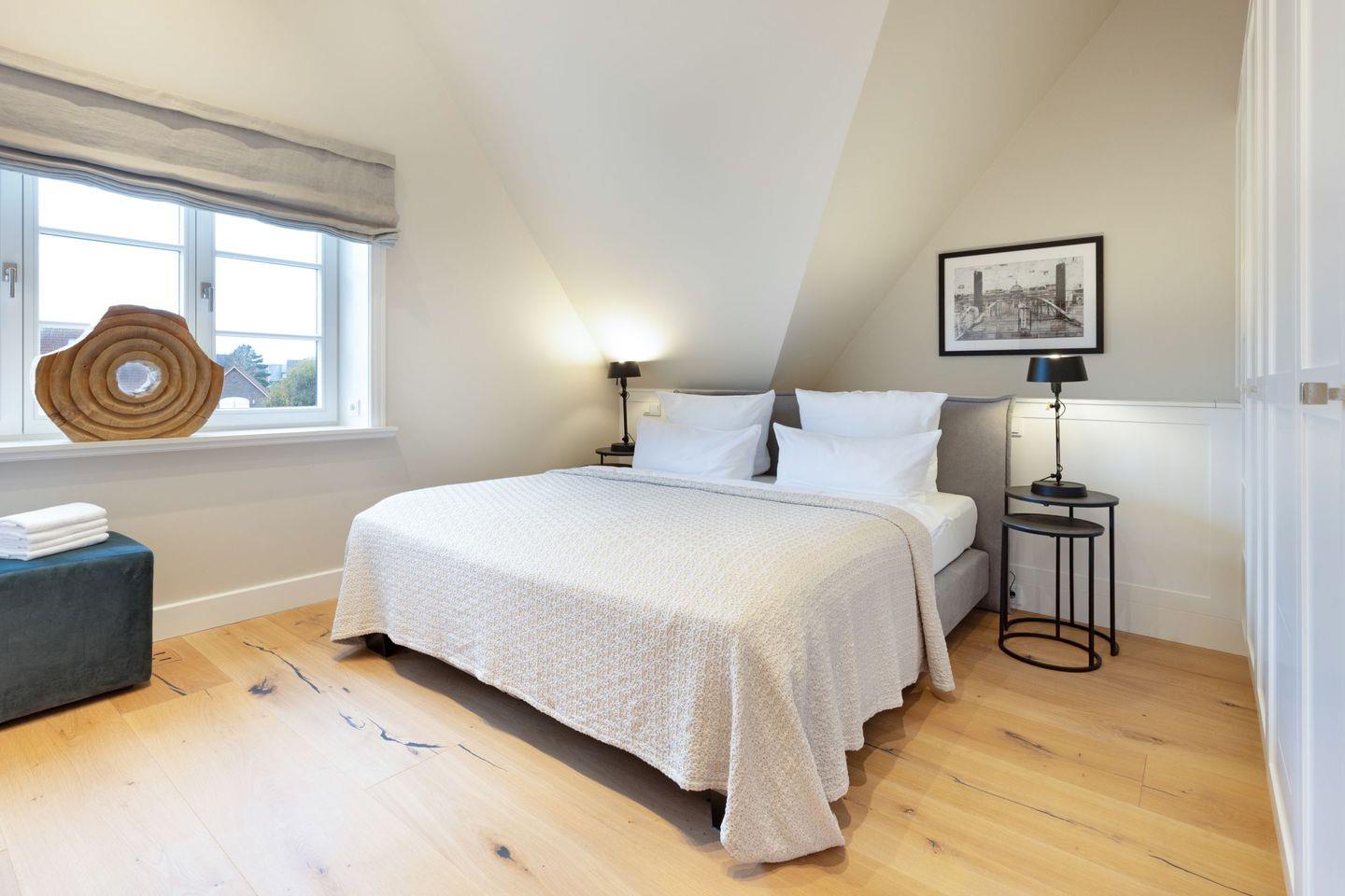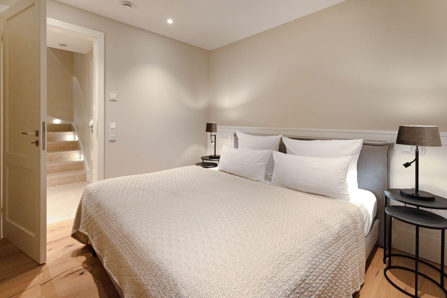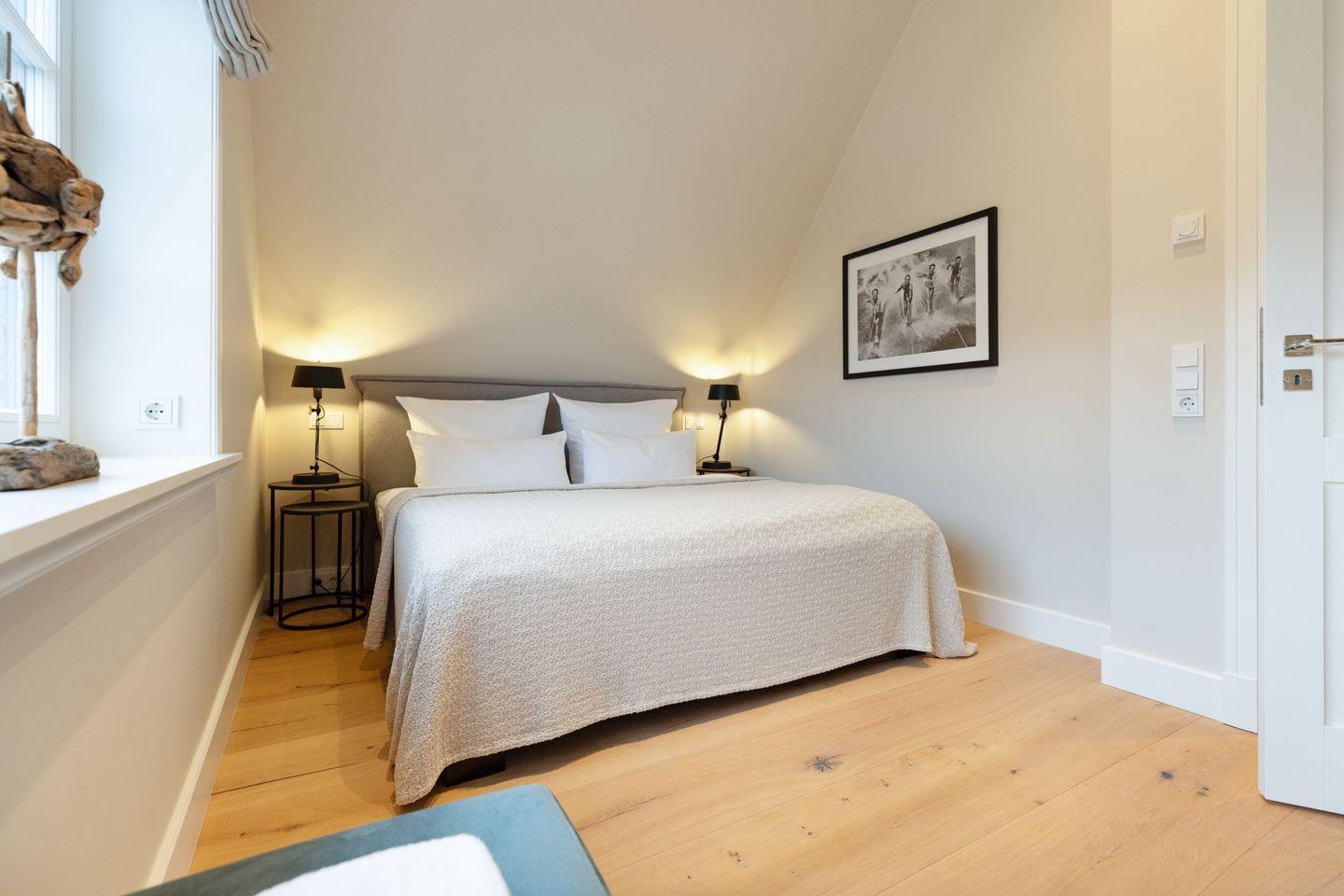 Vier Schlafzimmer mit Boxspring-Doppelbetten, zwei Bäder und ein Gäste-WC garantieren Komfort für Familien und Gruppen.