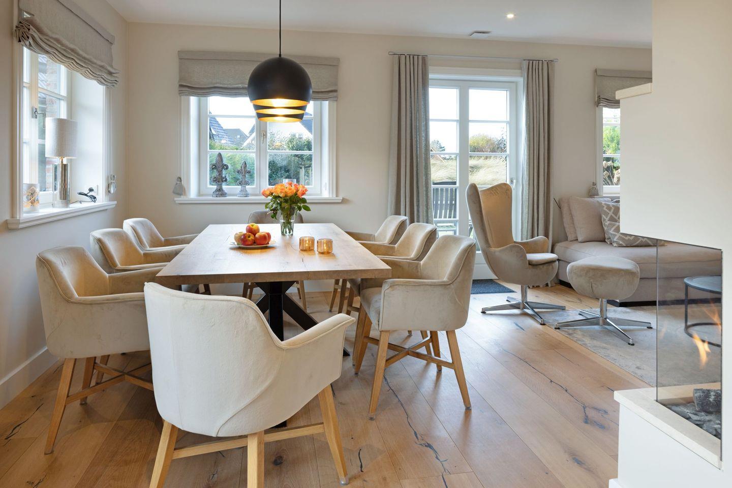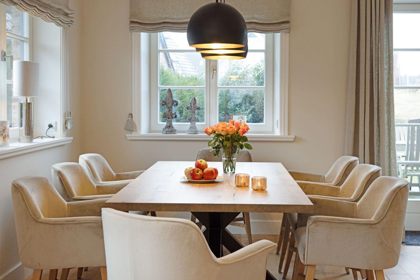 Der angrenzende Essbereich bietet ausreichend Platz für gesellige Mahlzeiten.