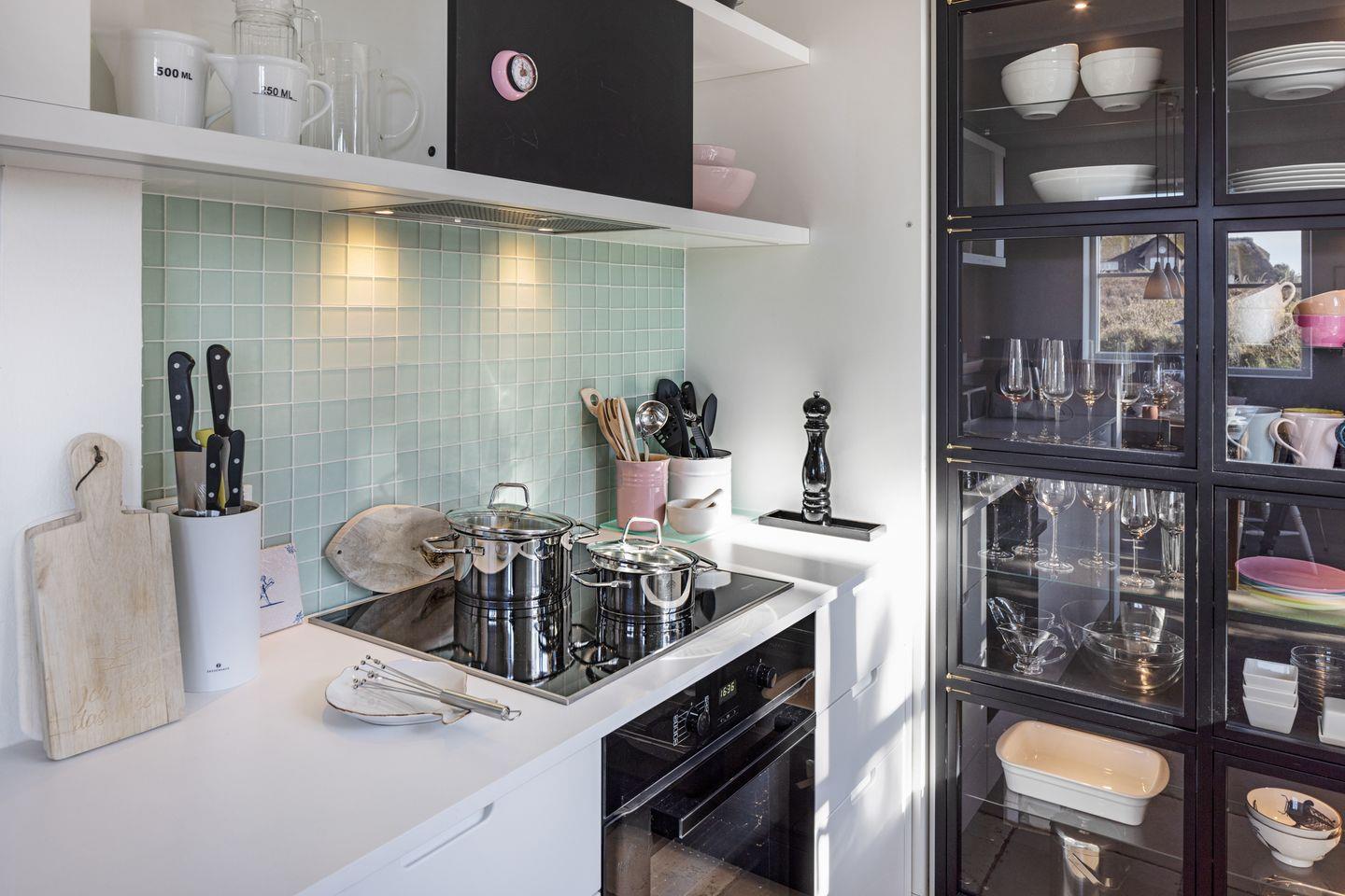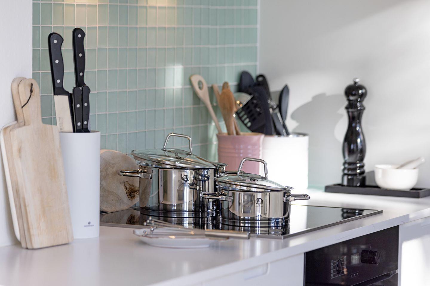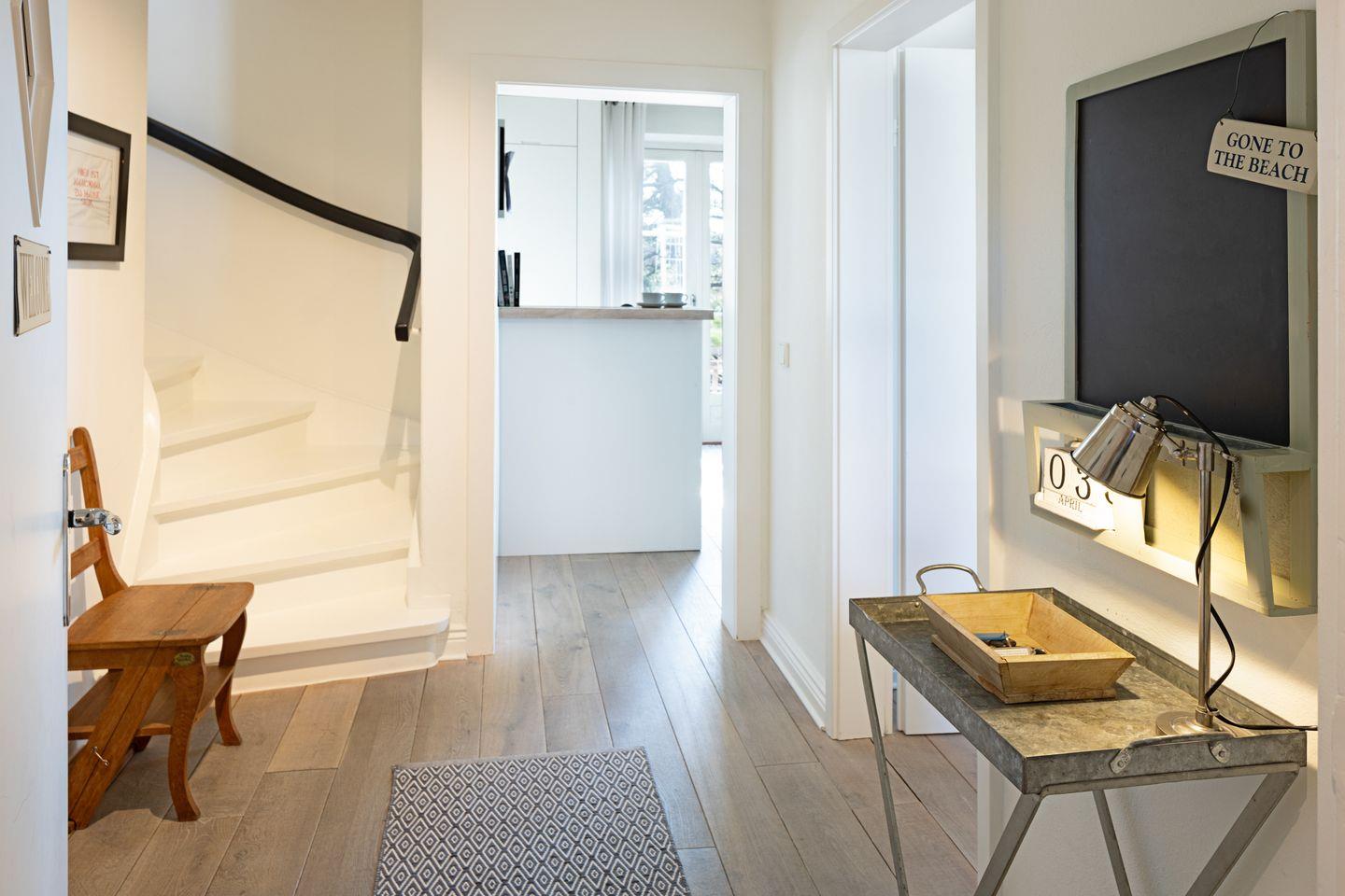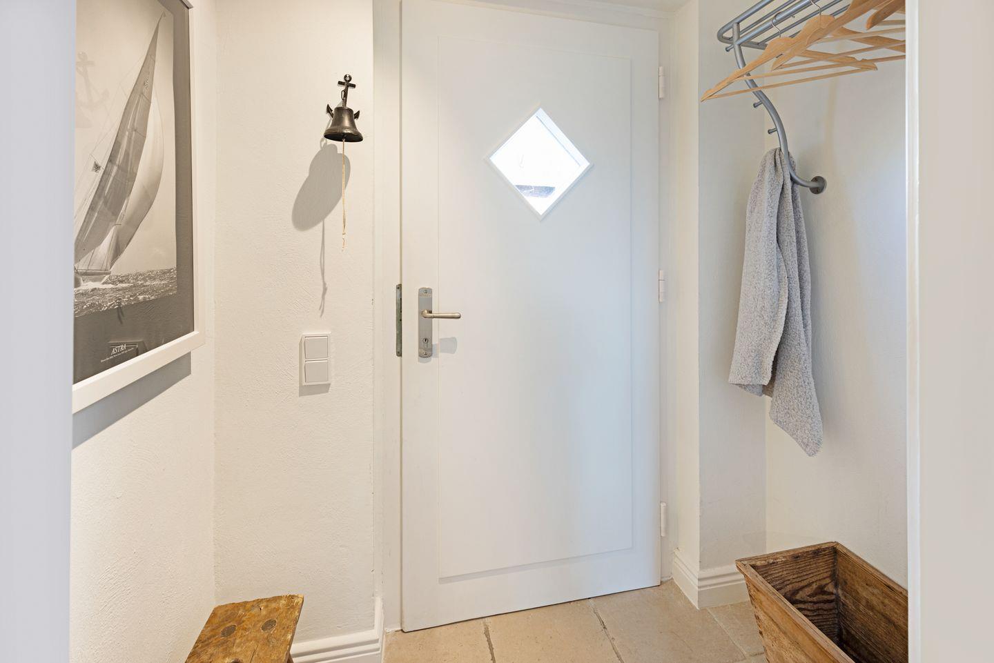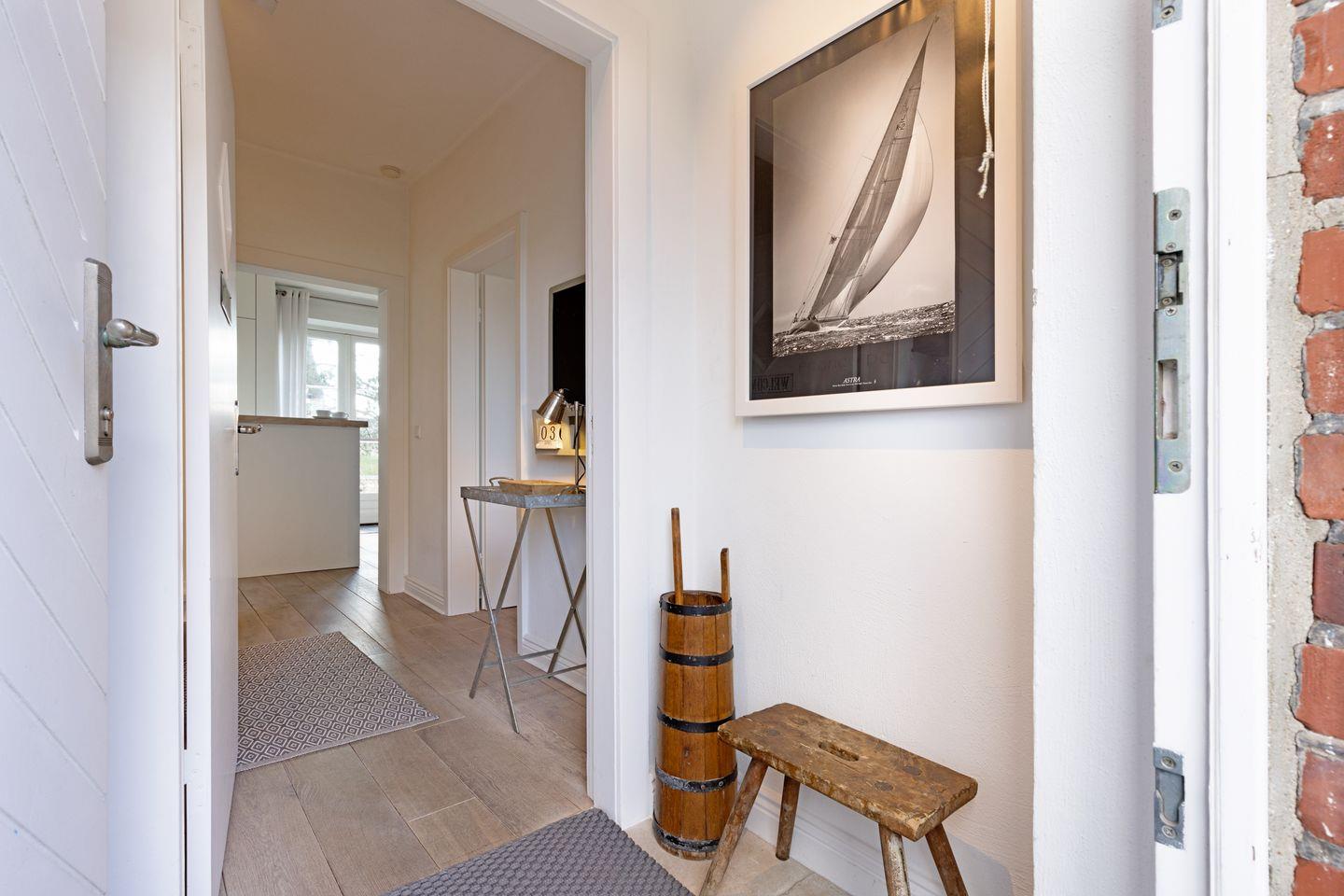Die hellen Räume überzeugen durch ein natürliches und hochwertiges Wohnkonzept. Gekalkte Eichendielen, feine Leinen-Gardinen sowie Wände in sanften Weiß- und Sandtönen verleihen dem Haus eine zeitlose, nordisch inspirierte Eleganz. In Küche, Bad und Flur sorgen edle Kalksteinböden für ein stimmiges Gesamtbild und unterstreichen den hochwertigen Charakter der Ausstattung. Sorgfältig ausgewählte Accessoires runden das stilvolle Ambiente ab und schaffen eine besondere Wohlfühlatmosphäre.