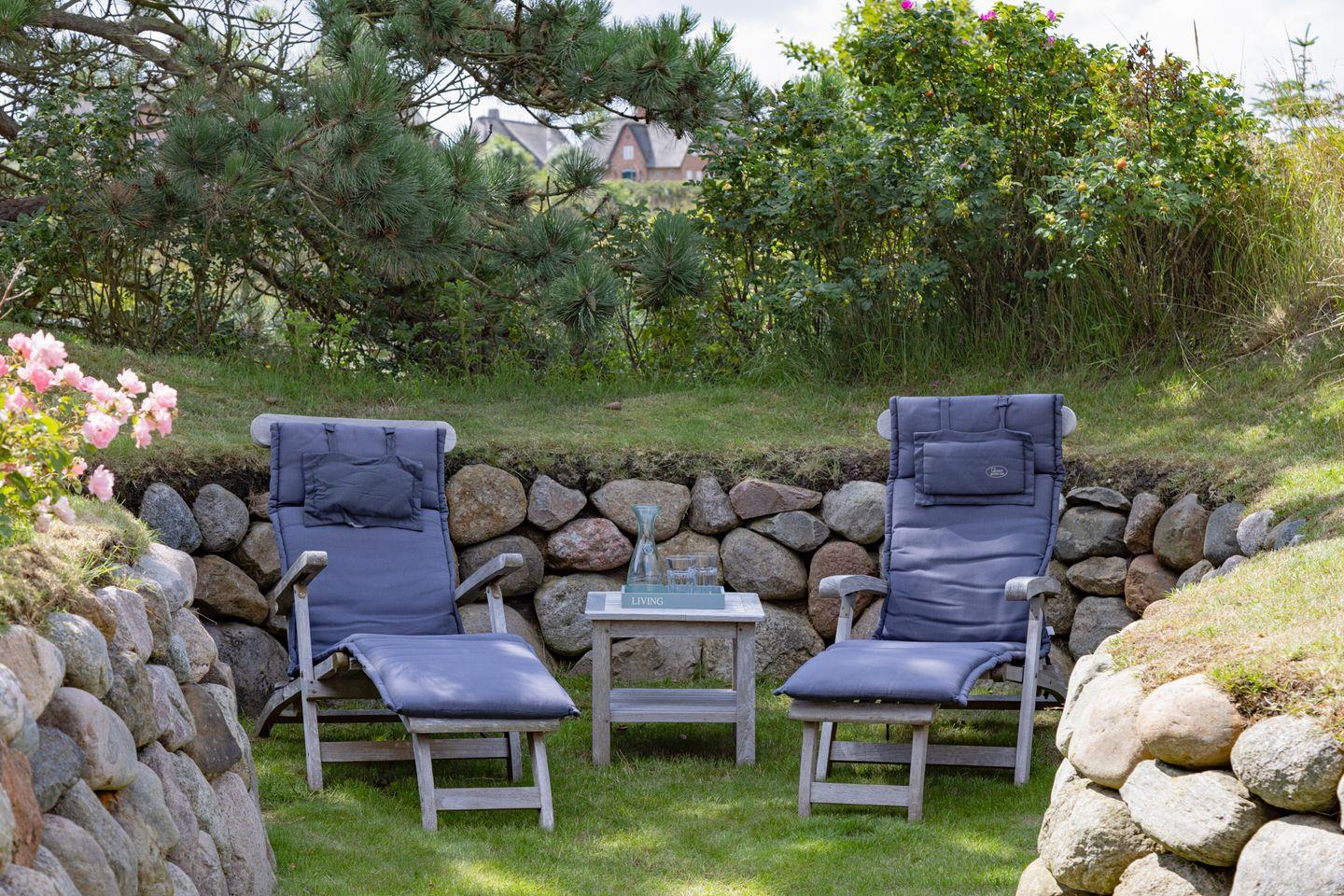 Der Außenbereich bietet Ihnen die Möglichkeit, die frische Nordseeluft in vollen Zügen zu genießen. Gartenmöbel sowie Strandkörbe stehen Ihnen saisonal zur Verfügung und laden zum Verweilen im Freien ein.