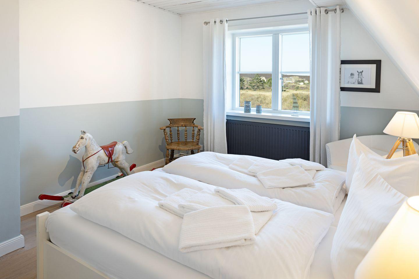 Ruhig gelegenes Feriendoppelhaus unter Reet für bis zu vier Personen mit Garten und Terrasse. Der herrliche Sandstrand der Blidselbucht ist in wenigen Minuten erreichbar.
