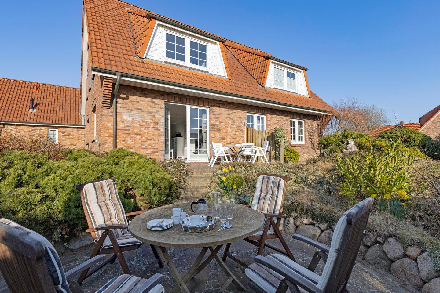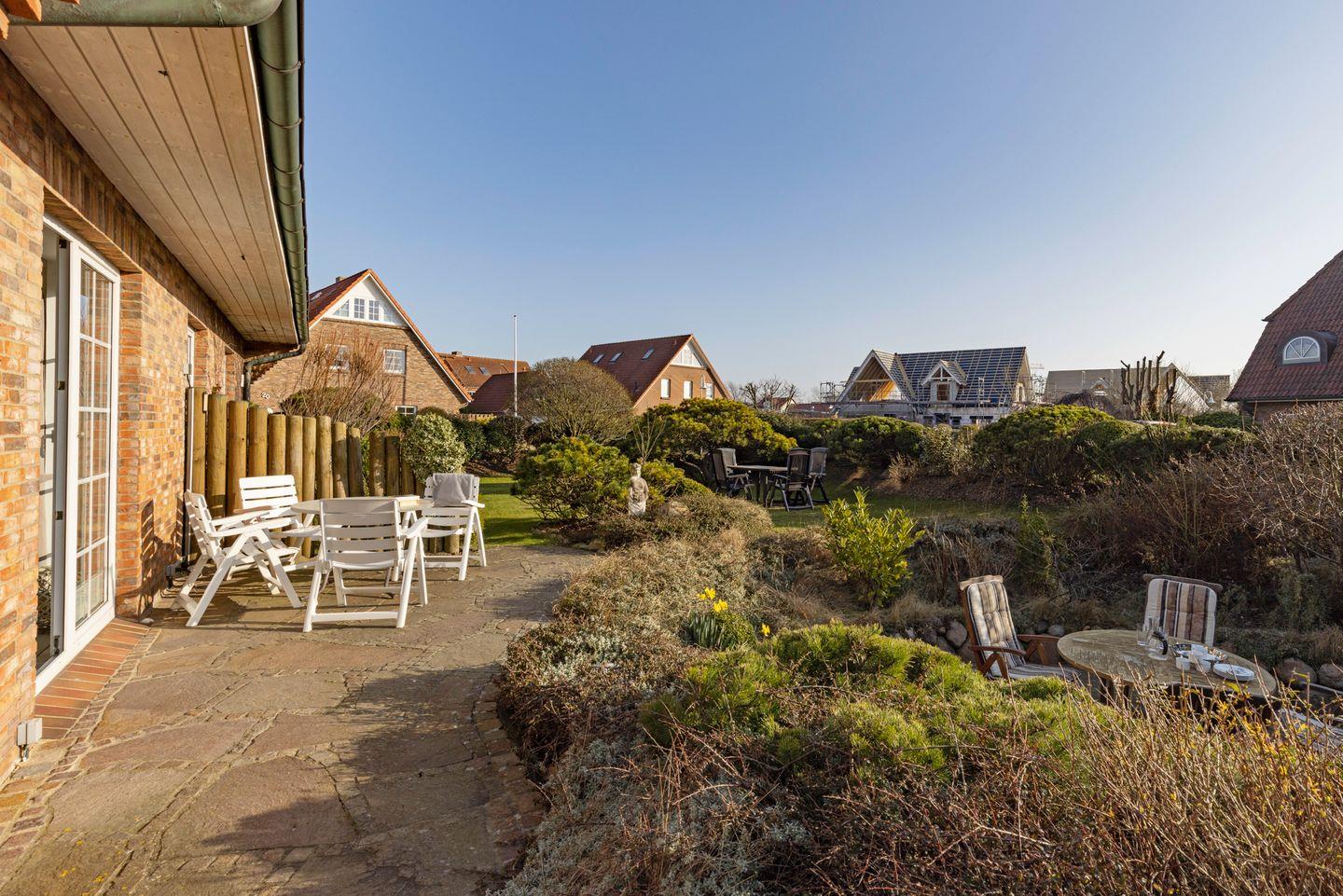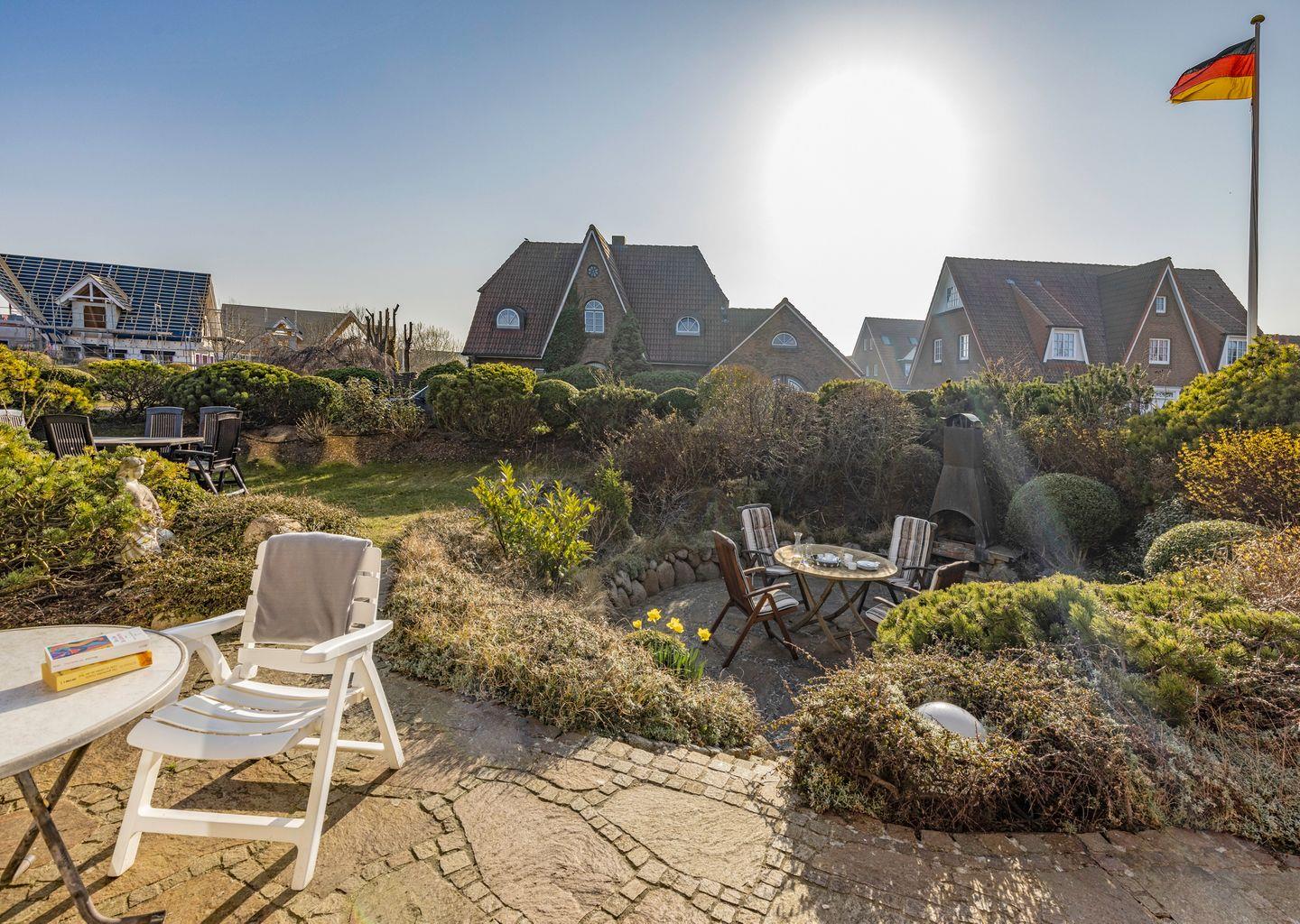 Saisonal steht Ihnen im ruhigen Garten eine Terrasse mit Gartenmöbeln zur Verfügung. Das Appartementhaus liegt in einer Spielstraße direkt am Königshafen in List.