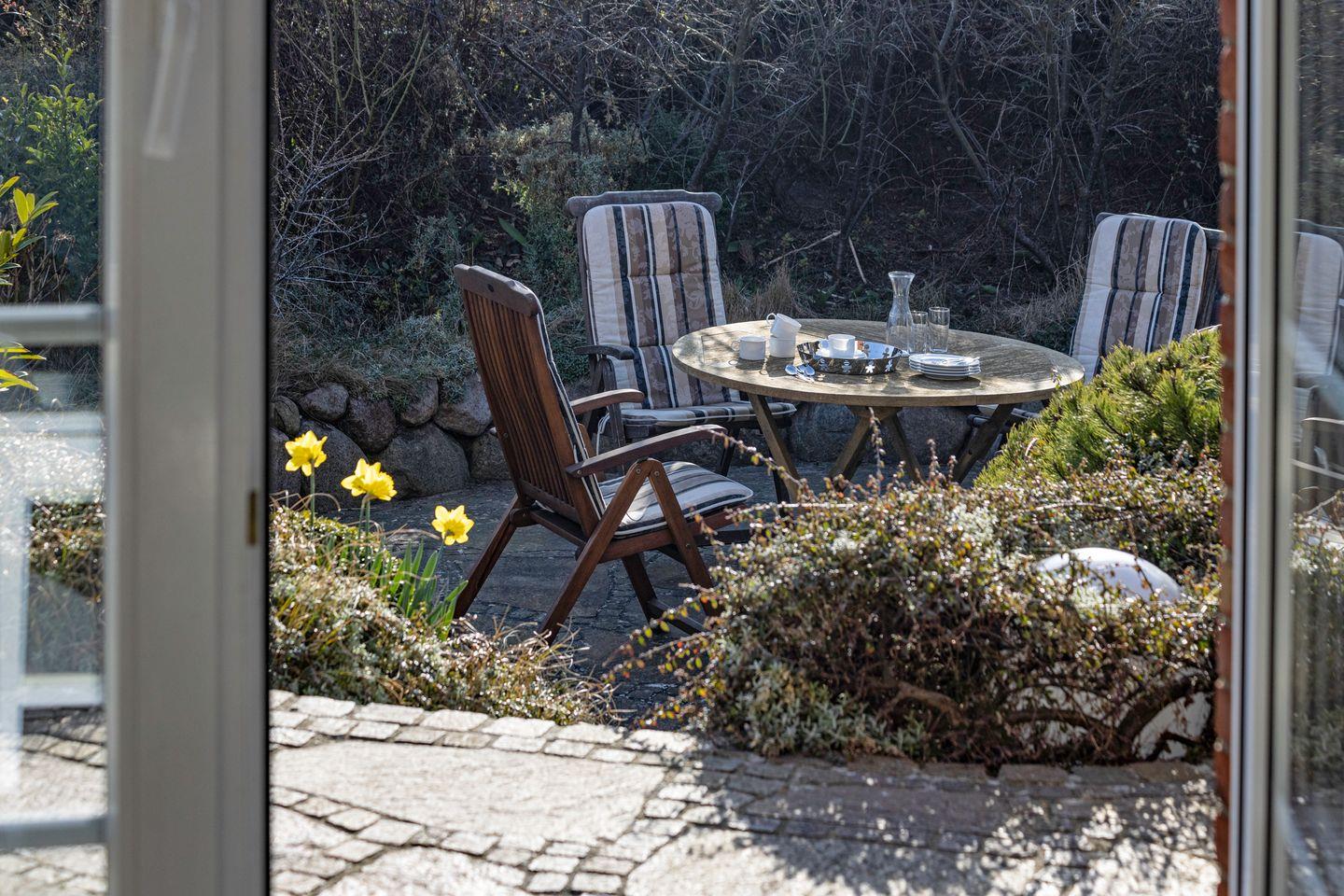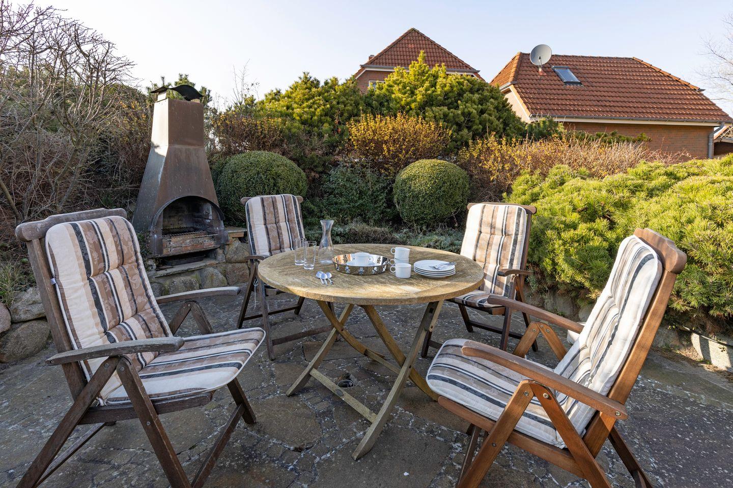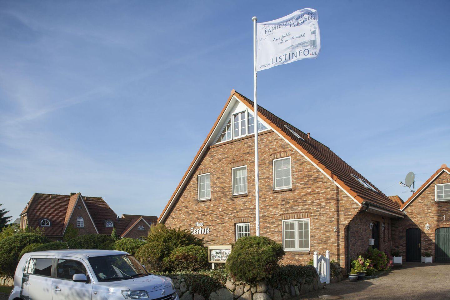 Saisonal steht Ihnen im ruhigen Garten eine Terrasse mit Gartenmöbeln zur Verfügung. Das Appartementhaus liegt in einer Spielstraße direkt am Königshafen in List.