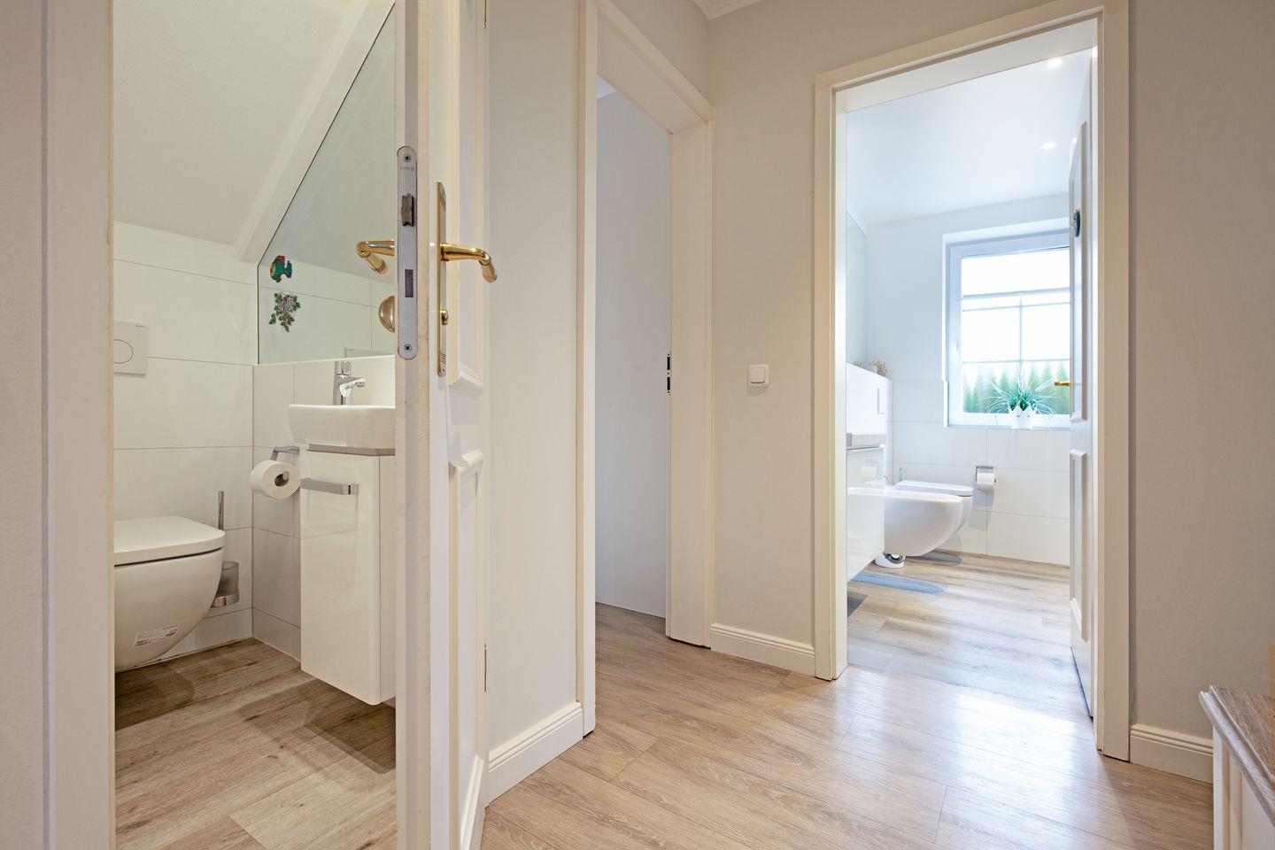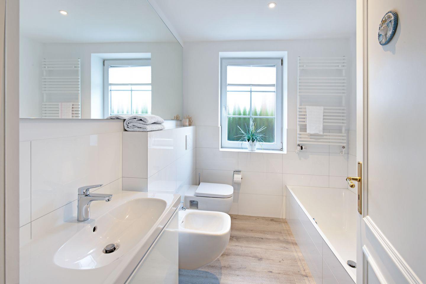 Das Bad verfügt über eine Badewanne. Sie haben einen direkten Terrassenzugang.