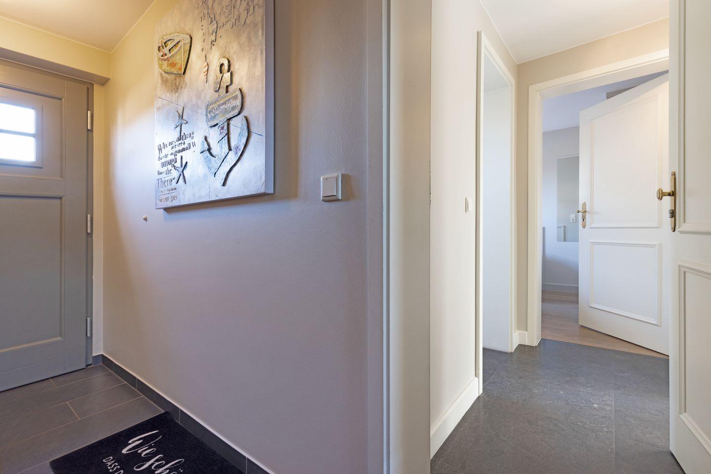 Vor der Wohnung befindet sich eine kleine Terrasse, die saisonal mit einem Strandkorb und Gartenmöbeln ausgestattet ist.