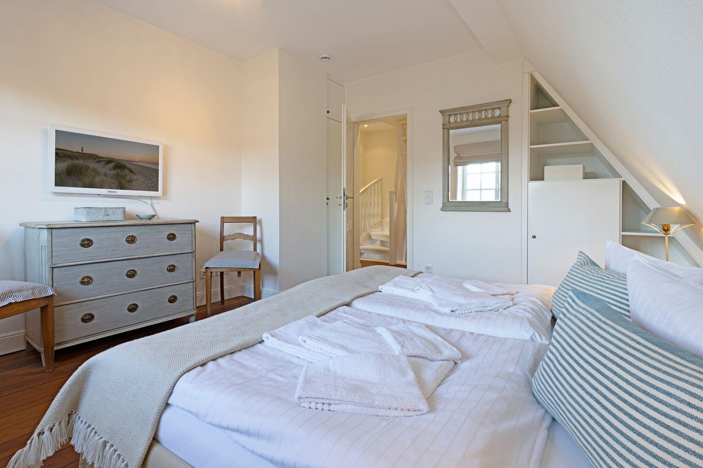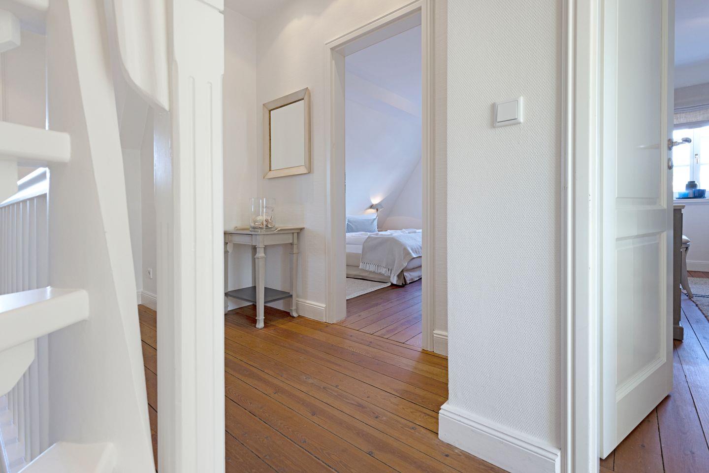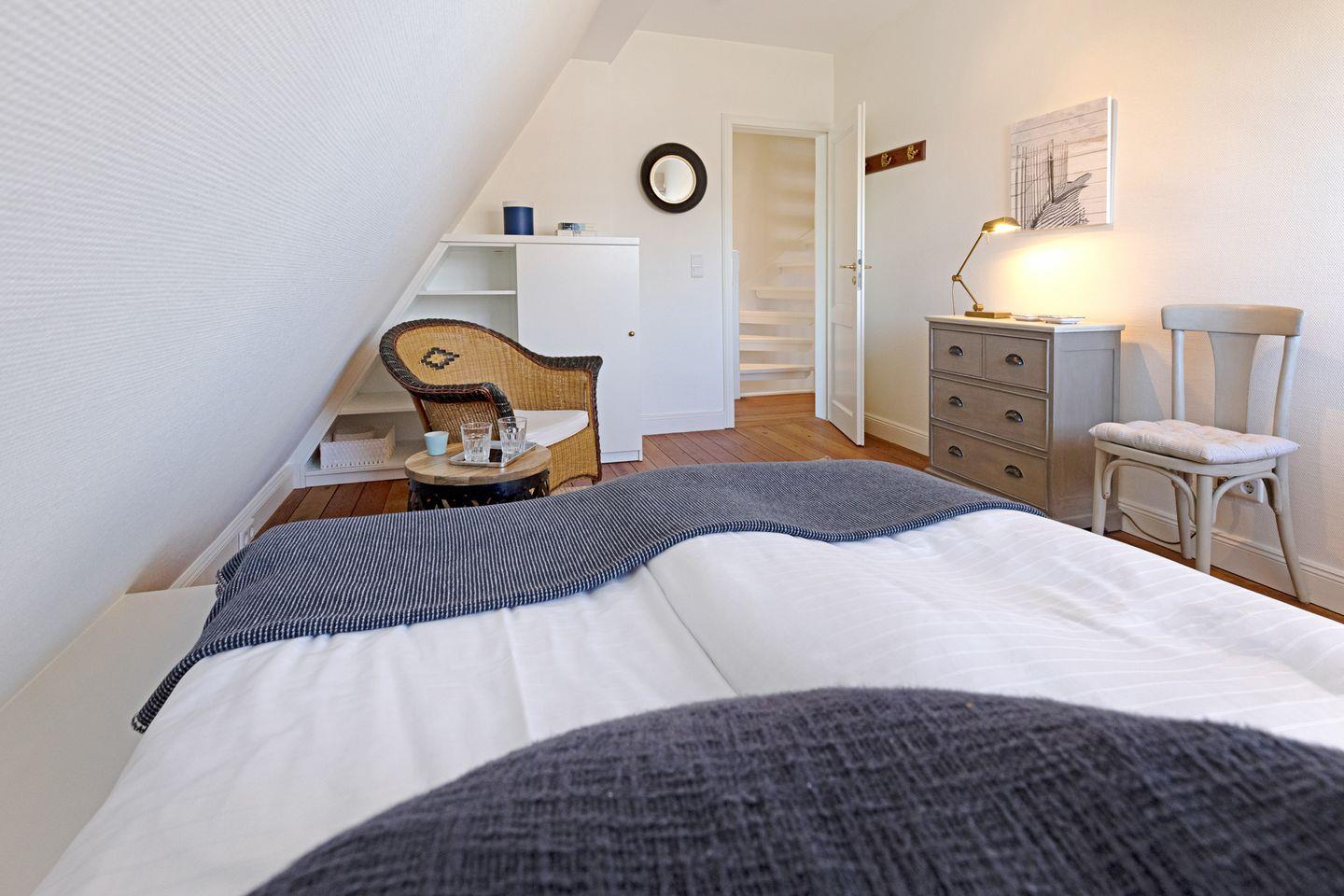 Im 1 Obergeschoss angekommen, unterteilt sich dies in zwei komfortable Schlafzimmer mit Doppelbetten sowie ein Badezimmer mit Dusche.