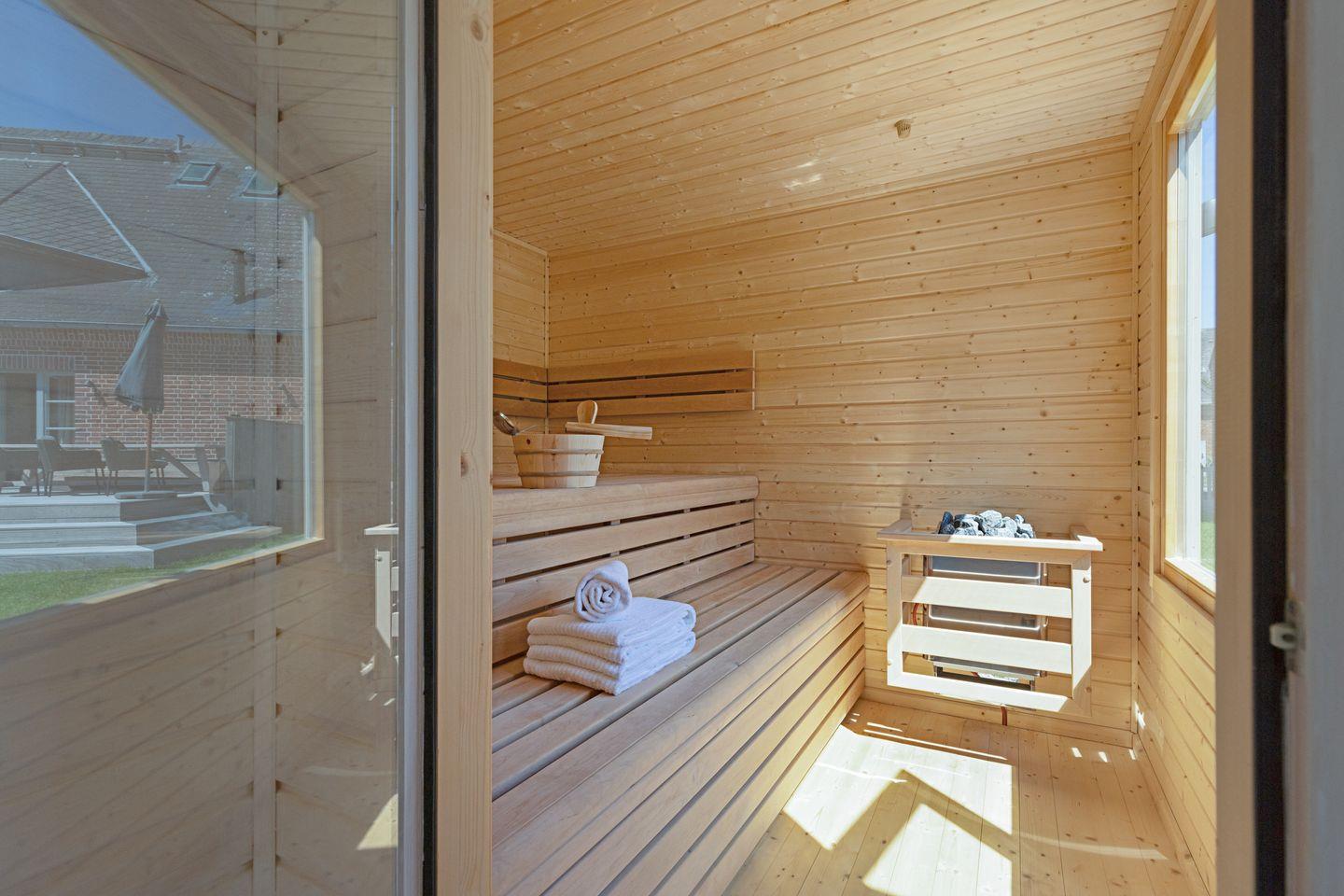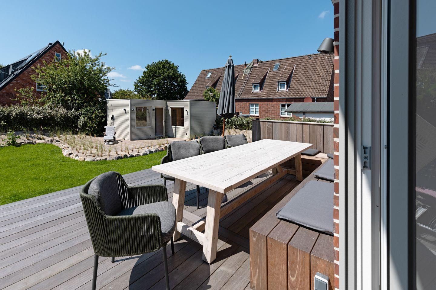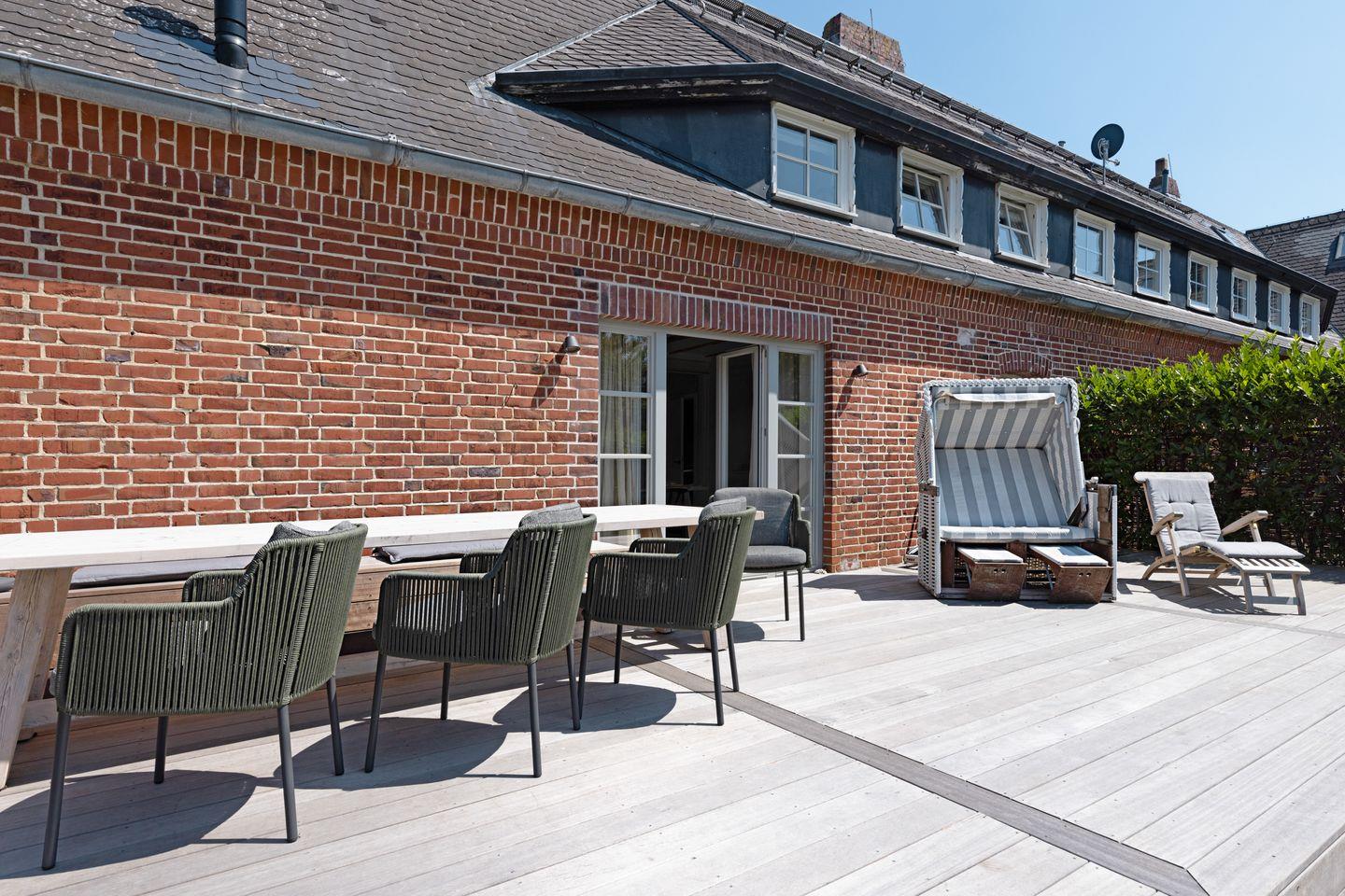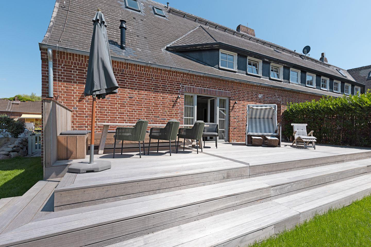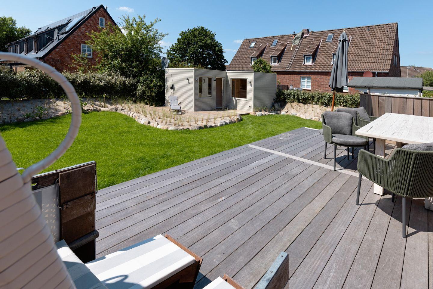 Im Außenbereich erwartet Sie ein sonniger Garten mit zwei Terrassen, Strandkorb, Gartenmöbeln, ein eigenes Saunahaus mit Außendusche sowie einer Relax-Liegefläche – Ihre private Wohlfühloase!