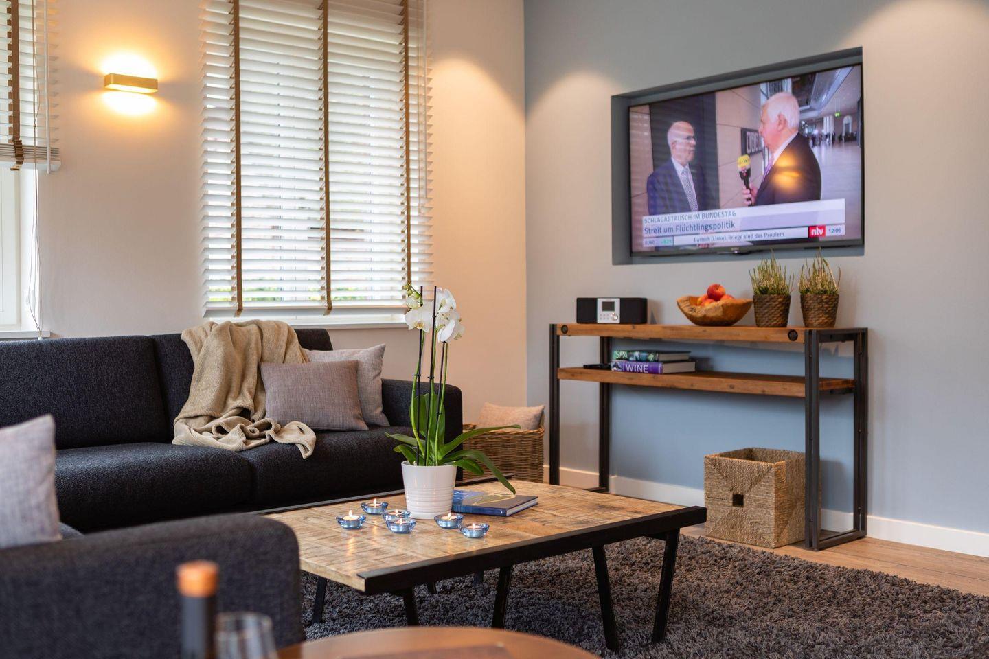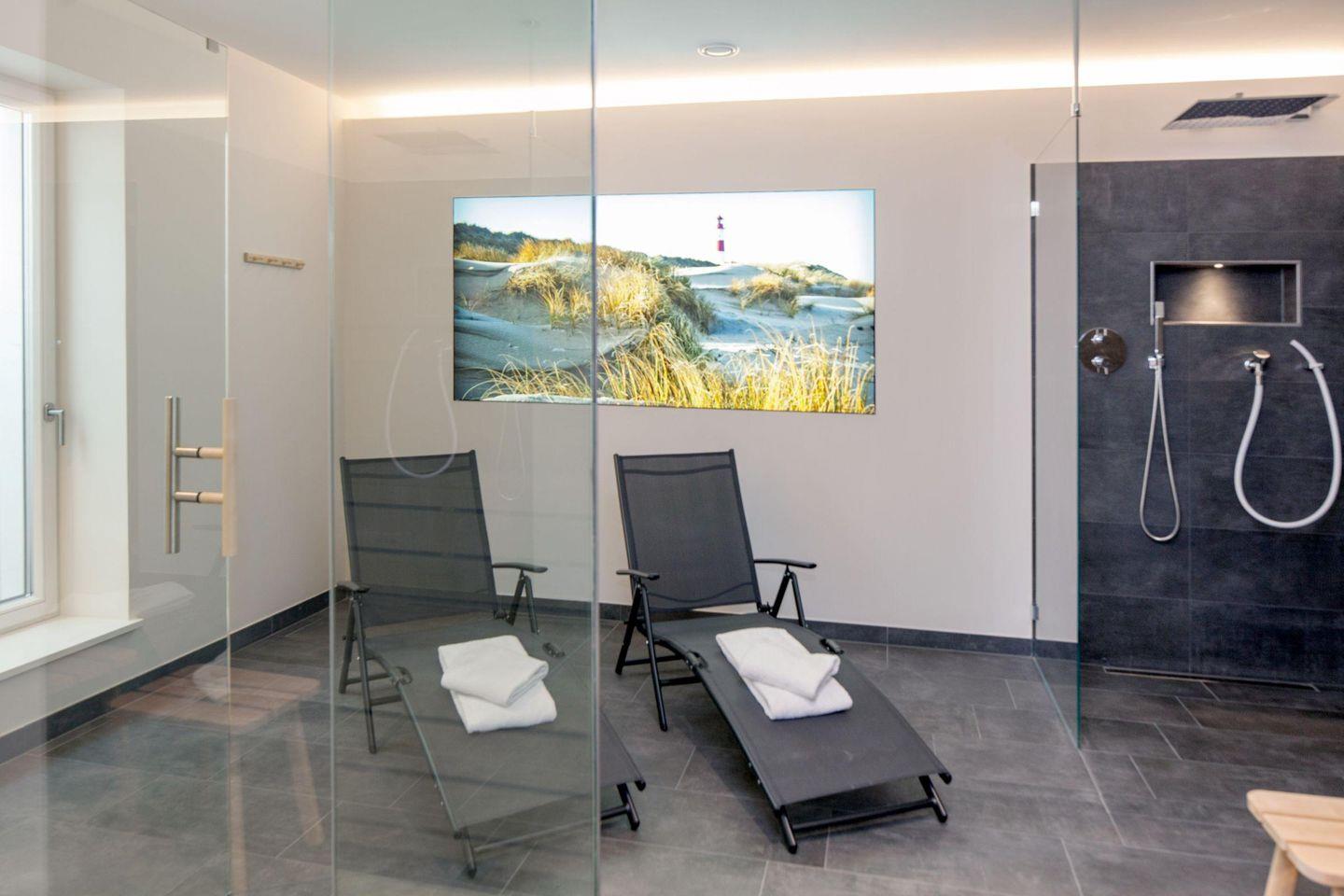Luxuriöse Doppelhaushälfte unter Reet für bis zu acht Personen mit Wellnesslandschaft, Fitnessraum und eigenem Kinoraum.