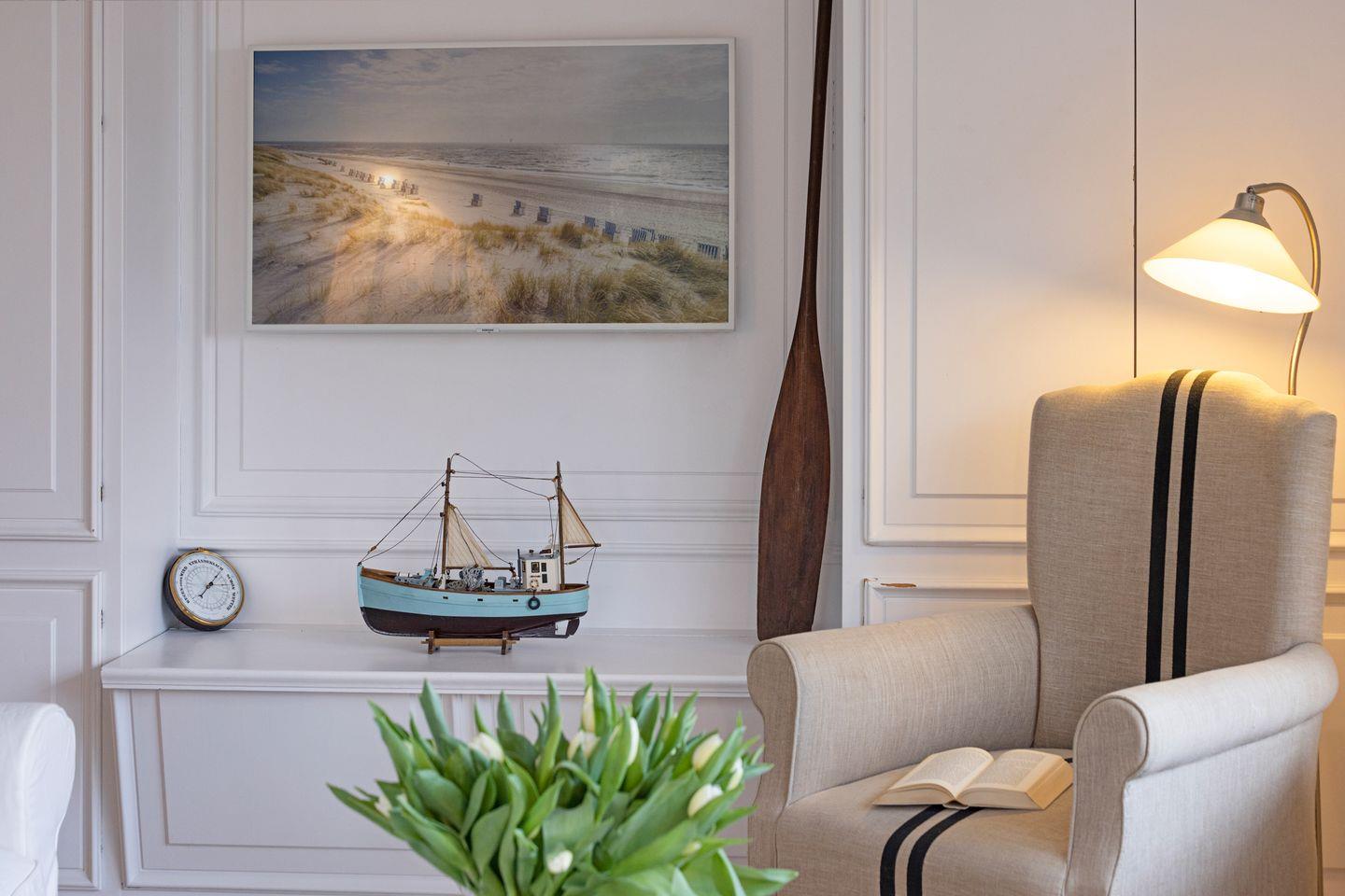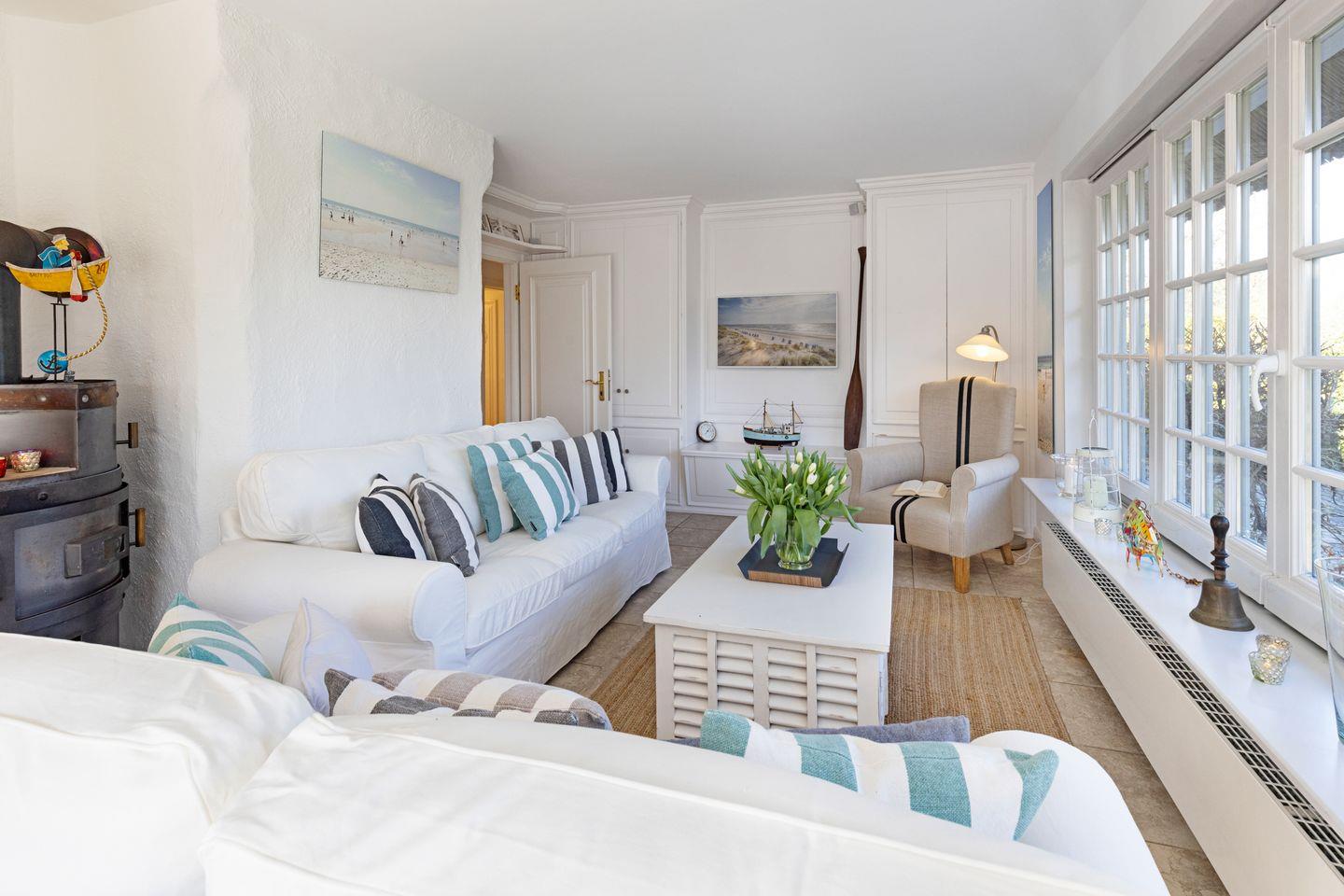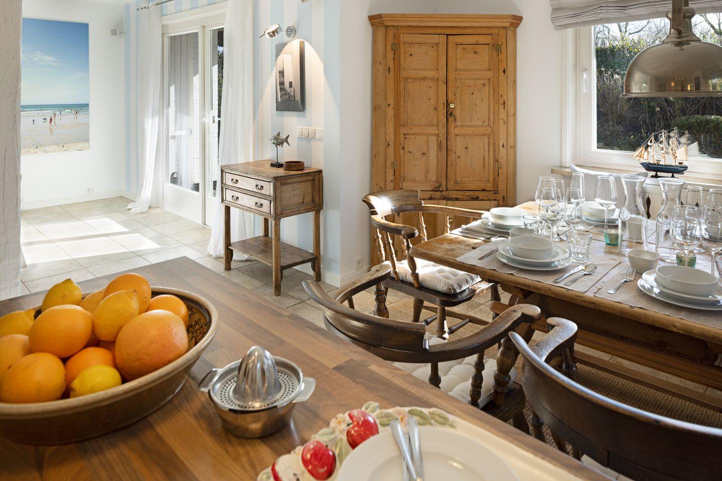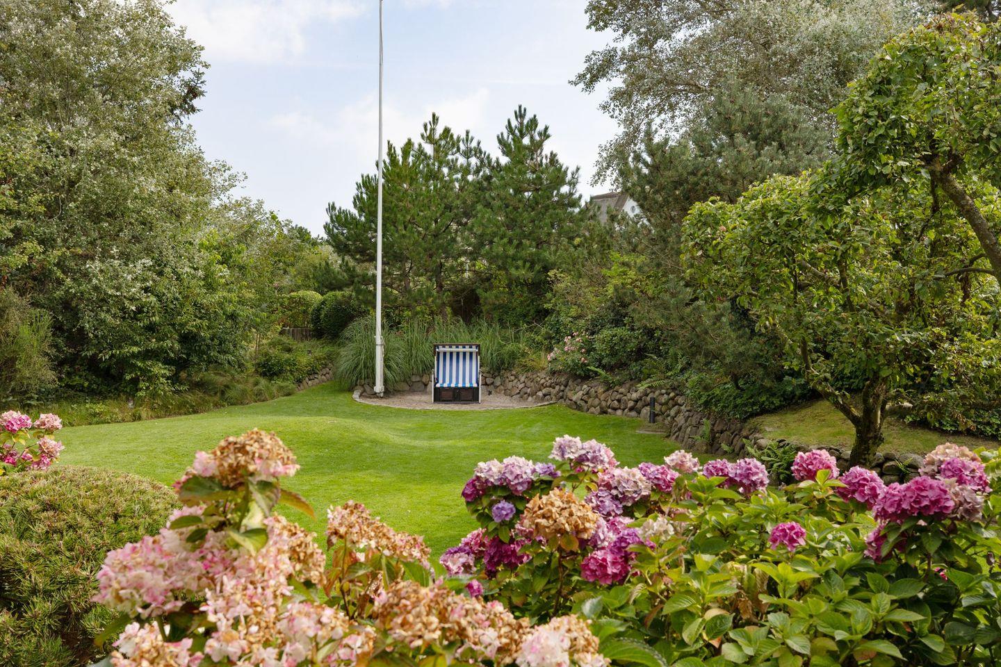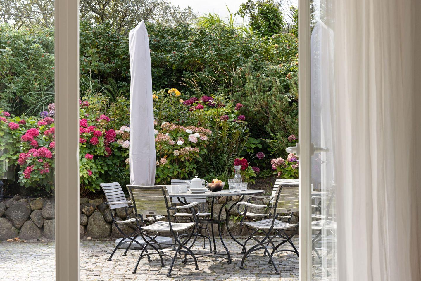 Vom Wohnzimmer aus gelangen Sie in den großen Garten mit Strandkorb, Tischtennisplatte - und Gartenmöbeln. Vom Gartentor aus erreichen Sie den 30 Meter entfernten Oststrand.