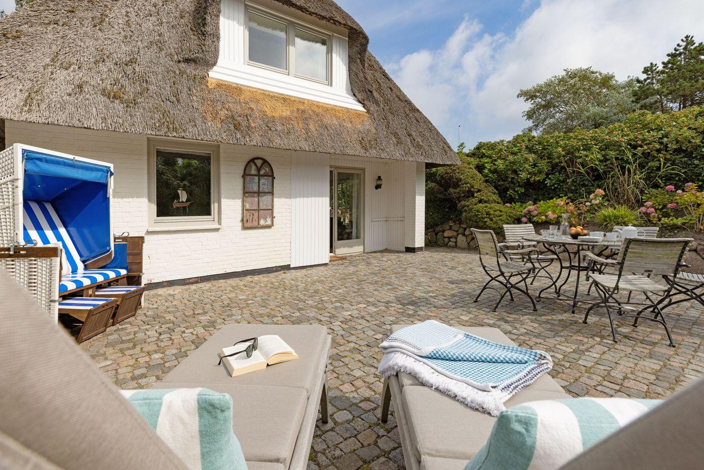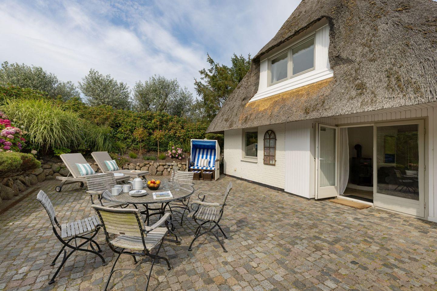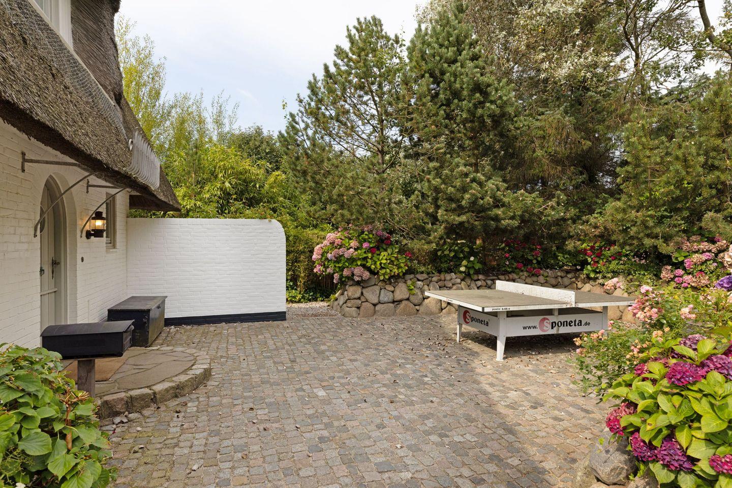 Großzügiges Ferienhaus unter Reet mit großem Garten und Strandkorb sowie Tischtennisplatte und Gartenmöbeln am Lister Oststrand.