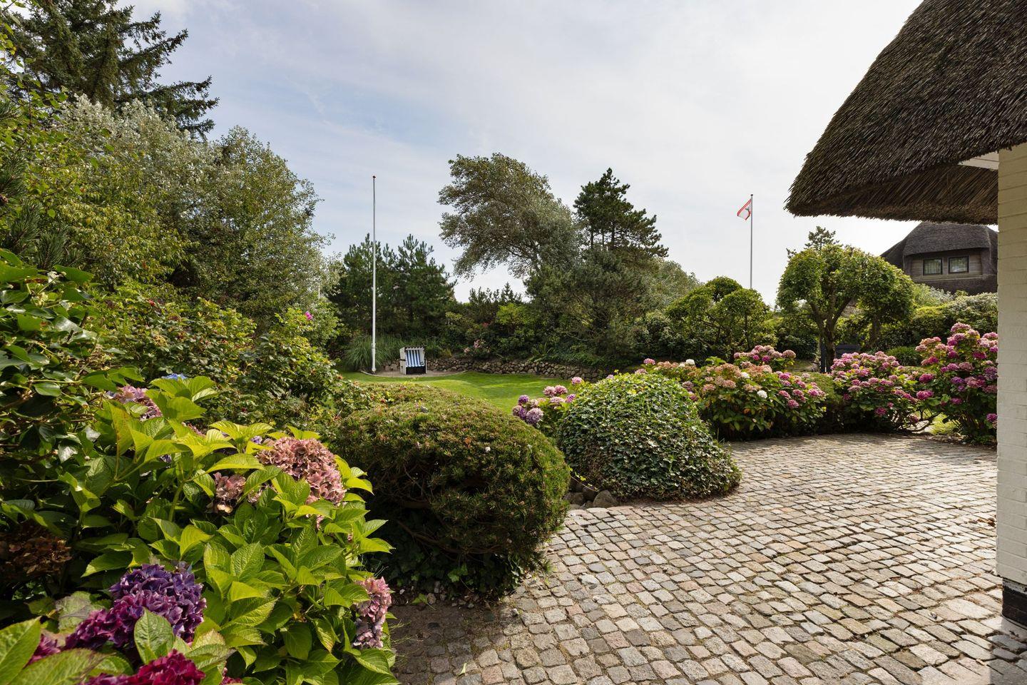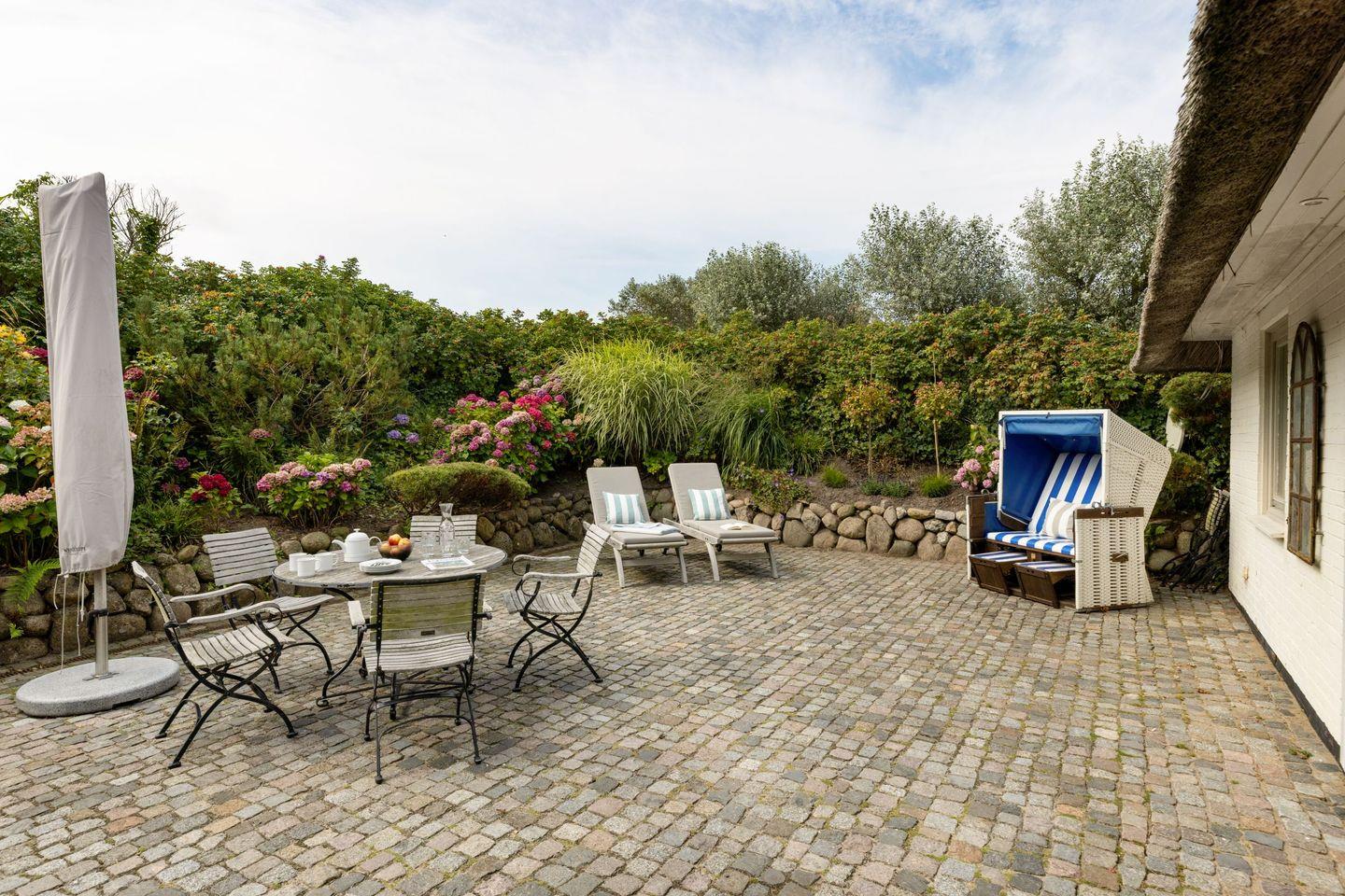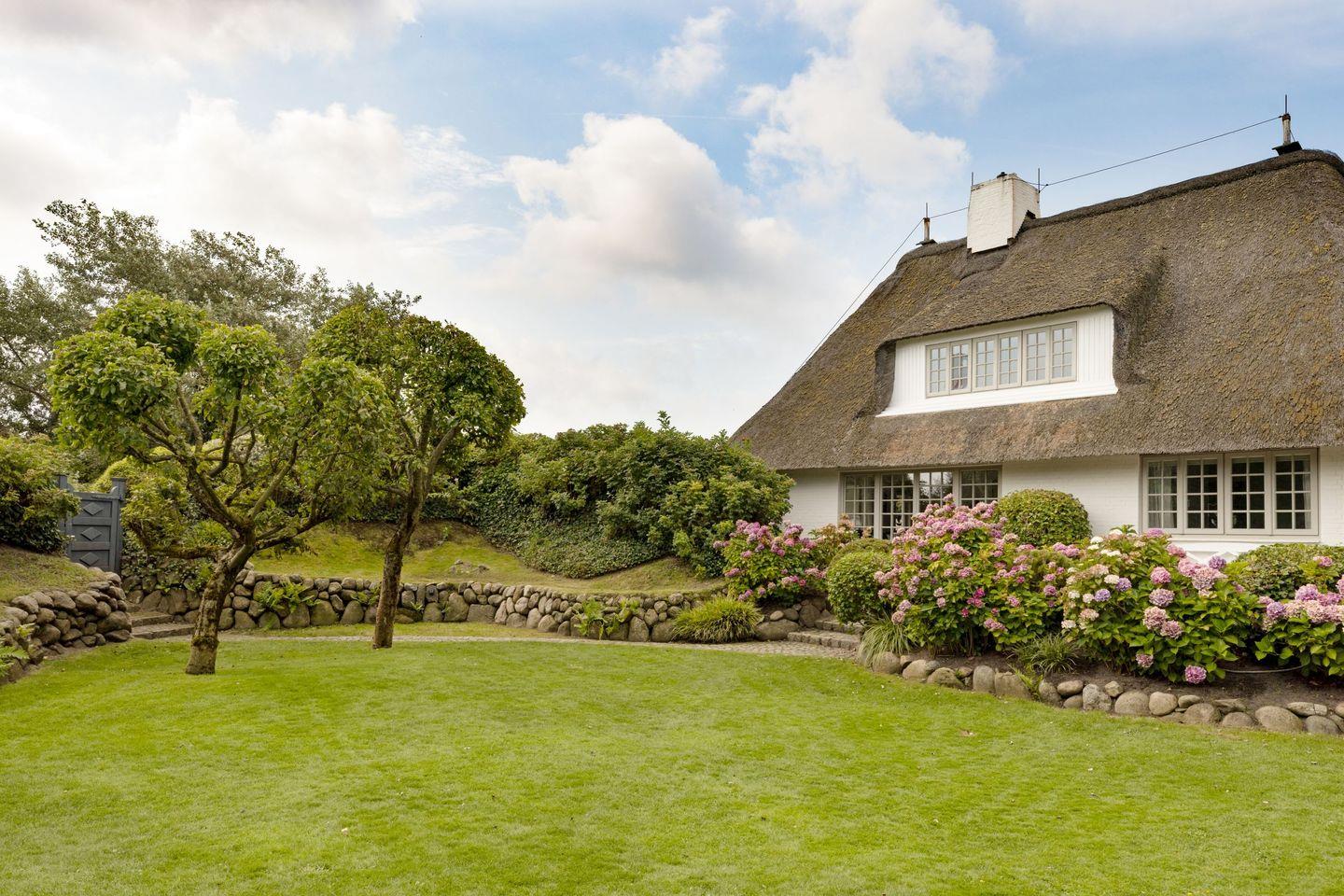 Großzügiges Ferienhaus unter Reet mit großem Garten und Strandkorb sowie Tischtennisplatte und Gartenmöbeln am Lister Oststrand.
