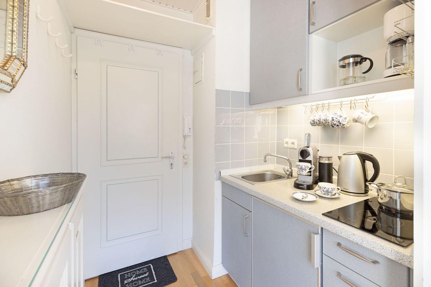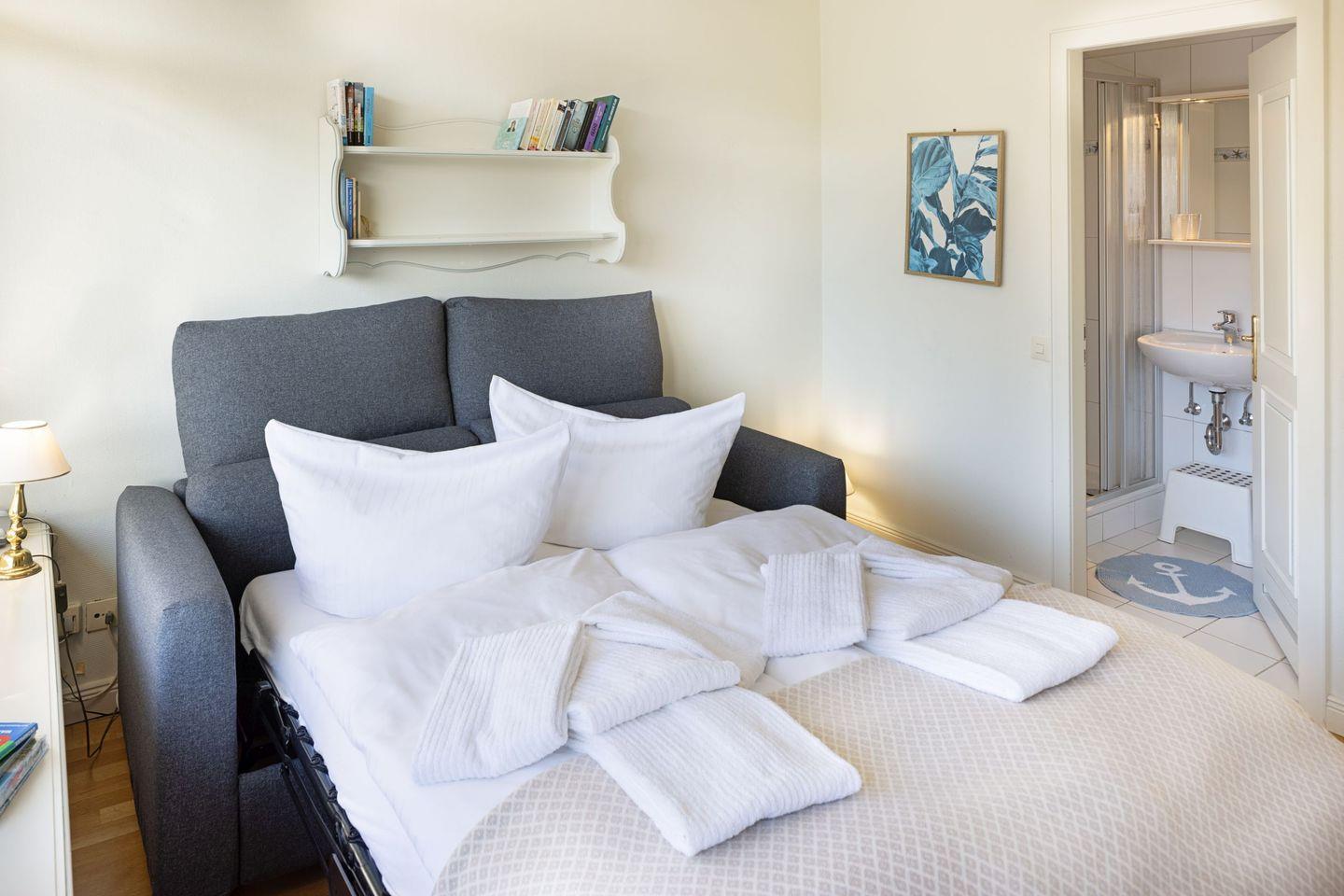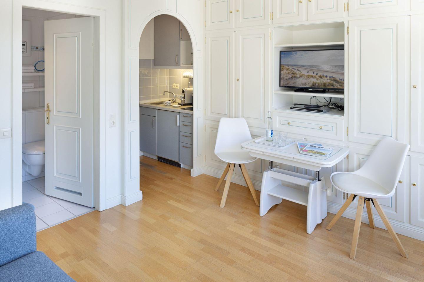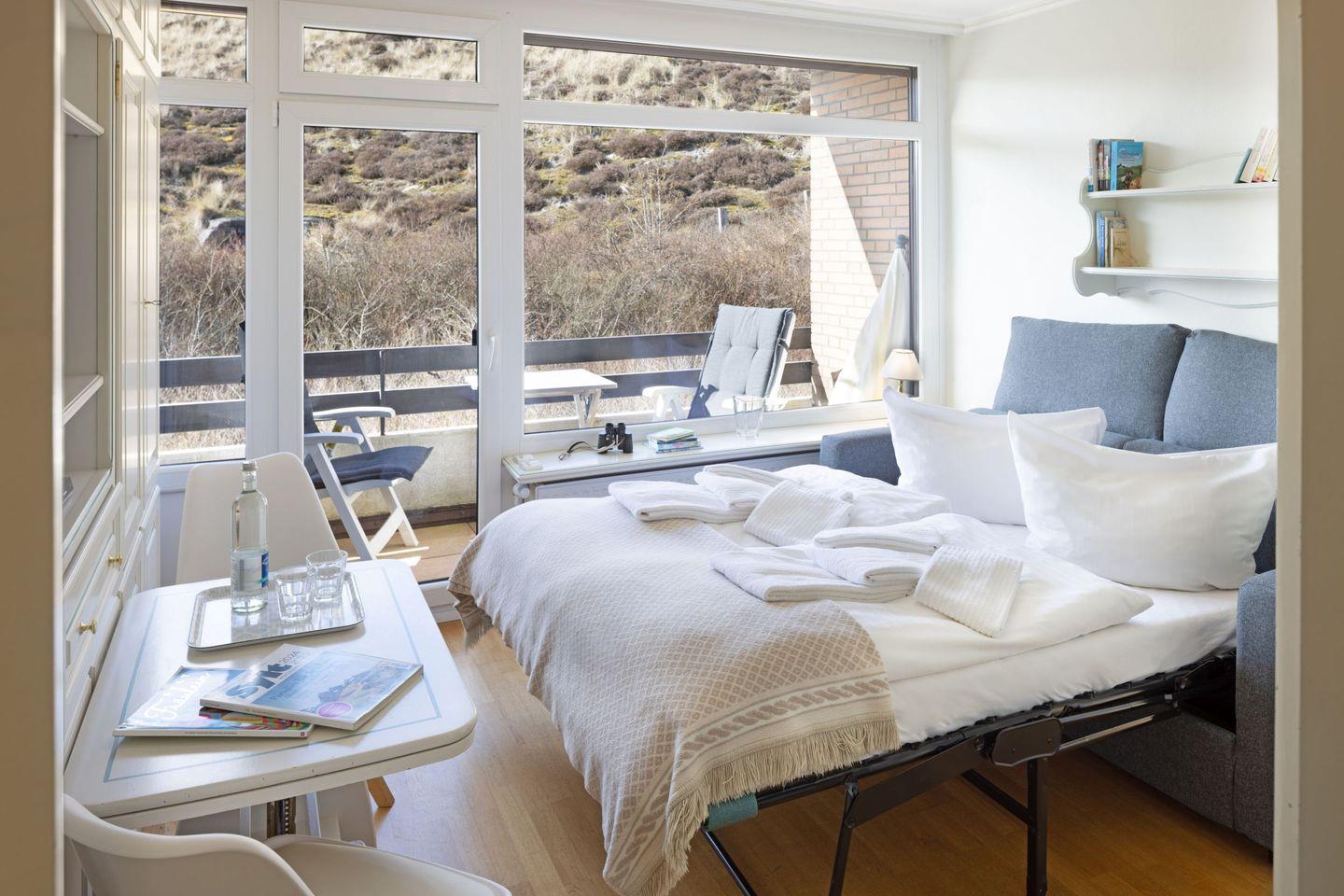 Die Dünenperle liegt im Hochparterre und erstreckt sich über 24 m² – ideal für romantische Auszeiten oder kleine Abenteuer mit Freunden. Sie bietet Schlafmöglichkeiten für bis zu zwei Personen, was sie besonders für Paare oder Alleinreisende attraktiv macht. Die Wohnung ist gemütlich eingerichtet und strahlt eine einladende Atmosphäre aus, die sofort zum Wohlfühlen einlädt.