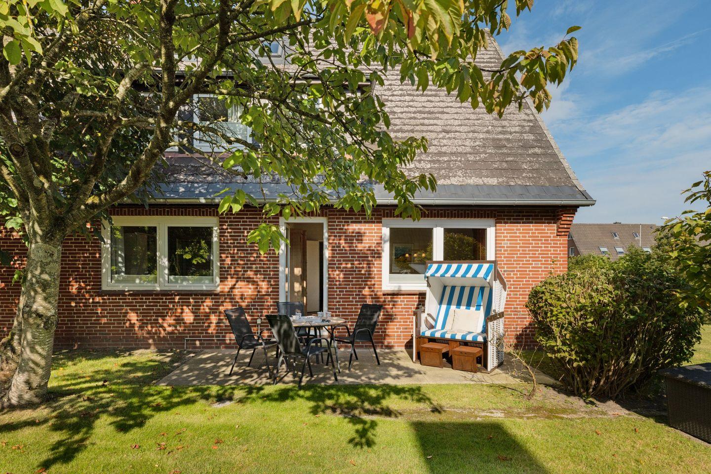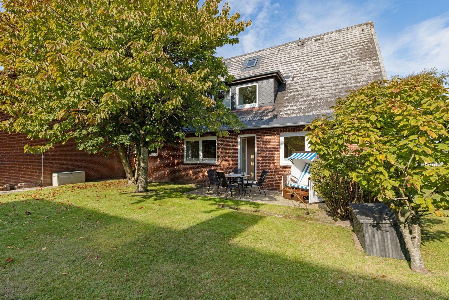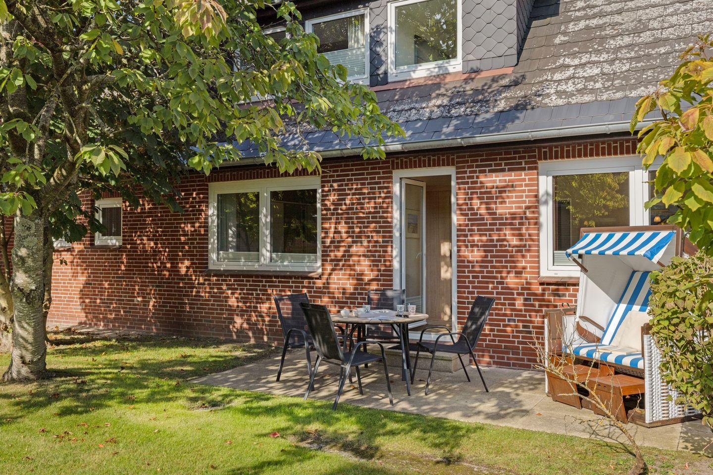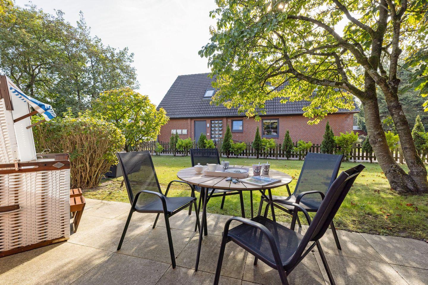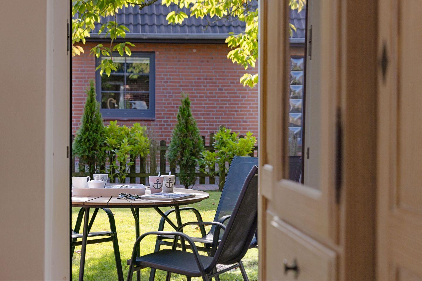 Das Ferienappartement für bis zu vier Personen befindet sich im Erdgeschoss und verfügt über eine eigene Terrasse, die sichtgeschützt zum großen Garten liegt.