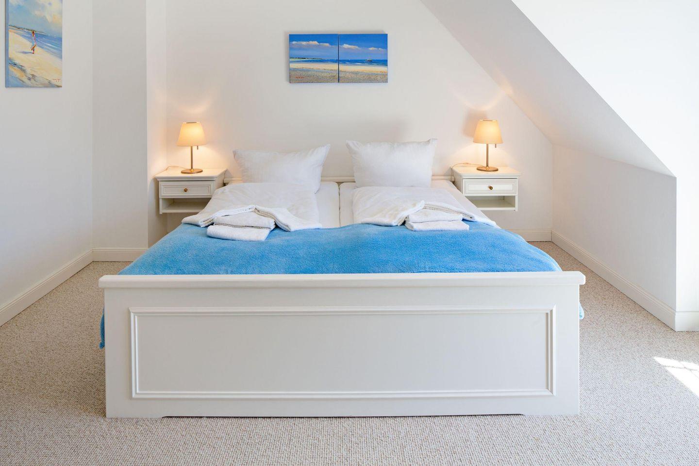 Das Obergeschoss bietet Ihnen ein weiteres Duschbad, zwei Schlafzimmer mit Doppelbett sowie ein Schlafzimmer mit zwei Einzelbetten – ideal für Familien oder kleine Gruppen. Für zusätzlichen Komfort stehen Ihnen WLAN, ein Waschtrockner, Föhn, Spülmaschine, Kaffee- und Nespressomaschine, eine kleine Auswahl Gesellschaftsspiele für Klein und Groß sowie ein eigener Pkw-Stellplatz zur Verfügung.