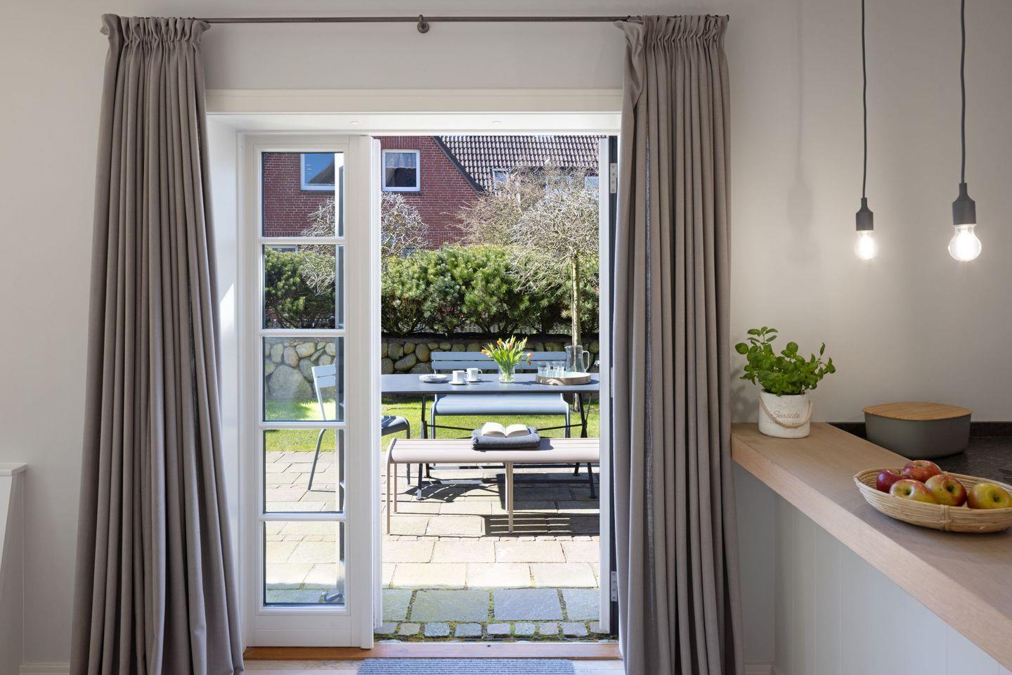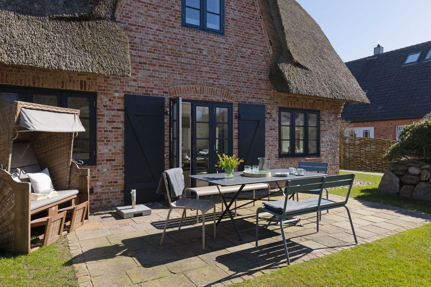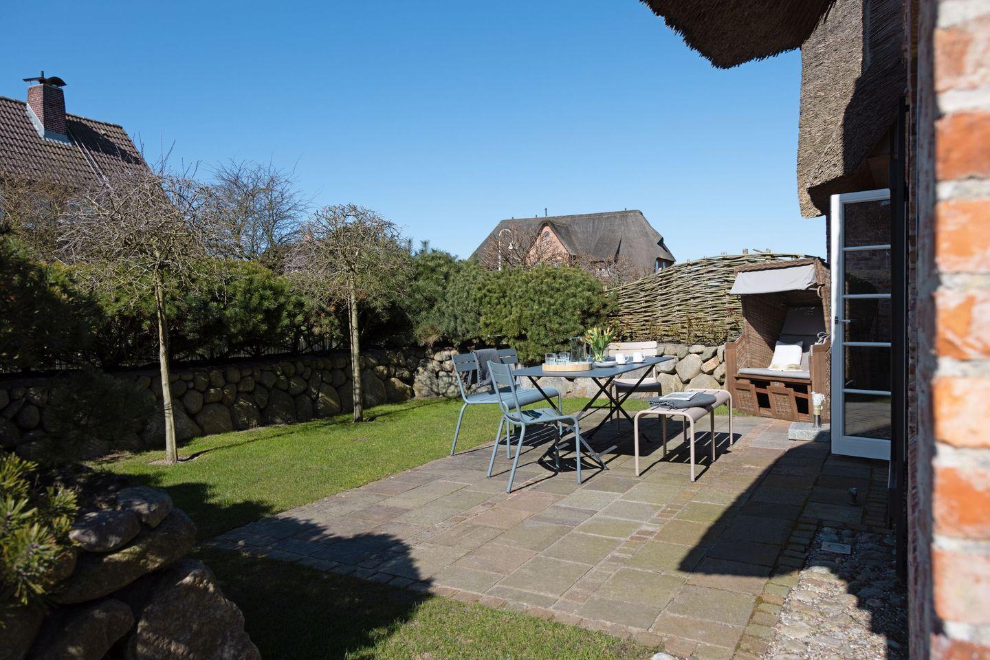 Gartenmöbel und ein Strandkorb stehen Ihnen saisonal begrenzt zur Verfügung.