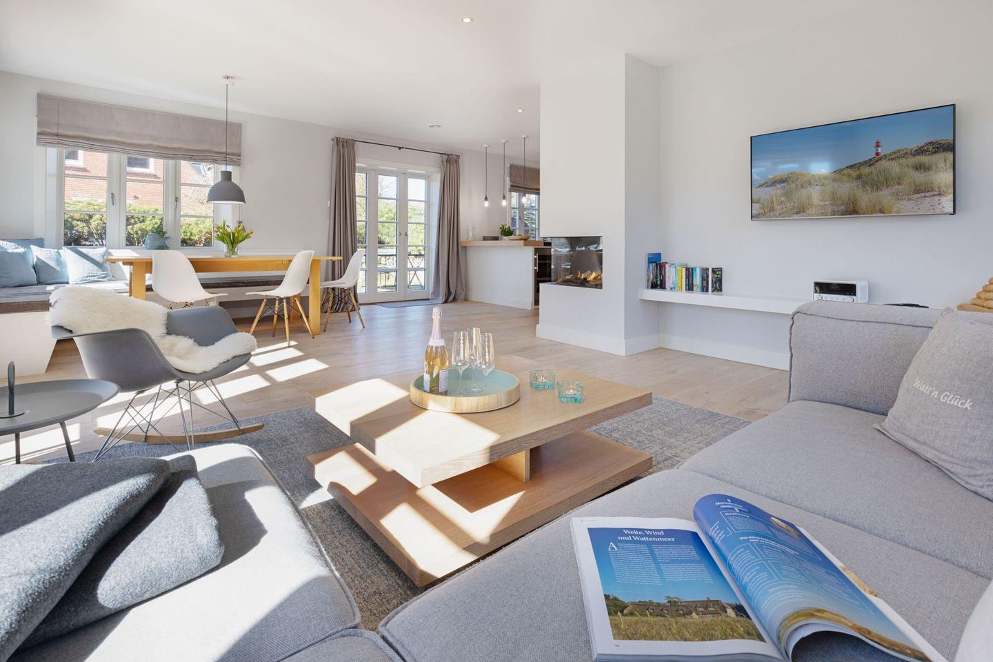 Hochwertig ausgestattetes Feriendoppelhaus mit Kamin, Luxus-Küche, Sauna im Garten, Strandkorb und Terrasse