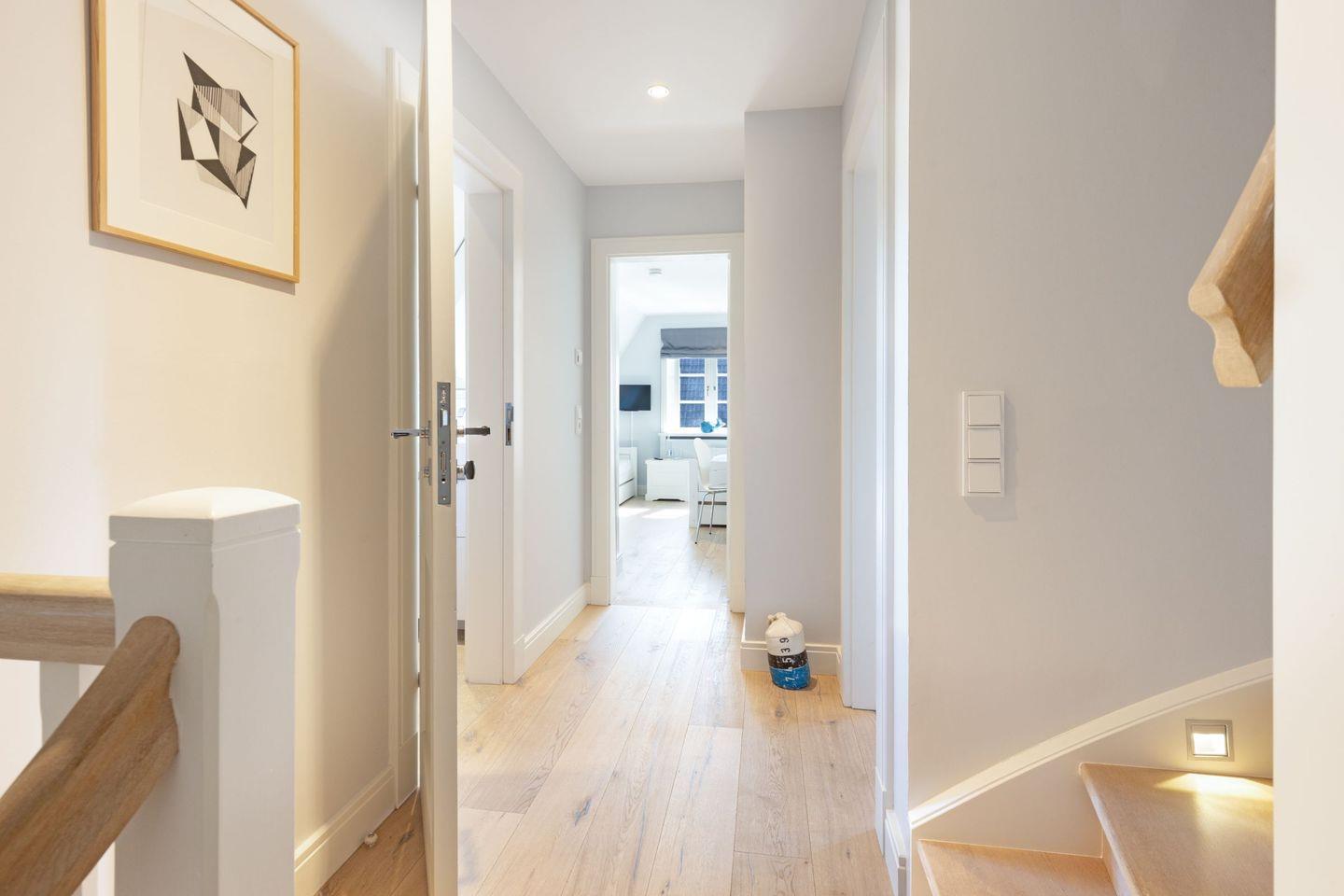 Das hochwertig ausgestattete Haus bietet Ihnen vom Wohnbereich mit Gas-Kamin bis zur offenen Luxus-Küche und Garten mit Terrasse, alles was man zum Wohlfühlen braucht. Im EG befindet sich zusätzlich eine Gäste-Toilette. Eine geschlossenen Holztreppe führt in den 1. Stock mit dem Master-Bedroom mit Doppelbett und einem eigenen Bad sowie einem SZ mit zwei Einzelbetten. Im Flur (1. OG) befindet sich auch noch ein Wannenbad. Ein Waschtrockner ist vorhanden. Zum Haus gehört ein Parkplatz direkt vor dem Haus.