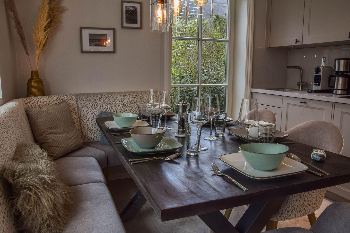Endlich Sylt-Urlaub – und alle fahren mit: Diese großzügige Wohnung im Erdgeschoss eines frisch erbauten Hauses im klassischen Friesenstil bietet mit drei Schlafzimmern und zwei Bädern bis zu sechs glücklichen Gästen Platz und Privatsphäre. Die Küche ist mit ihrem großen, herrlich bequemen Essbereich und dem angrenzenden Wintergarten mit Kuschelsofas und Gaskamin das Herz dieses edel möblierten Feriendomizils. Ihre tolle Ausstattung lädt zu gemeinsamen Genussmomenten, der große Tisch zu ausgiebigem Pyjamafrühstück, zu Spieleabenden und langen Gesprächen bei Wein und Käse ein.