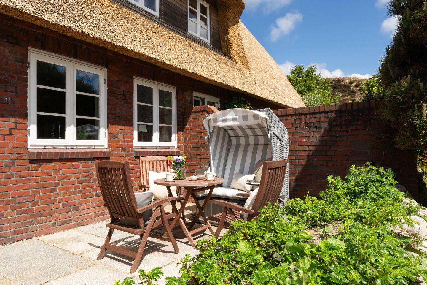 Eingebettet in die wilde Heidelandschaft und unmittelbar am Naturschutzgebiet gelegen, bietet dieses Reetdachjuwel einen exklusiven Rückzugsort für alle, die Ruhe, Natur und stilvolles Wohnen schätzen. Der weitläufige Strand mit der Lister Austernperle ist nur rund 750 Meter entfernt – perfekt für entspannte Strandtage und lange Spaziergänge.