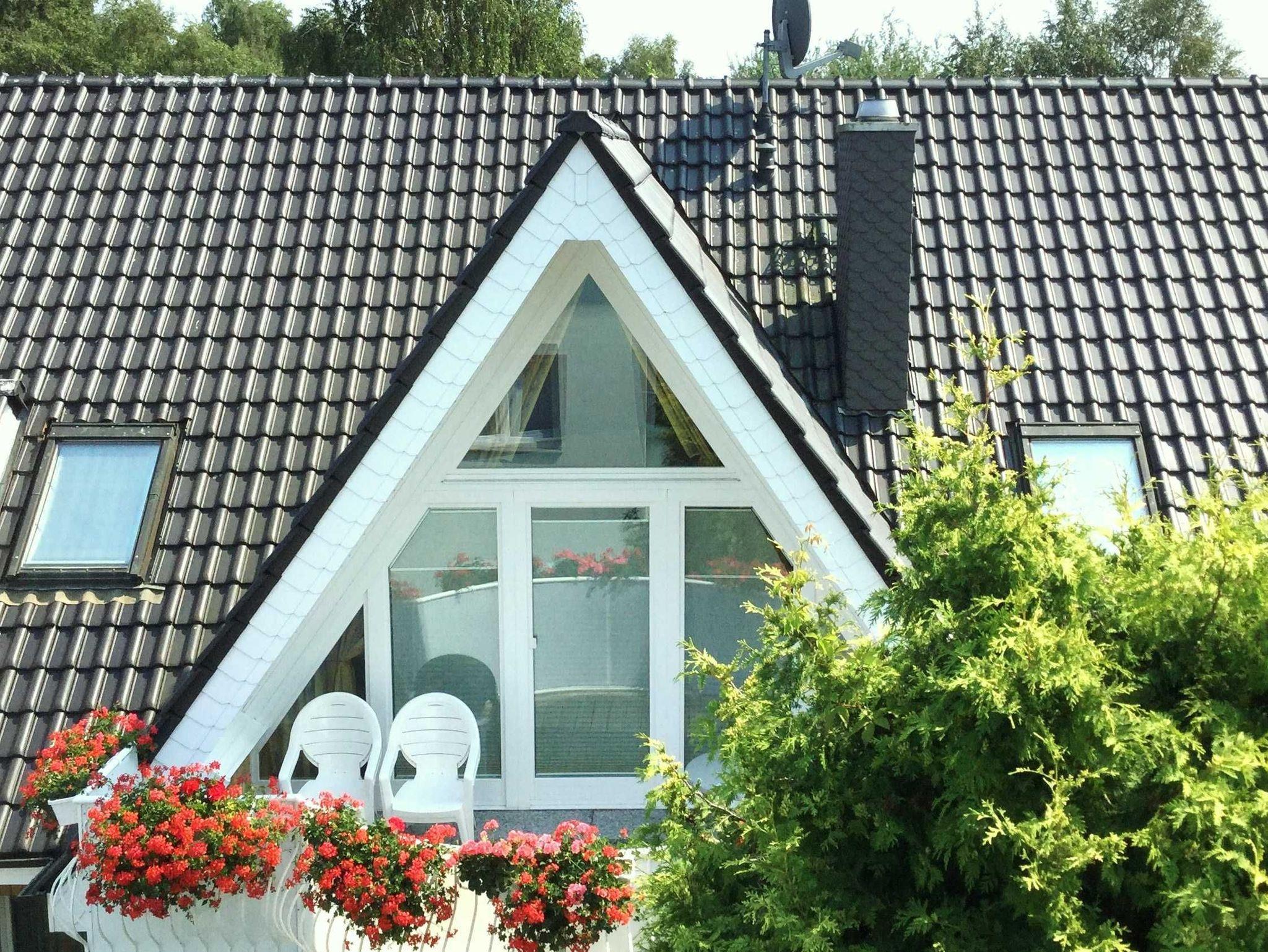 Die 2-Raum-Ferienwohnung (ca. 44 qm) befindet sich im Dachgeschoss. Sie hat ein separates Schlafzimmer, einen offenen Wohn- und Küchenbereich und Dusche/WC. Zur Ausstattung gehören LED-Flachbildschirm mit Radio und kostenfreiem WLAN. Im Schlafzimmer steht ein Doppelbett und ein Babybett kann hinzugestellt werden. Im Wohnbereich ist eine Aufbettung (Doppelbettcouch) für 2 Personen möglich.