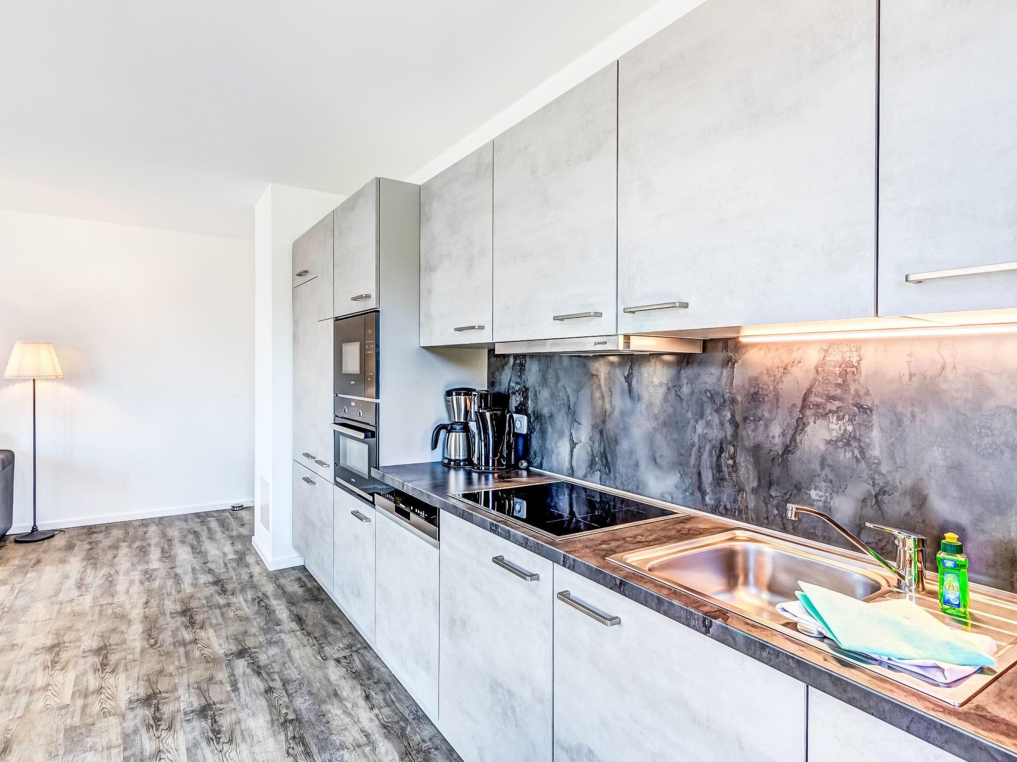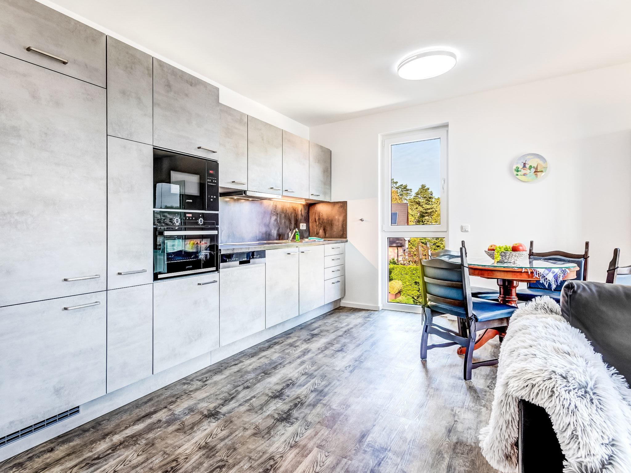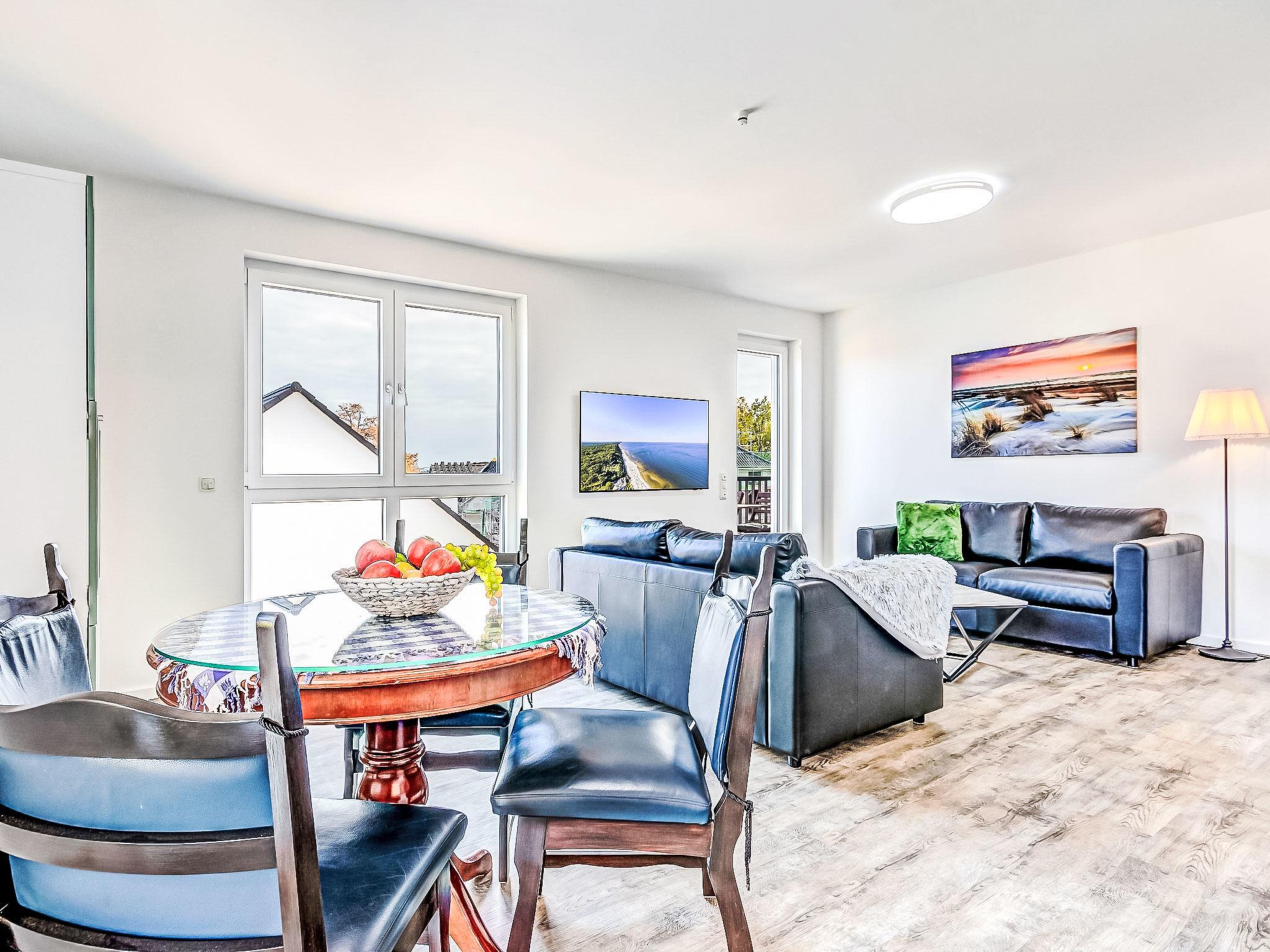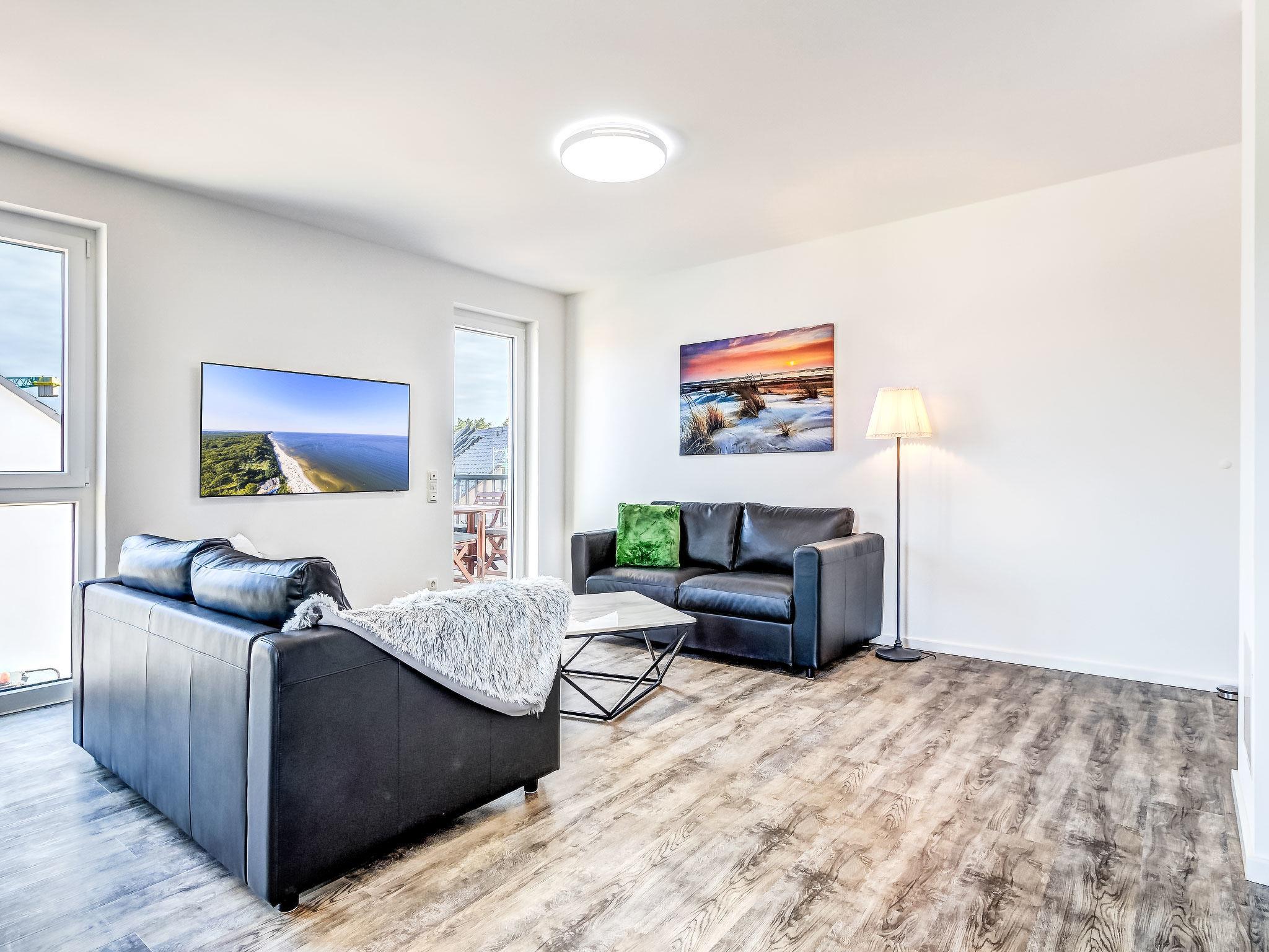 Modern apartment block "Bernsteinquartier", 3 storeys, built in 2023. In the district of Kölpinsee 400 m from the centre of Loddin, 10 km from the centre of Zinnowitz, 19 km from the centre of Wolgast, 750 m from the sea, 750 m from the beach. In the house: lift, central heating system. Communal covered parking. Grocery 1.7 km, supermarket 1.7 km, restaurant 300 m, bakery 350 m, café 800 m, bus stop 450 m, railway station 300 m, sandy beach "Kölpinsee" 750 m.