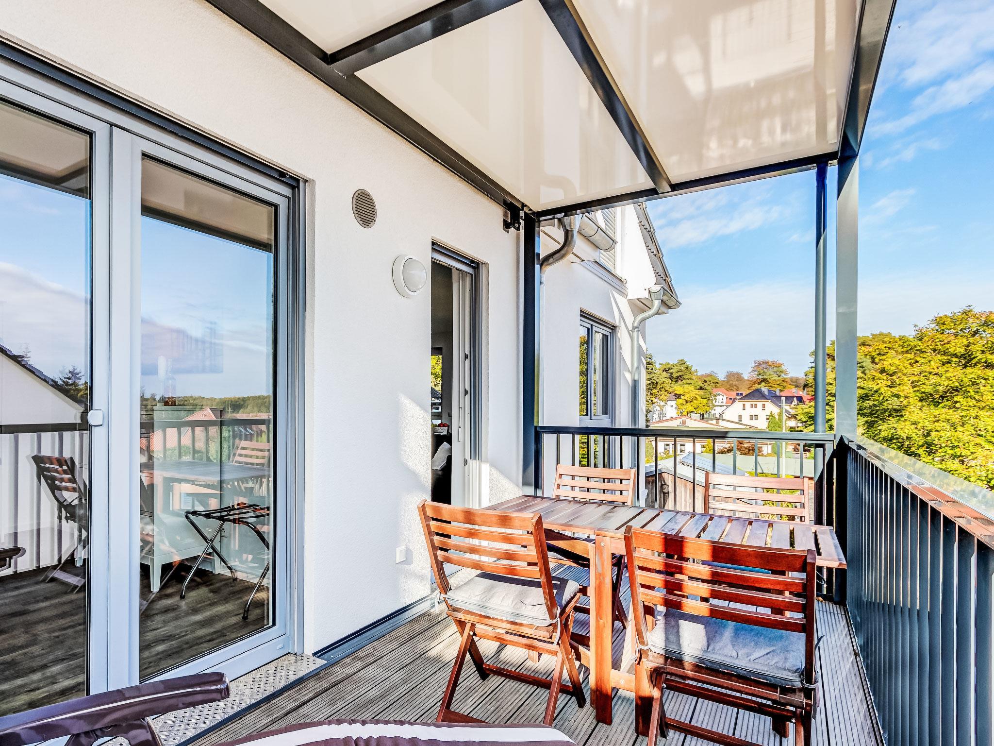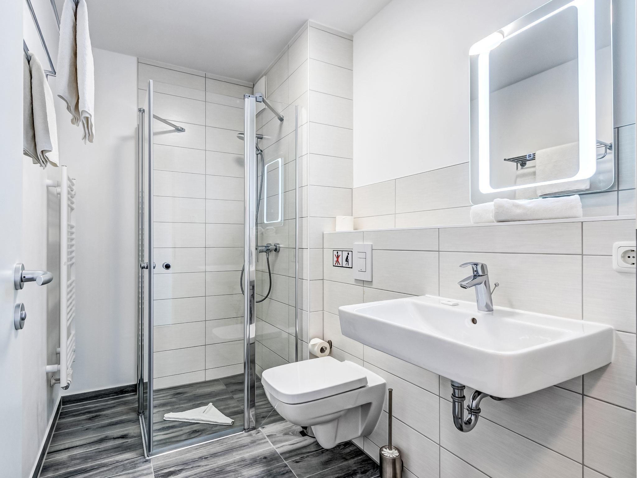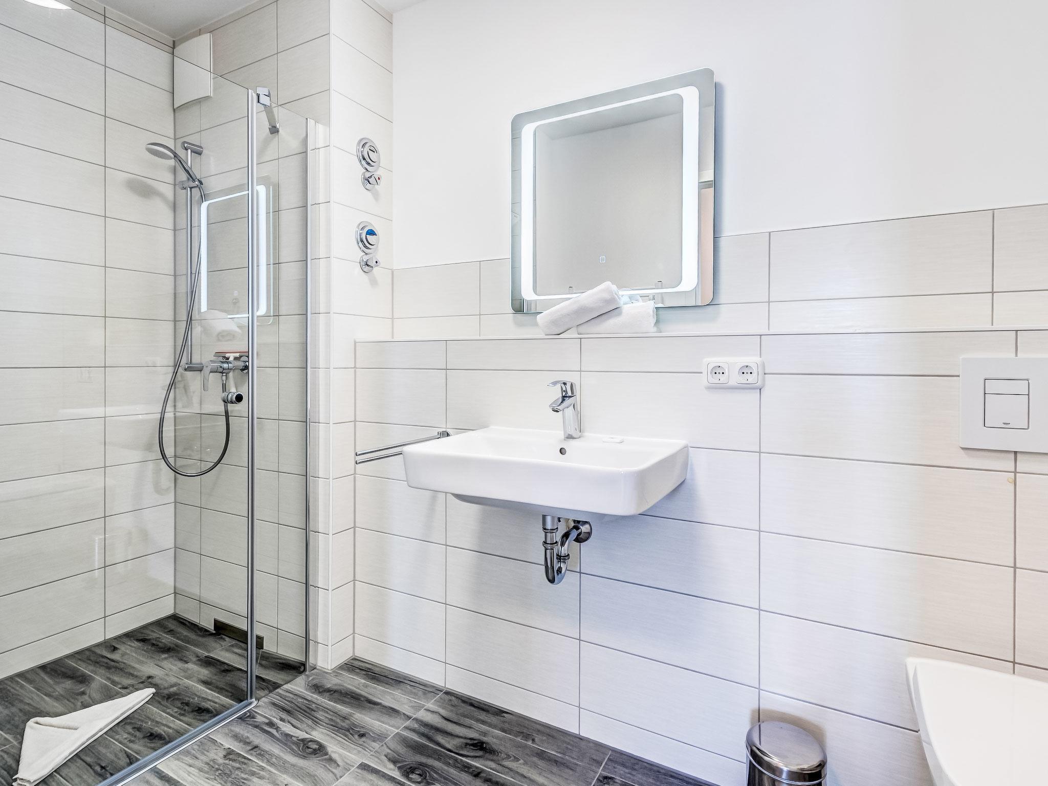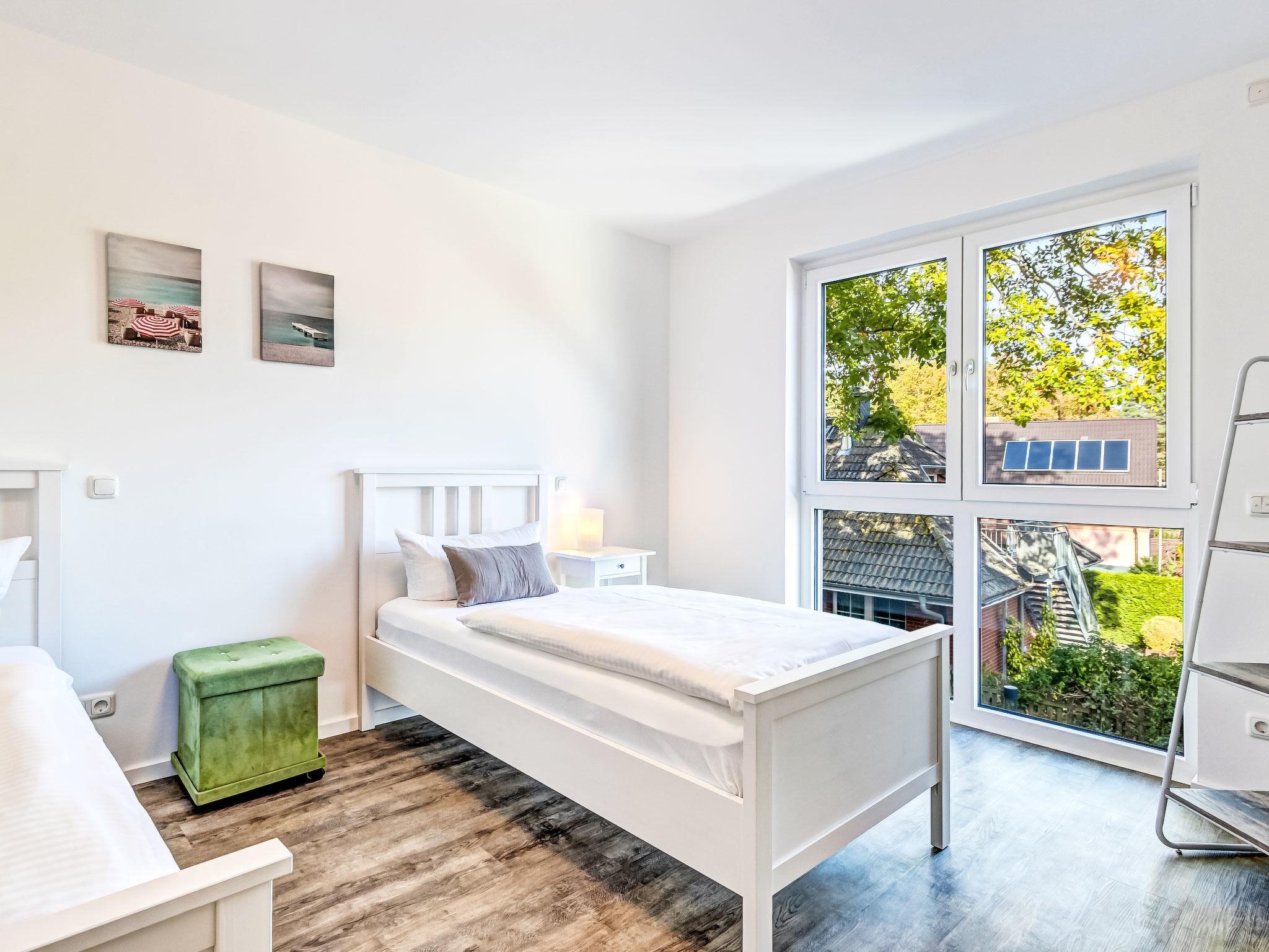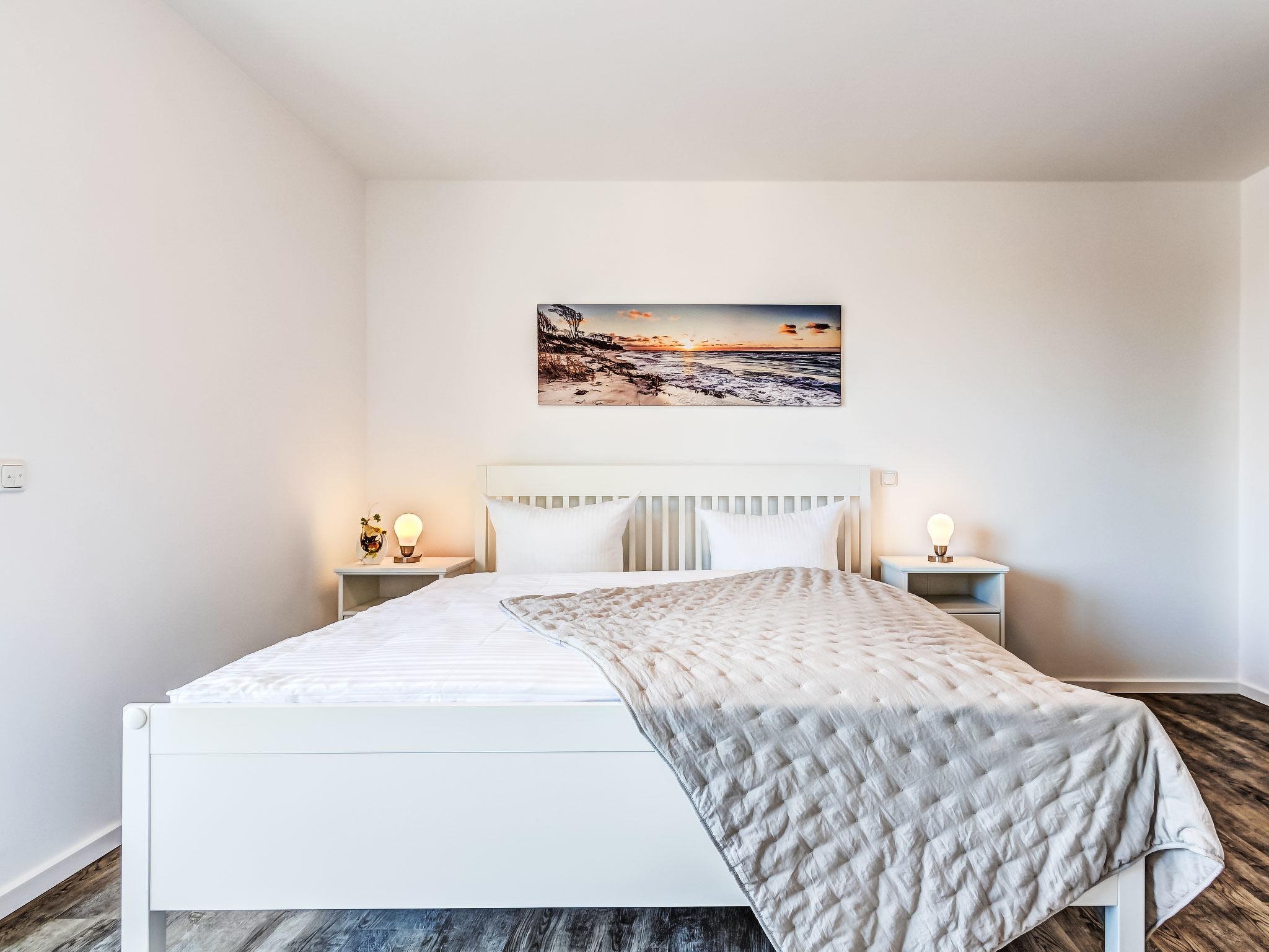 "BQ 0554 Lieblingsplatz", 3-room apartment 87 m2, on the upper floor. Modern and tasteful furnishings: living/dining room with dining table and cable TV (flat screen). Exit to the terrace. 1 room with 1 double bed (180 cm, length 200 cm), shower/WC and satellite TV (flat screen), electric shutters. 1 room with 2 beds (90 cm, length 200 cm), electric shutters. Open kitchen (oven, dishwasher, 4 induction hot plates, toaster, kettle, microwave, freezer, electric coffee machine). Shower/WC. Underfloor heating. Balcony. Balcony furniture. Facilities: hair dryer. Internet (WiFi, free). Garage (1 car), height 190 cm. Please note: non-smokers only. Smoke alarm.