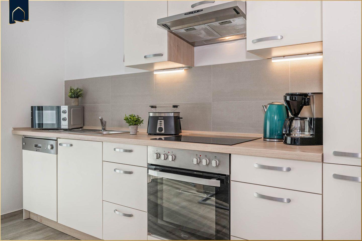 Ein eigener Parkplatz direkt am Haus, ein Fahrradabstellraum, Waschmaschine, Trockner, Bügeleisen und Wäscheständer sorgen für zusätzlichen Komfort. Das Objekt ist rollstuhlfreundlich und Nichtraucher, Haustiere sind willkommen.
