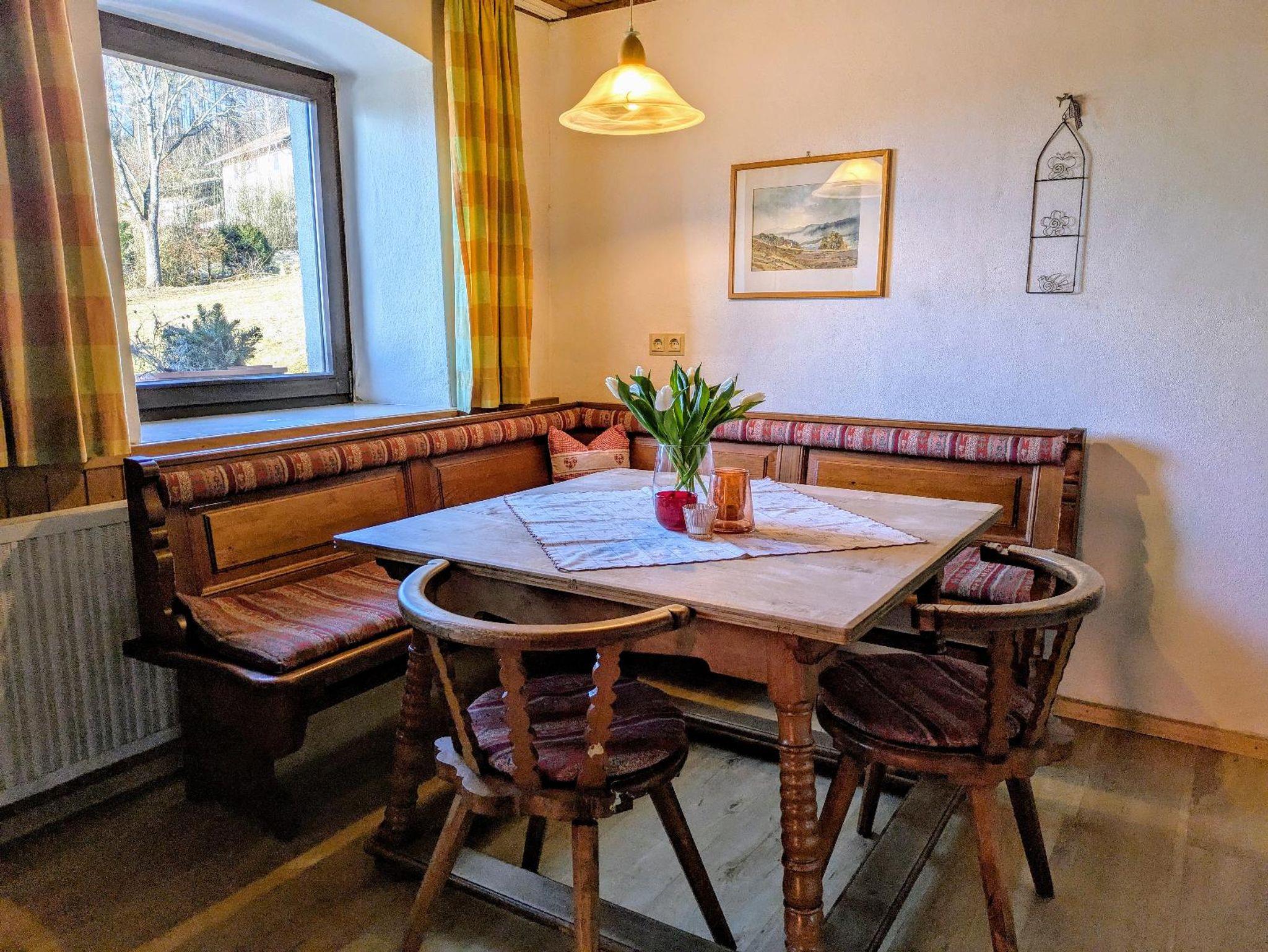 Gemütliche Ferienwohnung mit 1 Wohnraum (Couchgarnitur, Essecke, Sat-TV, Küchenzeile mit Spülmaschine), 1 geräumiges Schlafzimmer mit Doppelbett und 1 Einzelbett , 1 Dusche/WC, 1 Balkon mit traumhaften Ausblick zum zum Großen Arber. Genau das Richtige für Ihren Urlaub im Bayerischen Wald