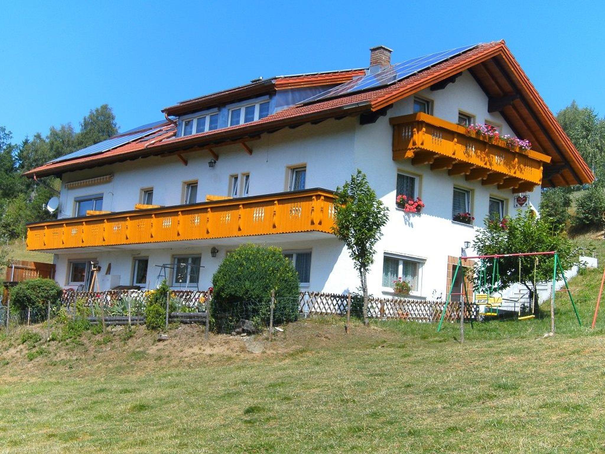 Unsere Pension mit zugehörendem Bio-Bauernhof liegt auf 700 m, Blick zum Großen Arber, ruhige, sonnige Lage, kein Durchgangsverkehr. Aufenthaltsraum mit Sat-TV, Gästekühlschrank und Kachelofen. Große Sonnenterrasse, Grillmöglichkeit. Ökosiegel. Zum Skigebiet Großer Arber ca. 15 Autominuten.