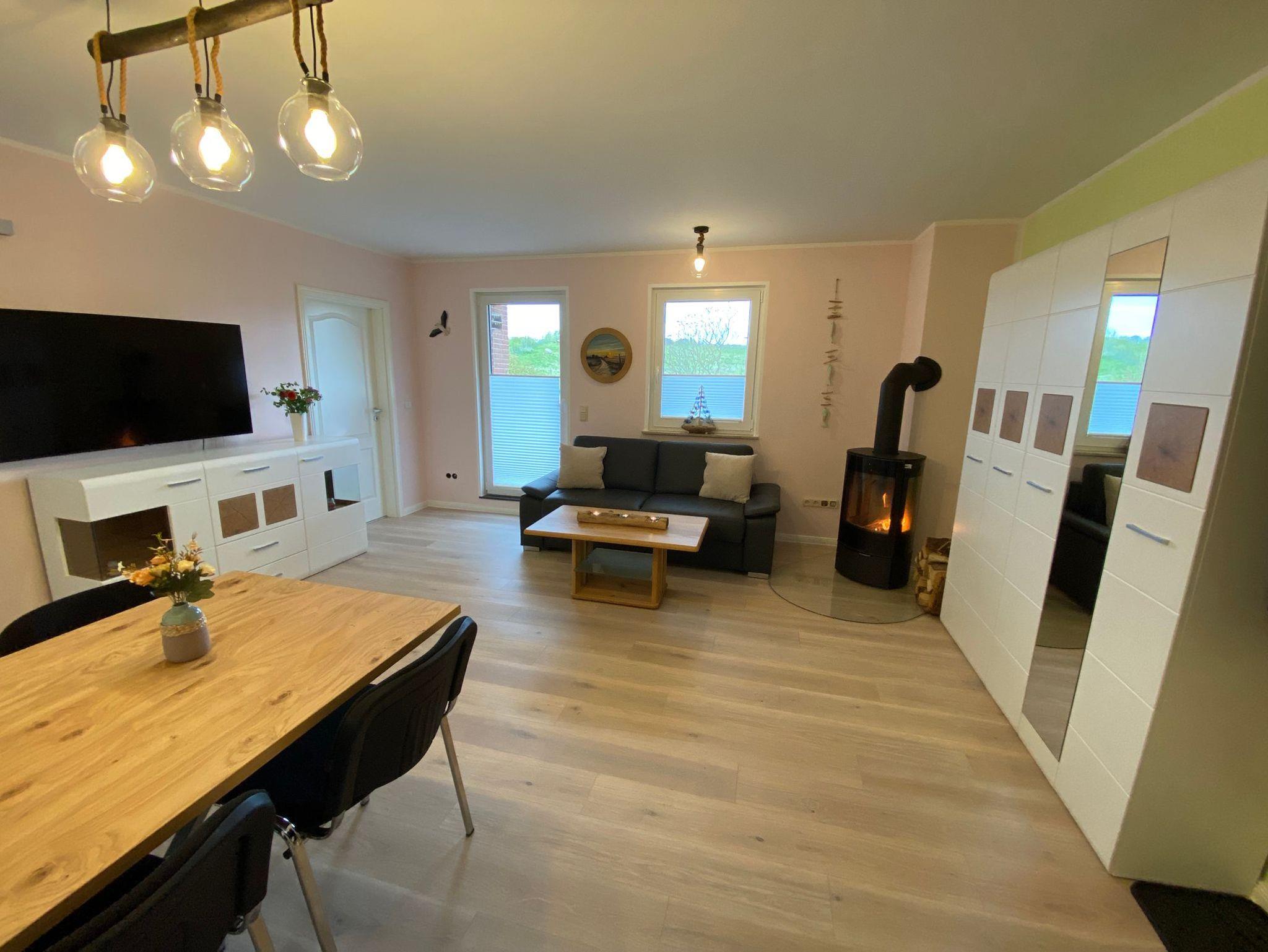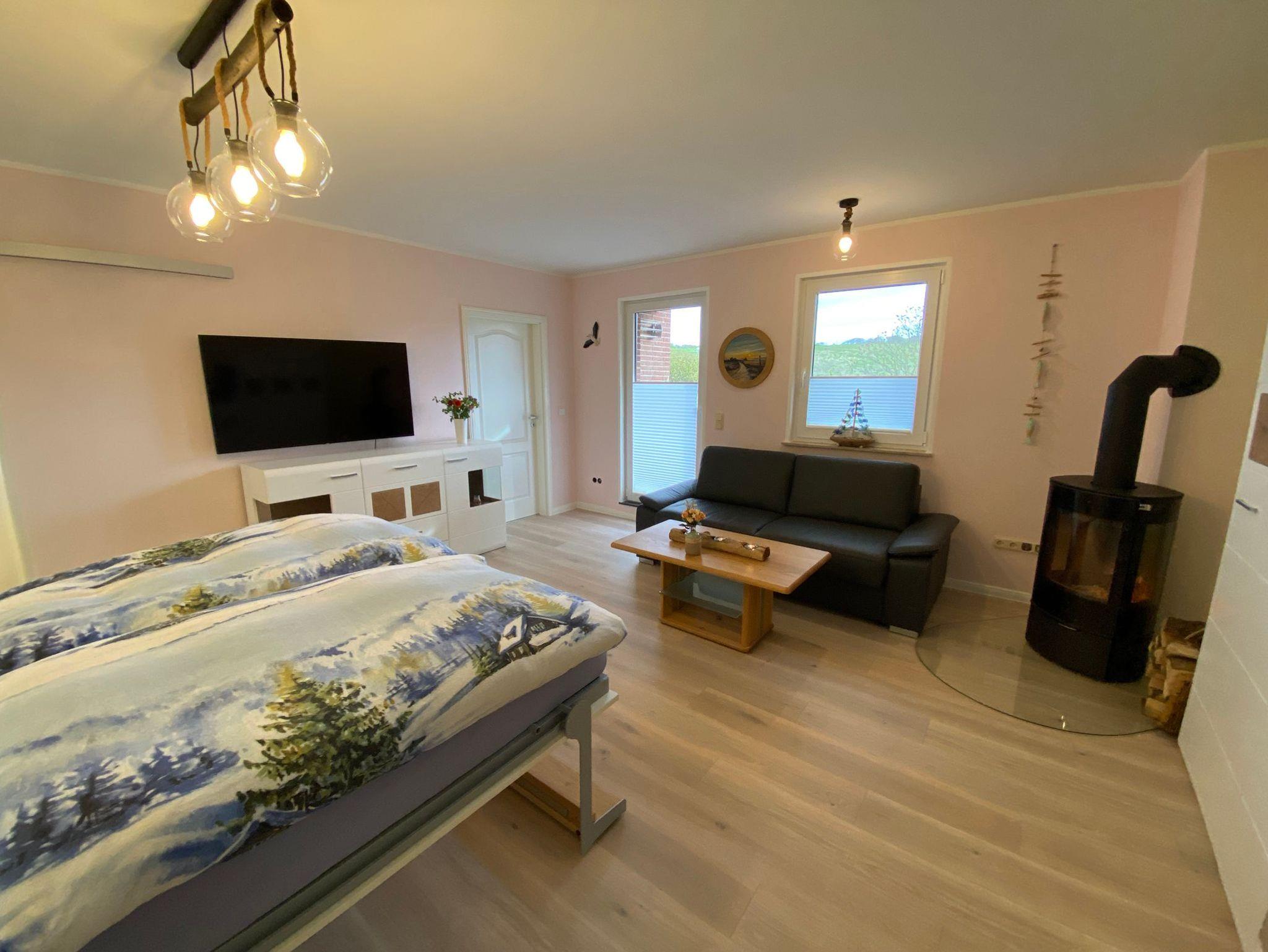 • Im Wohn-Essbereich erwartet Sie ein gemütliches Sofa, ein Flachbild-TV, DVD-Player, Kamin und ein Esstisch mit 2 Stühlen.