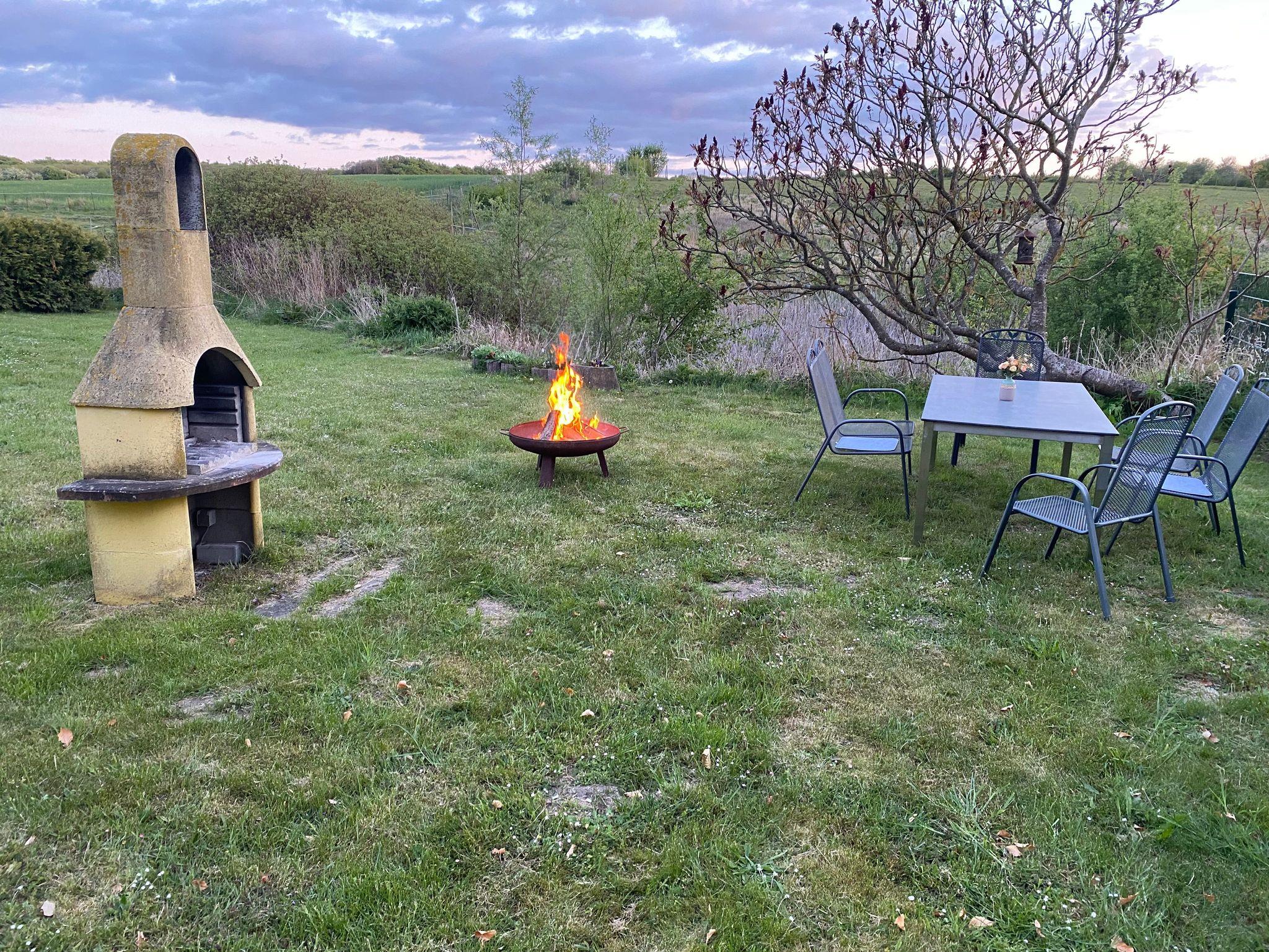 • Draußen: Auf dem Grundstück befindet sich ein Grillplatz und eine Feuerschale. Dieser steht zur gemeinschaftlichen Benutzung zur Verfügung.