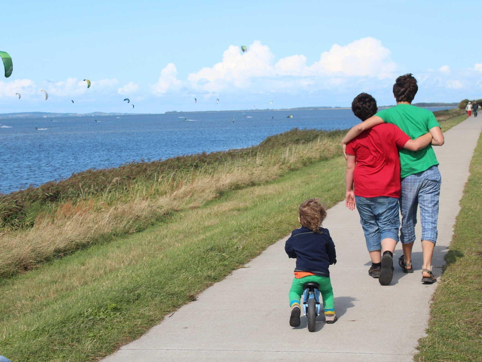 Die 65 Quadratmeter grosse Ferienwohnung ist ausgestattet mit 3 Schlafzimmern (insgesamt 6 Betten), einer offenen Küche und einem Bad mit Badewanne.