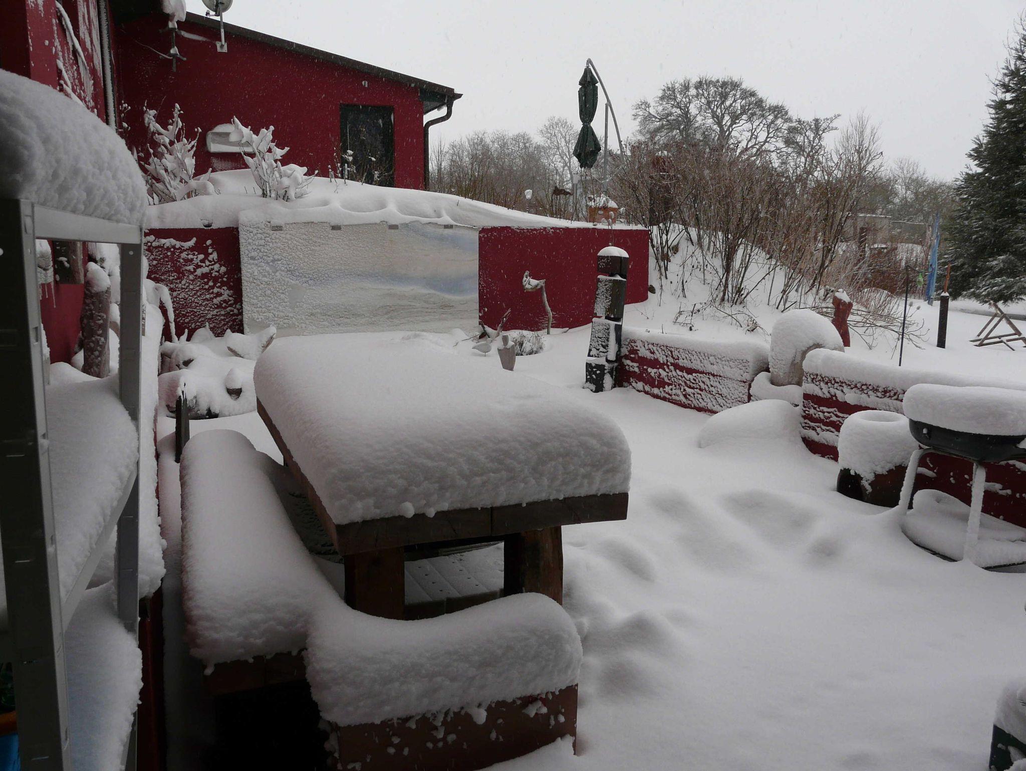 Zu jeder Wohnung gehört eine Außenterrasse mit Gartenmöbeln, Sonnenschirm und Grillmöglichkeit. Darüber hinaus finden Sie bei uns einen großen Natur- und Nutzgarten, in dem Sie neben vielfältig angelegten Beeten auch noch Wegrandblumen und Heilpflanzen sowie verschiedene Ruhezonen mit Sitzgruppen und Liegen zum Entspannen finden. Manchmal ganz offensichtlich, bisweilen recht versteckt können Sie im Garten Kunstobjekte des Hausherren entdecken und bei Gefallen käuflich erwerben.