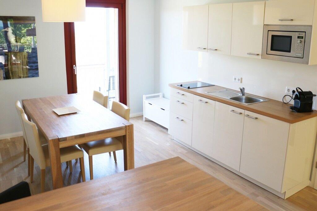 Durch die helle, moderne Einrichtung und der schönen Raumaufteilung birgt sie absoluten Wohnkomfort. Neben 2 getrennten Schlafzimmern kommen auch zwei Balkone, einer mit Ostseeblick und einer mit Blick in den Schlosspark von Schloss Ranzow als Topping hinzu.