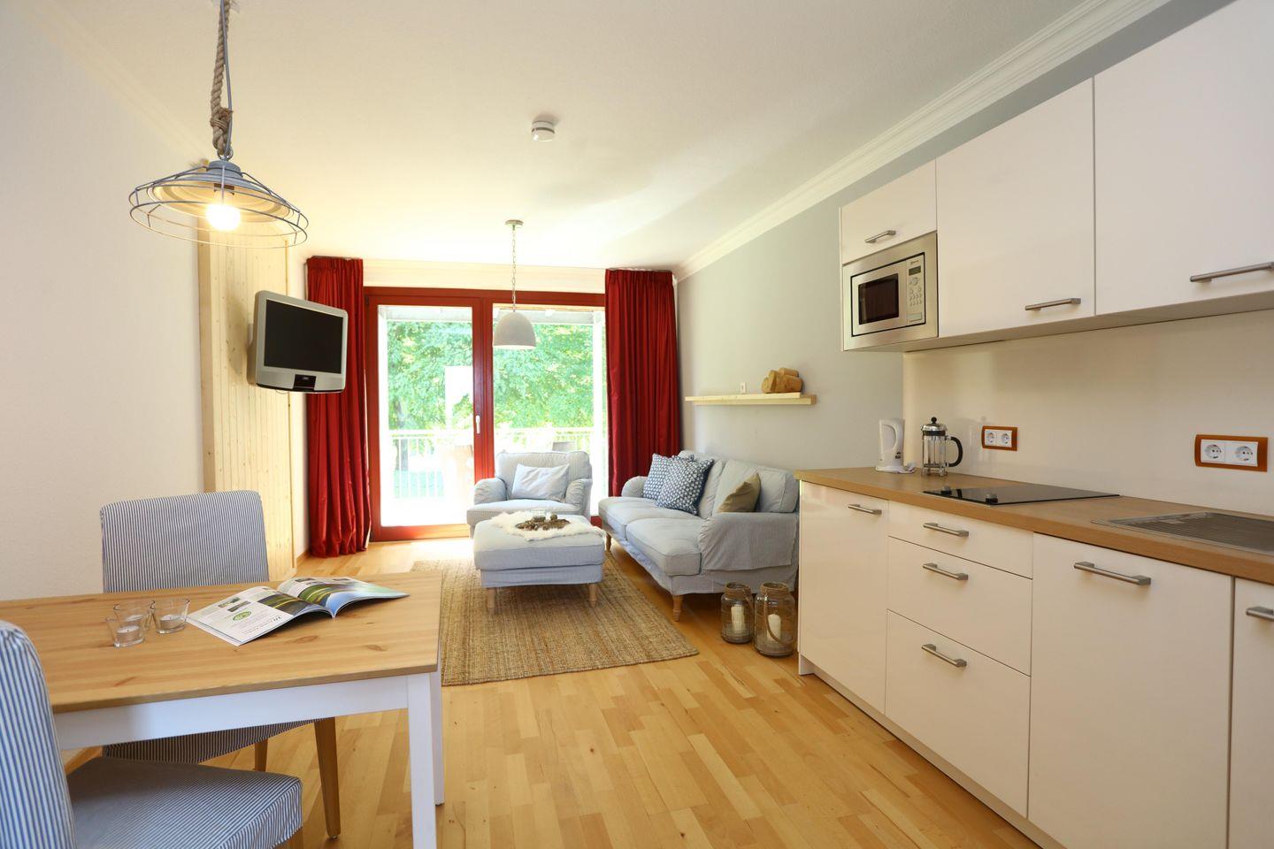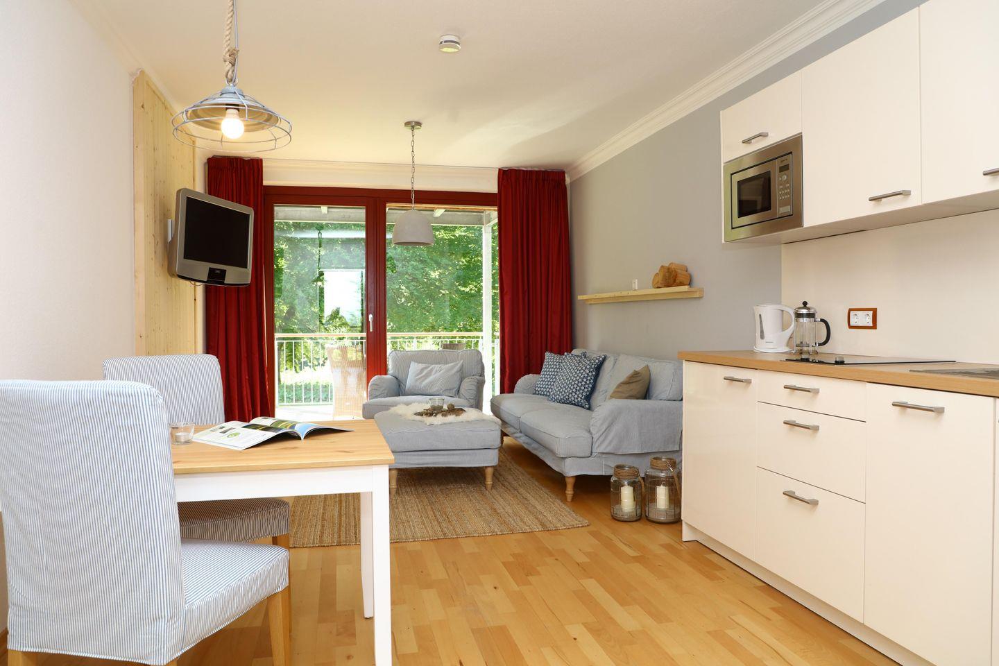 Das 2-Raum-Appartement „Vilm 1“ befinden sich im Appartementhaus Fore auf dem Anwesen von Schloss Ranzow.