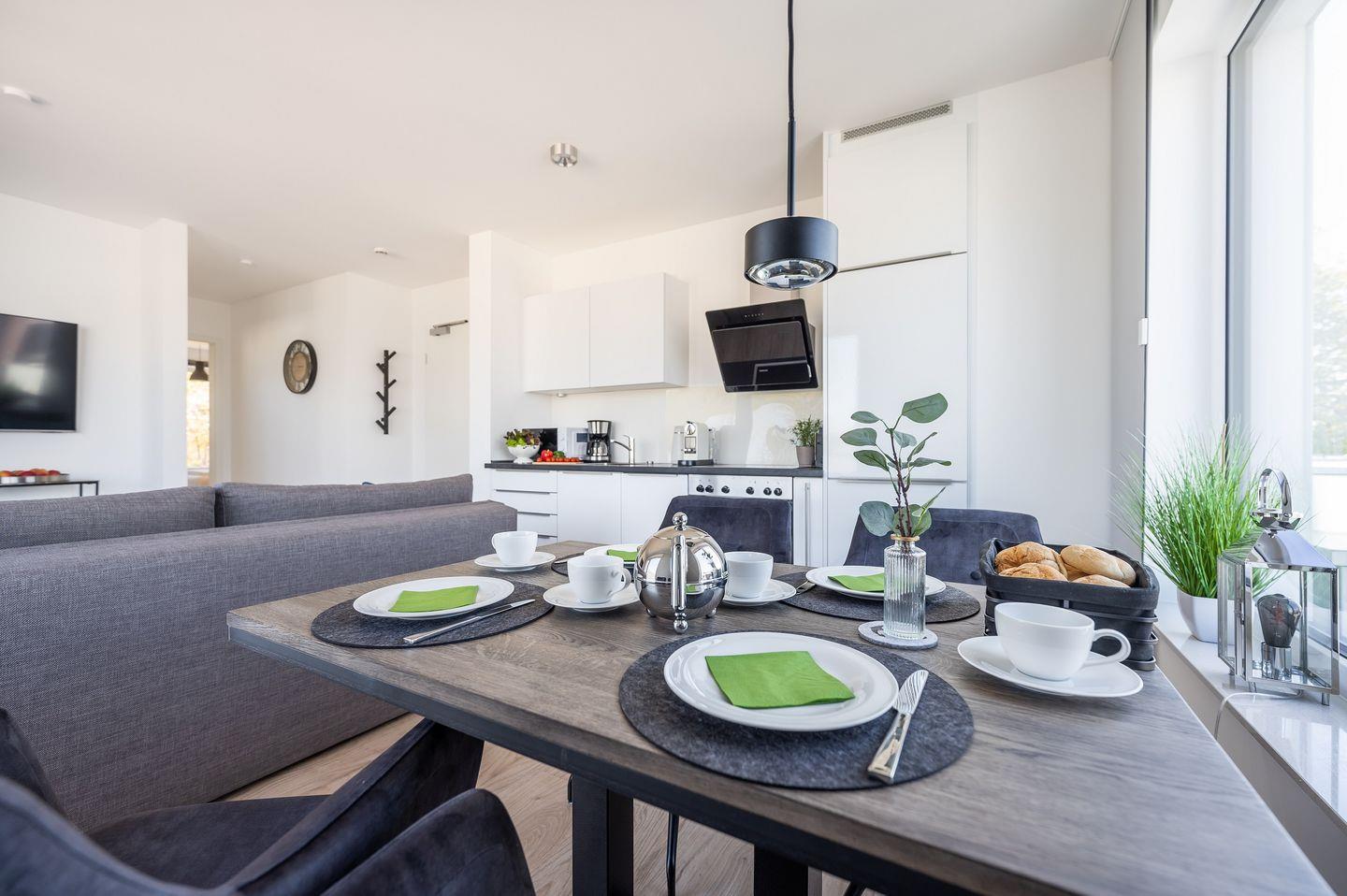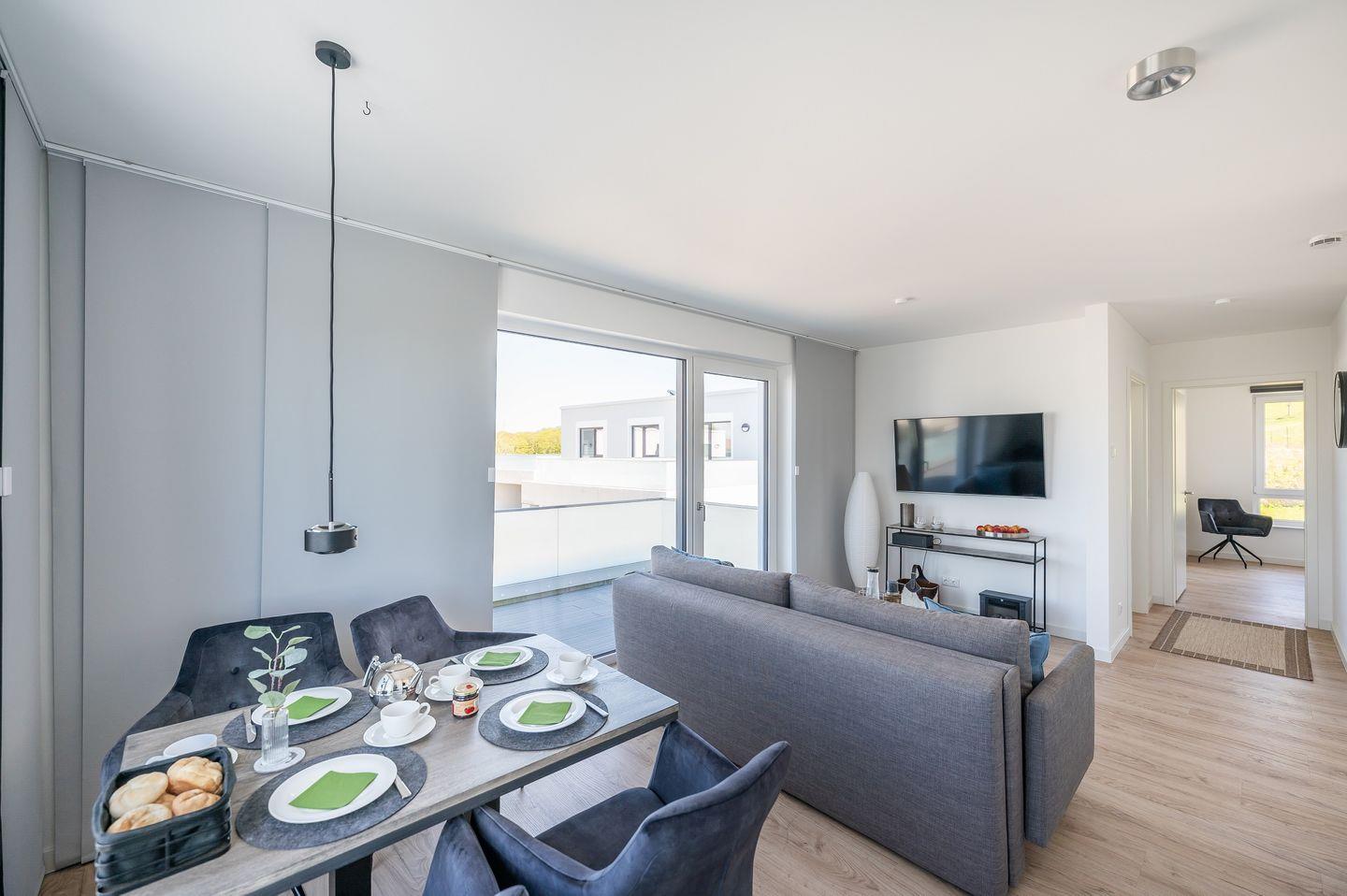 Ankommen und Wohlfühlen, heißt es in dieser modern eingerichteten Ferienwohnung im neu erbauten Ferienvilla am Rande des Nationalparks Jasmund. Süren Sie bereits während des Frühstücks die Kraft der Natur.