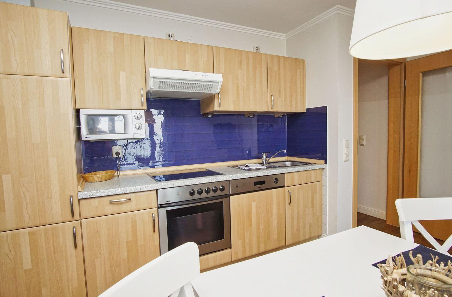 KÜCHE // offen Küche, 4-Platten Ceranherd, Spülmaschine, Kühlschrank mit Gefrierfach, Backofen, Kaffeemaschine, reichlich Besteck, Geschirr und Küchenutensilien ++