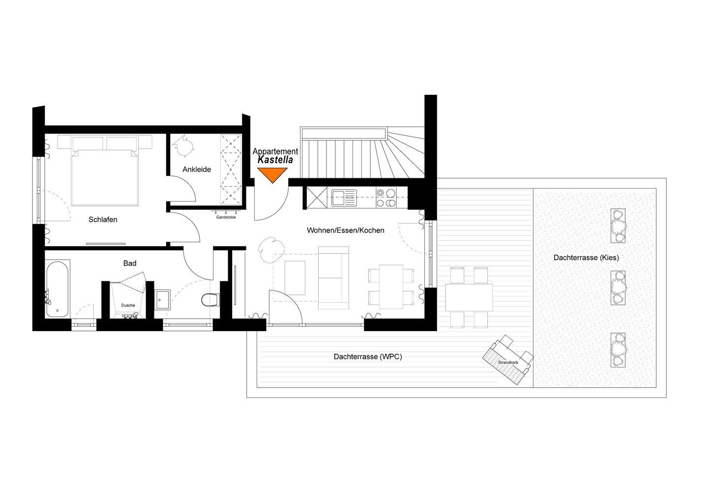Du suchst Ruhe, Panorama und modernen Komfort auf Rügen? Willkommen im Appartement Kastella! Dieses stilvolle Penthouse bietet dir ein exklusives Urlaubserlebnis in bester Lage – mit großzügiger Dachterrasse, Blick auf Schloss Ranzow und direkter Nähe zum Nationalpark Jasmund. Auch dein Hund darf mitreisen.