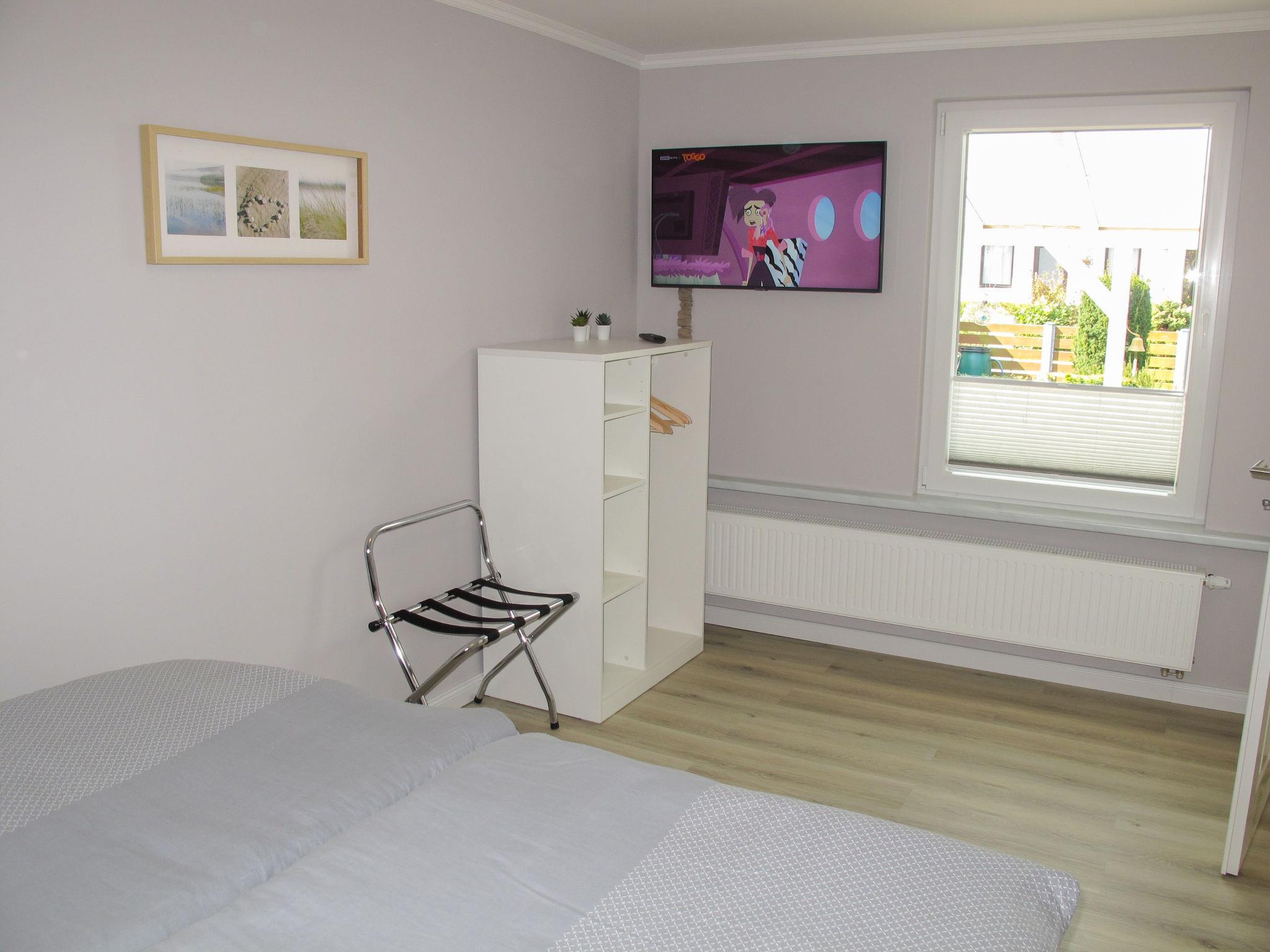 3-room bungalow 70 m2. Beautiful and modern furnishings: living/dining room with dining table and satellite TV (flat screen), air conditioning. Exit to the terrace. 2 rooms, each room with 1 double bed and satellite TV (flat screen). Kitchenette (4 ceramic glass hob hotplates, toaster, kettle, electric coffee machine). Shower/WC, sep. WC. Underfloor heating. Terrace. Terrace furniture, barbecue (portable). Facilities: washing machine. Internet (WiFi, free). Please note: non-smoking house. Maximum 1 pet/ dog allowed. Smoke alarm. On the ground floor, the rooms are connected by stairs. Fiber optic internet is available.